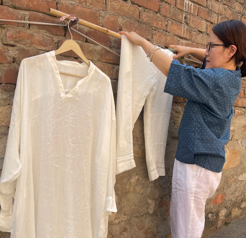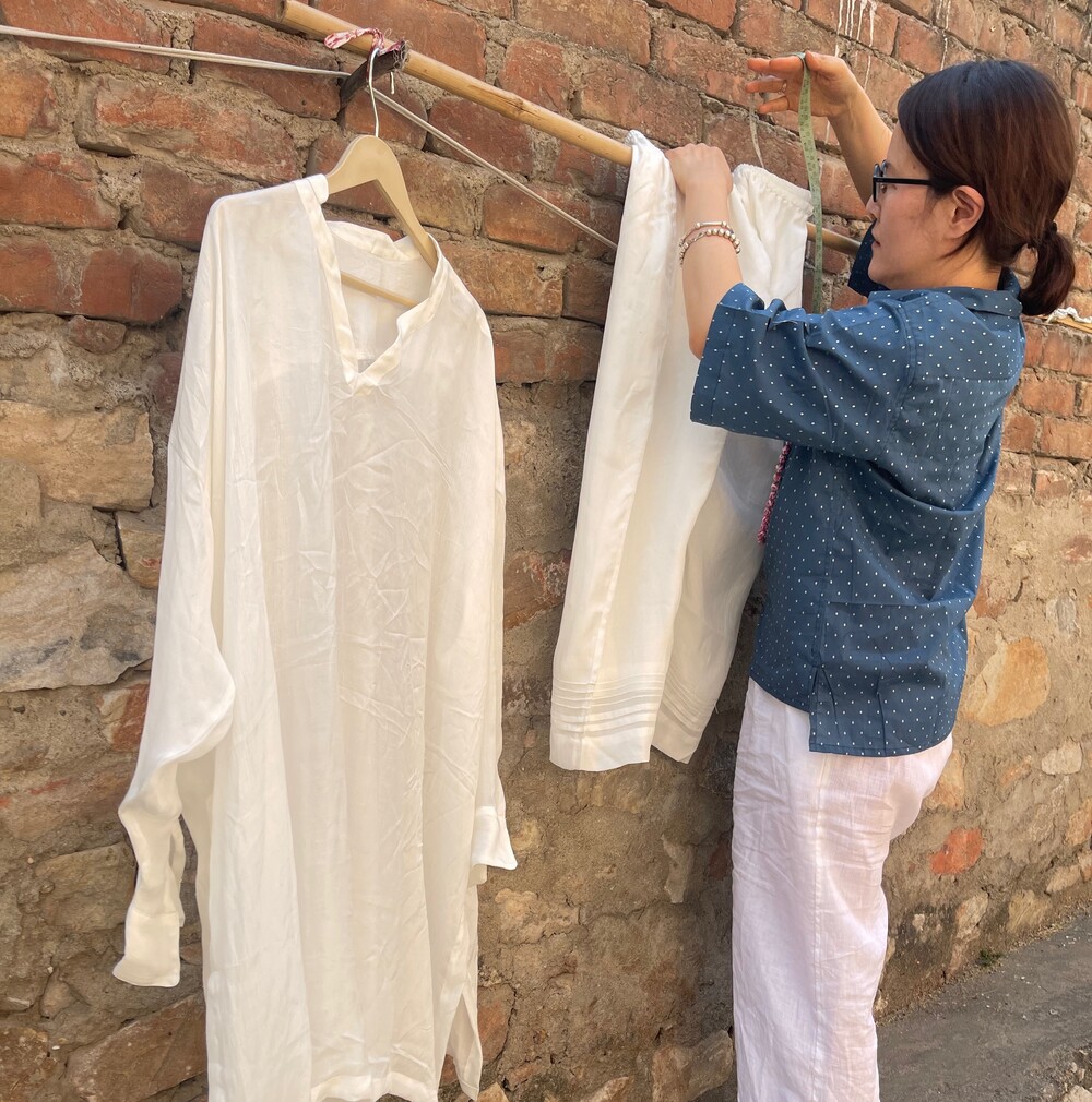 쿠르타느낌을 살짝변형해서 박시하게 날씬하든 살집이있든 편히입을수있는 디자인으로 만들어보았어요.