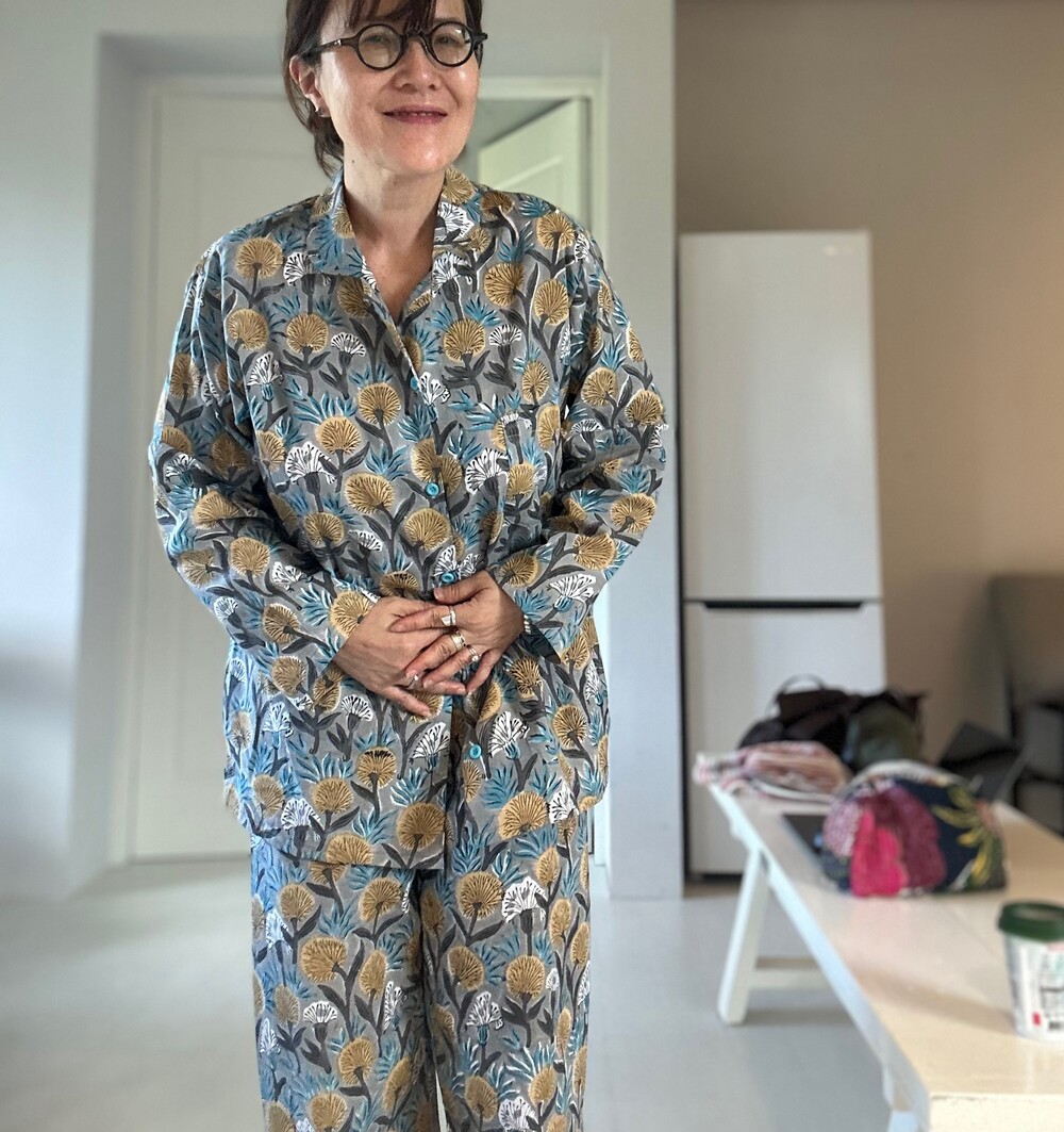 네가지 컬러 잠옷이에요요요 면 백퍼센트이고 모두 원단준비되어 주문제작으로 일주일뒤 한국발송입니다.단순변심 힘드니 신중구매해주세요.
