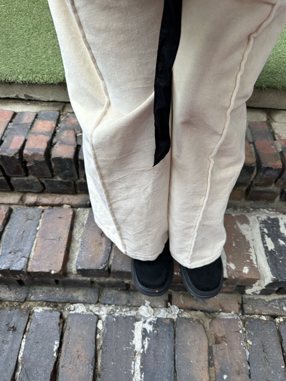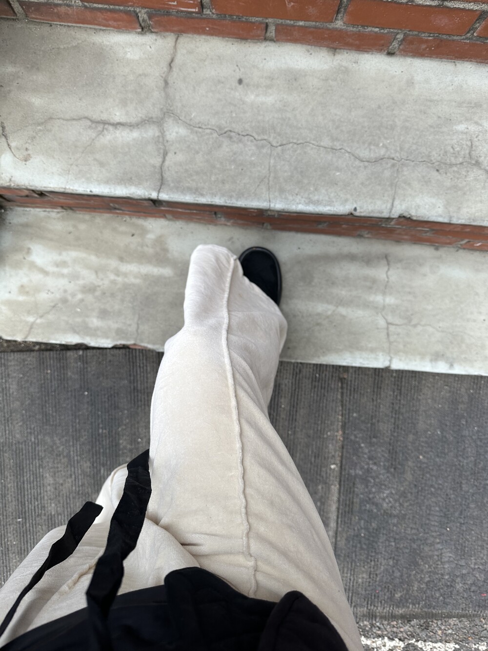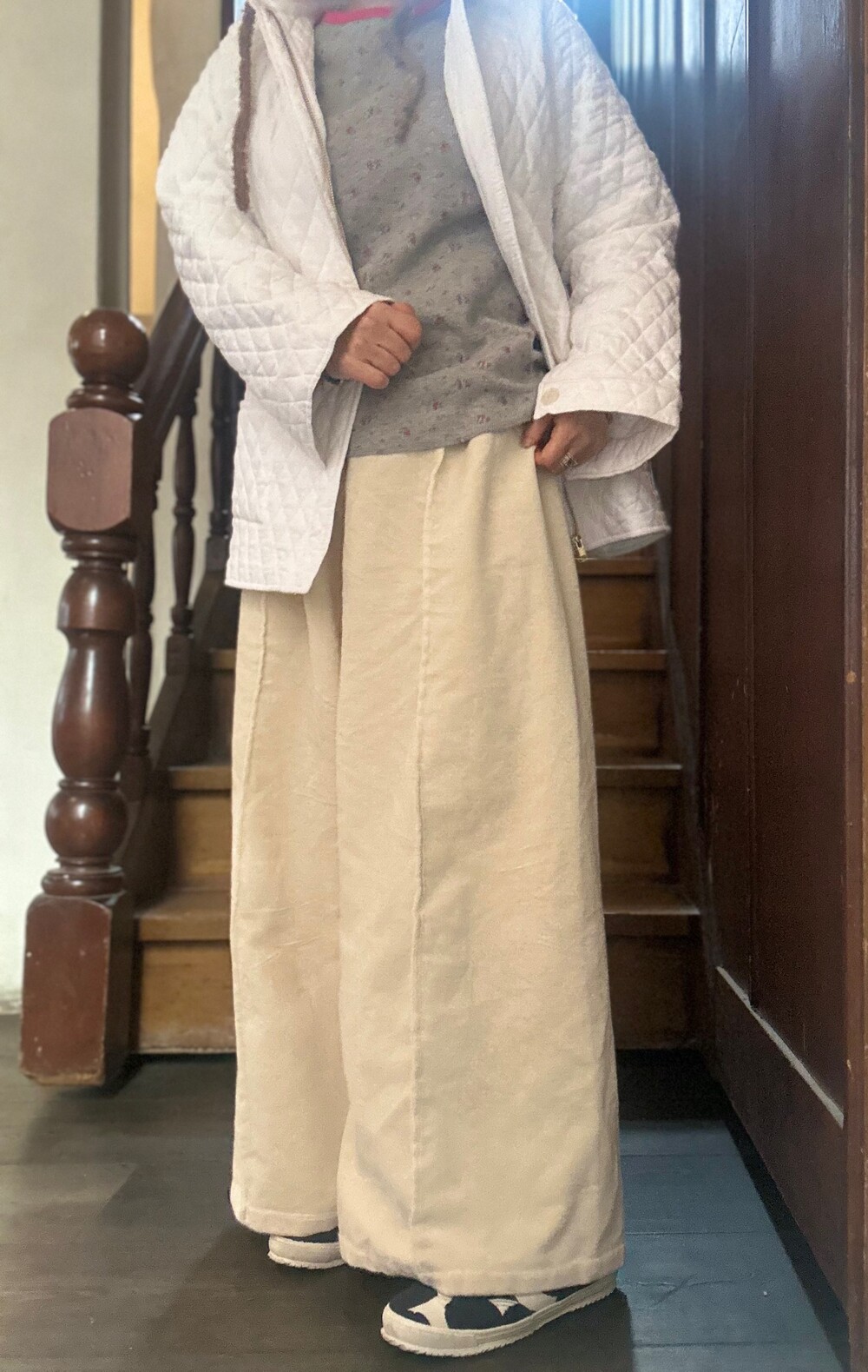 기장 90의 허리 고무줄인 면벨벳 바지에요.오늘부터 삼일간 프리오더 주문이고 그안에 주문주신분들건은 구정지나고 바로 발송되요!!!!