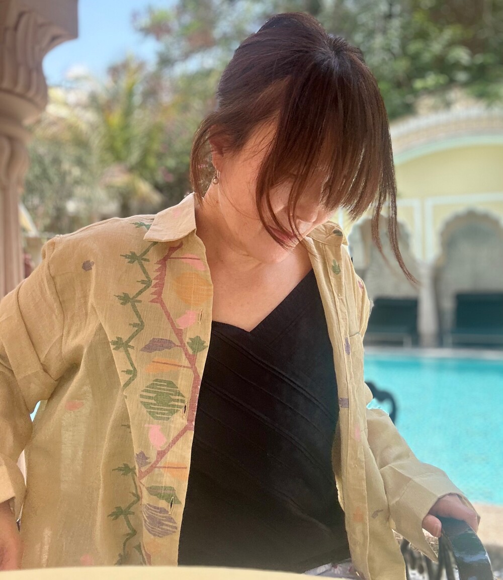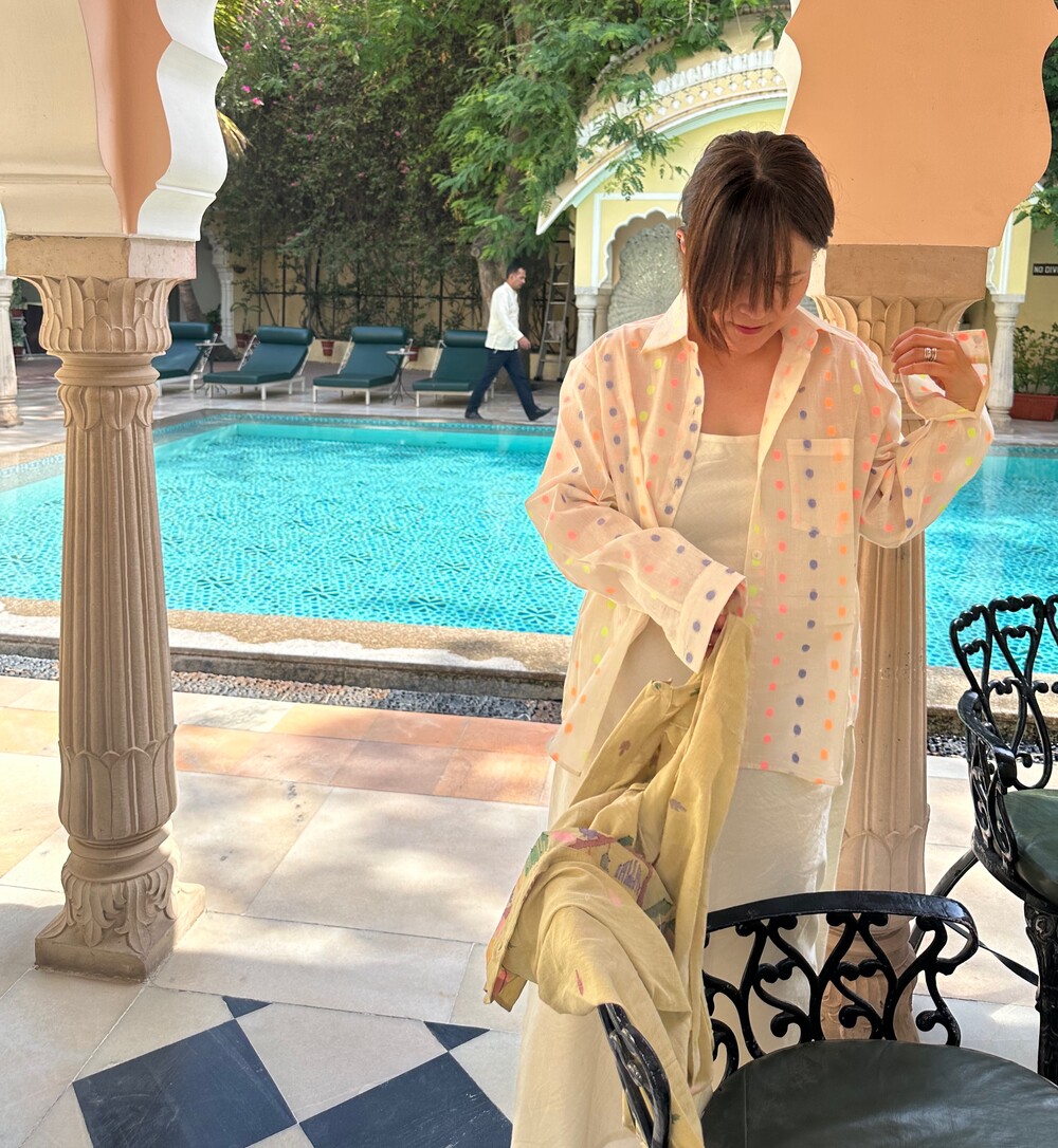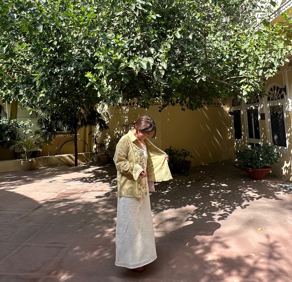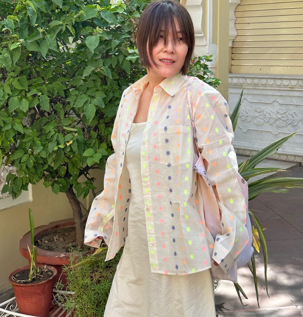 What I said it will be done if only condition if rain or sand storm so without electricity otherwise all things possible 의 insurance같은 내용을 이야기하며 진행되는 작업이에요,ㅎㅎ 소량으로 진행됩니다.올리브 컬러는 handloom이라는 원단의 직기로 짠 아주 고운 면소재의 고급스러운 소재이고 잠자리 날개같고 도트 더비스도 직기로 짰지만 고시감이 어느정도있고 빨아서 쪼글쪼글의 묘미가 아름다운 소재에요.담주 인도에서 출발되고 원단이 소량으로만 준비되어 소량진행만 합니다.*가슴둘레 반품사이즈 59인데 오픈해서 입으시는게 훨씬 예뻐서 사이느 상관없이 입으시면 되요.기장은 70이고 *소매는 접어입어야 얘뻐서 좀 길게 제작되었습니다.주문제작과 수압제품으로 단순변심 교환 힘들고 손빨래 또는 드라이 더비스는 울코스 권해요.