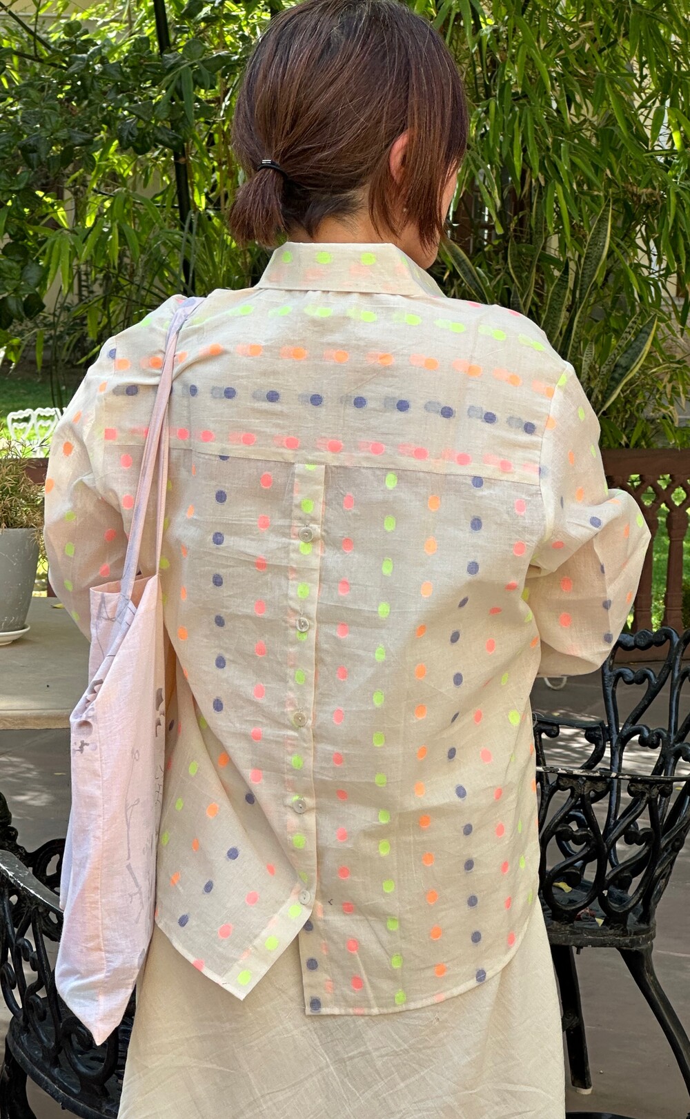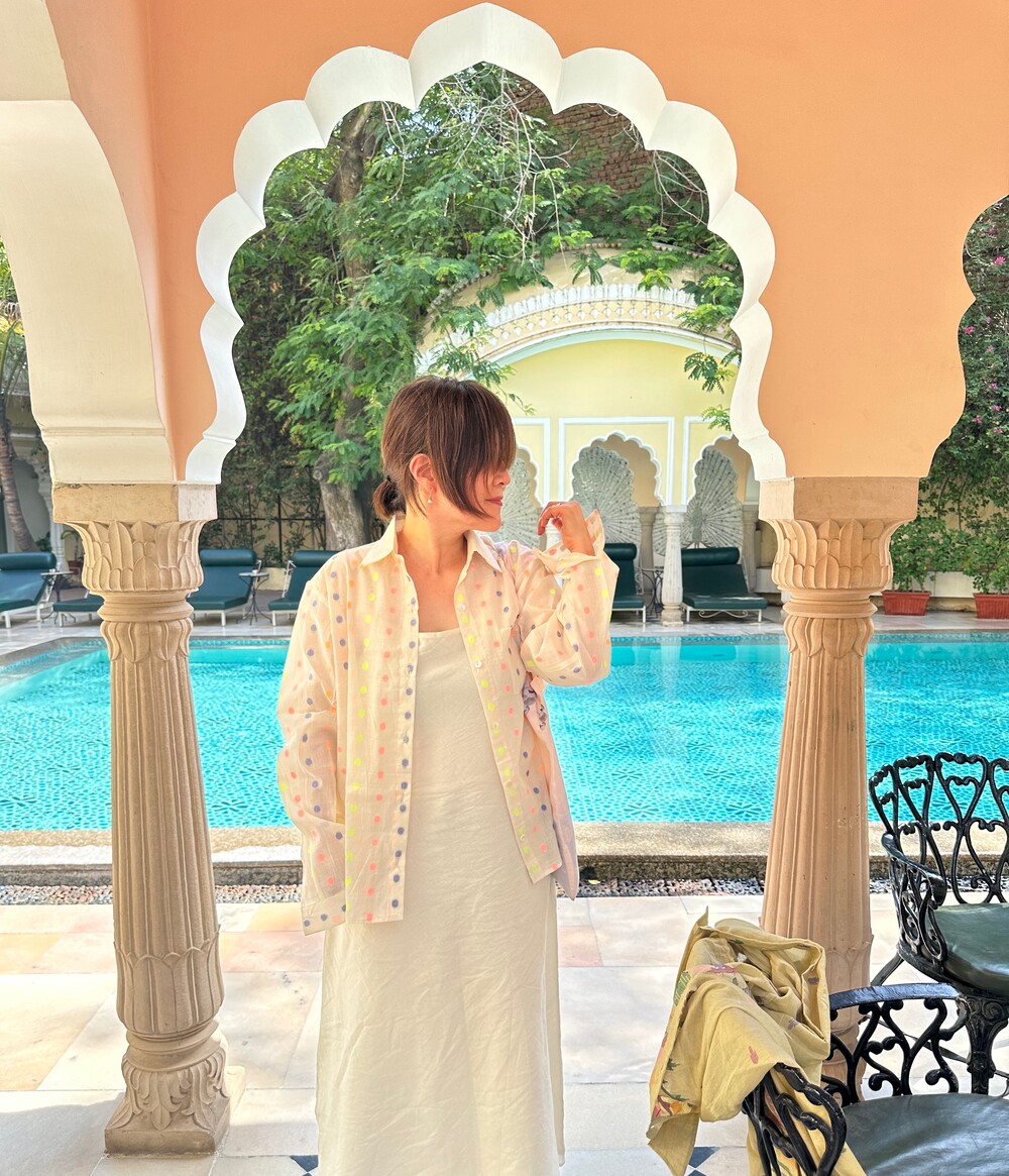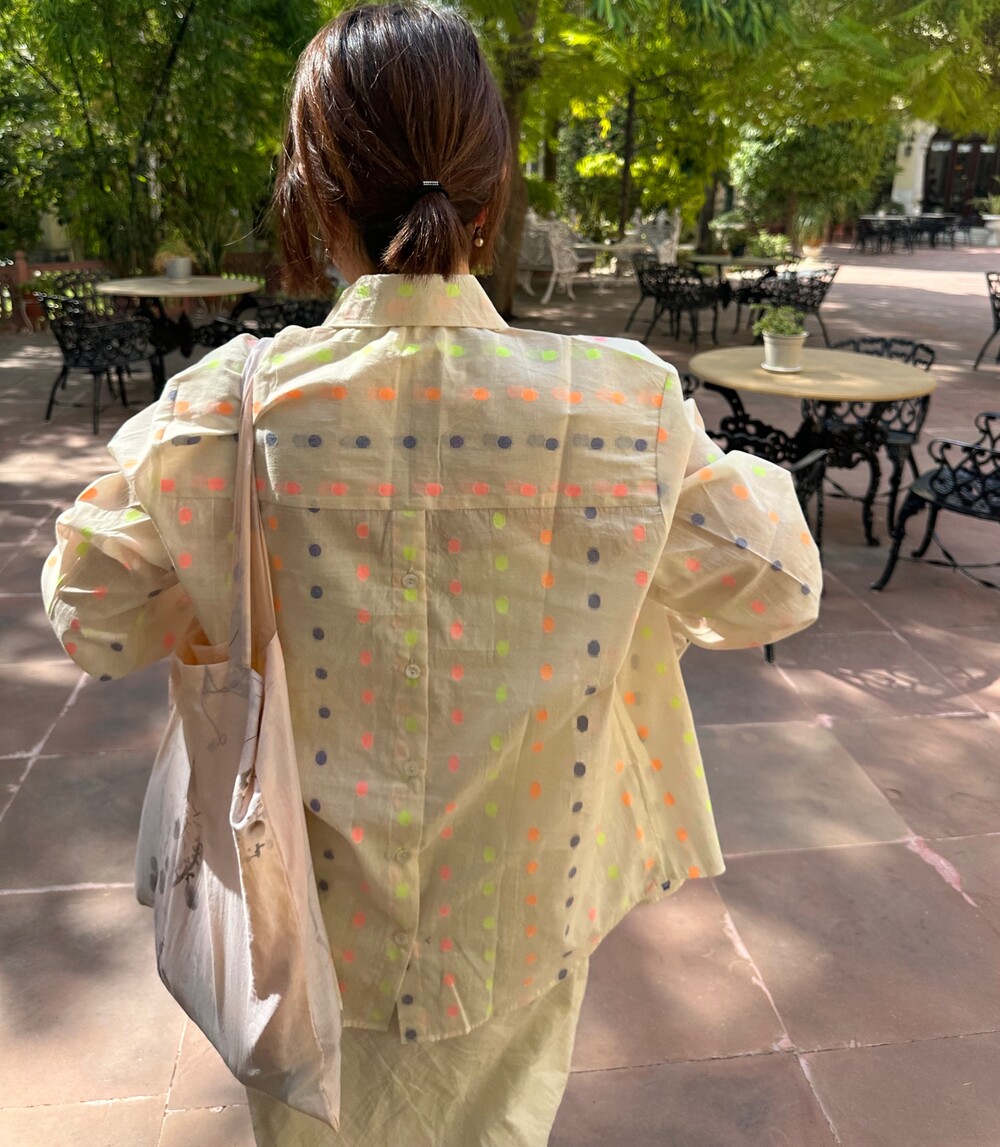 What I said it will be done if only condition if rain or sand storm so without electricity otherwise all things possible 의 insurance같은 내용을 이야기하며 진행되는 작업이에요,ㅎㅎ 소량으로 진행됩니다.올리브 컬러는 handloom이라는 원단의 직기로 짠 아주 고운 면소재의 고급스러운 소재이고 잠자리 날개같고 도트 더비스도 직기로 짰지만 고시감이 어느정도있고 빨아서 쪼글쪼글의 묘미가 아름다운 소재에요.담주 인도에서 출발되고 원단이 소량으로만 준비되어 소량진행만 합니다.*가슴둘레 반품사이즈 59인데 오픈해서 입으시는게 훨씬 예뻐서 사이느 상관없이 입으시면 되요.기장은 70이고 *소매는 접어입어야 얘뻐서 좀 길게 제작되었습니다.주문제작과 수압제품으로 단순변심 교환 힘들고 손빨래 또는 드라이 더비스는 울코스 권해요.