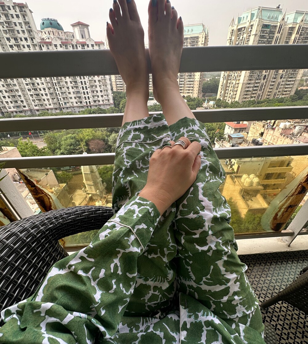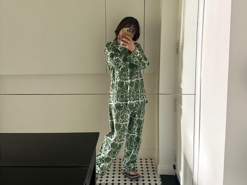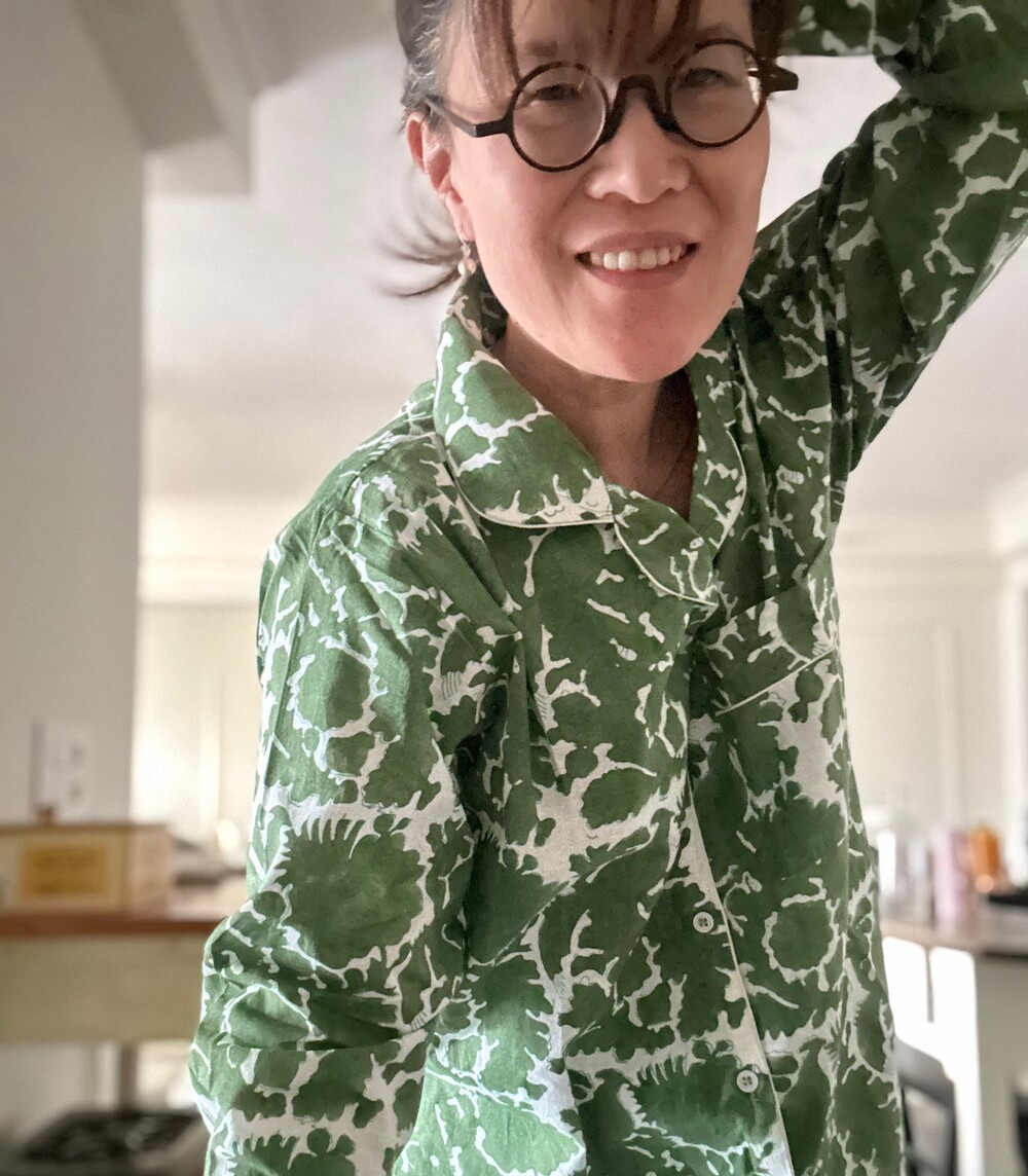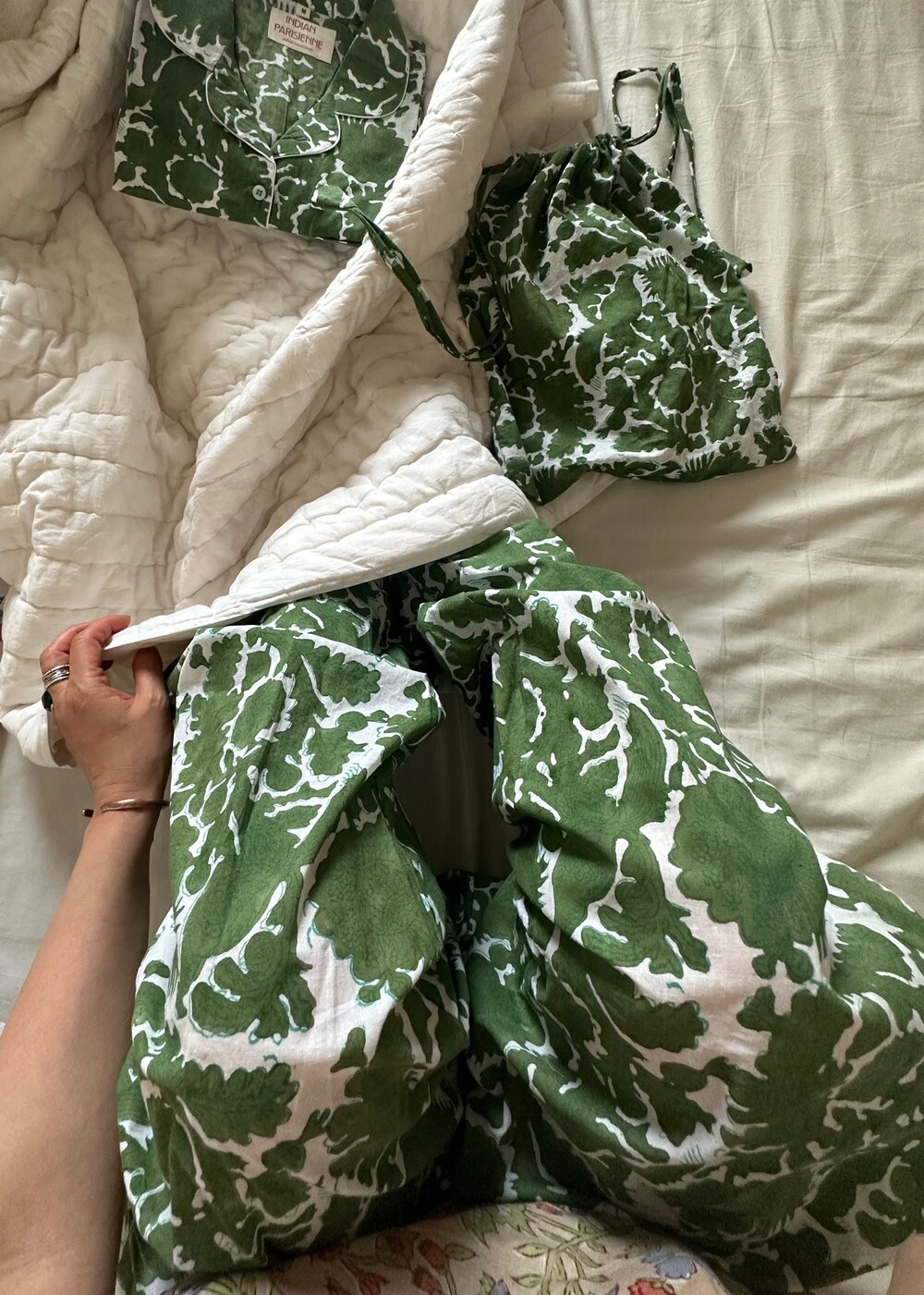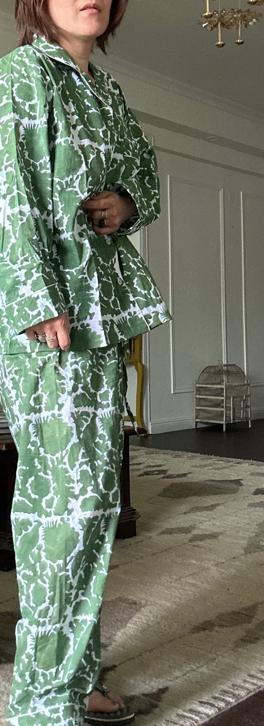 인도일 첨 시작할때부터 오년동안 꾸준히 만든 그린컬러에요. 청화백자의 어떤문양을 보고 디자인했는데 컬러는 그린으로 했어요,새와 나무와 여러그림들을 실루앳으로 표현한거에요.좋은면에 흔하지않은 컬러로 만들었고 사실 잠옷이 컬러 1도일때 참 가볍고 좋ㅇ긴해요. 진심 주인장 추천제품이에요. 오월의 신록예찬을, 이걸 입고도 예찬해주세요❤️제가 말리고 컬러 정하고 정말 정성스럽게 만들었어요.인류최초의 프린팅,우드블럭 프린팅 하나를 소장한다면,요걸로❤️ 정말 에어컨에서도 짱,두가지 사이즈로 진행되요 저는 보통 55-66입으니 미듐으로 가슴둘레 120이상이신분들은 라지로❤️