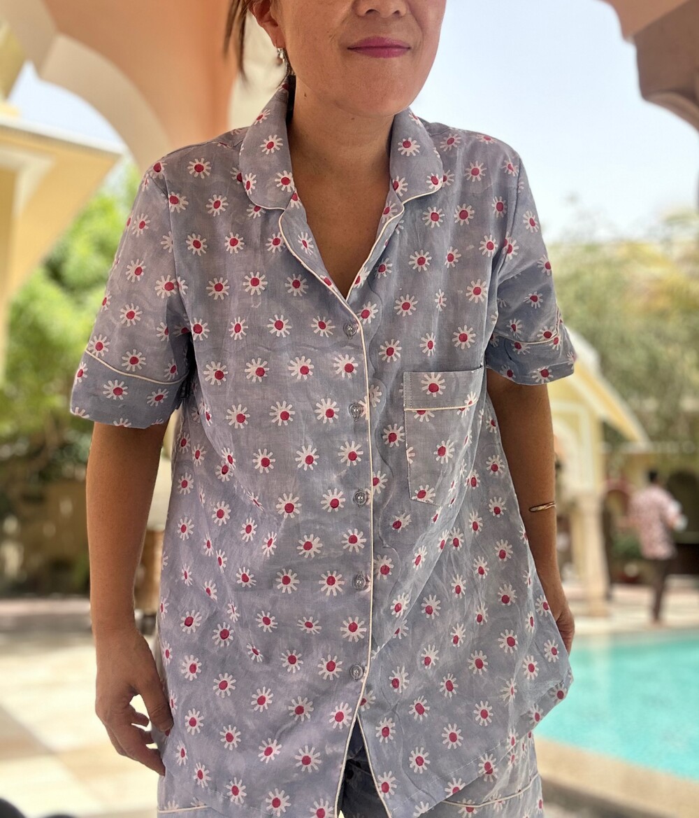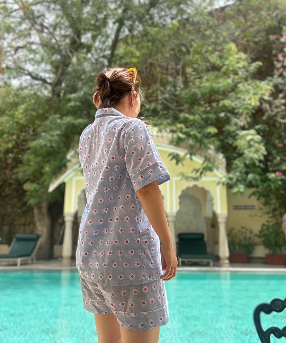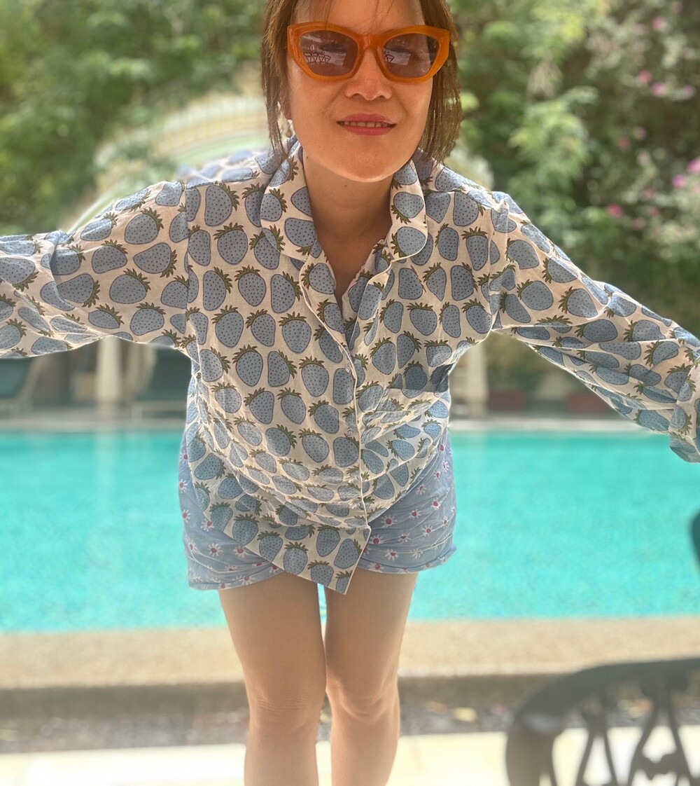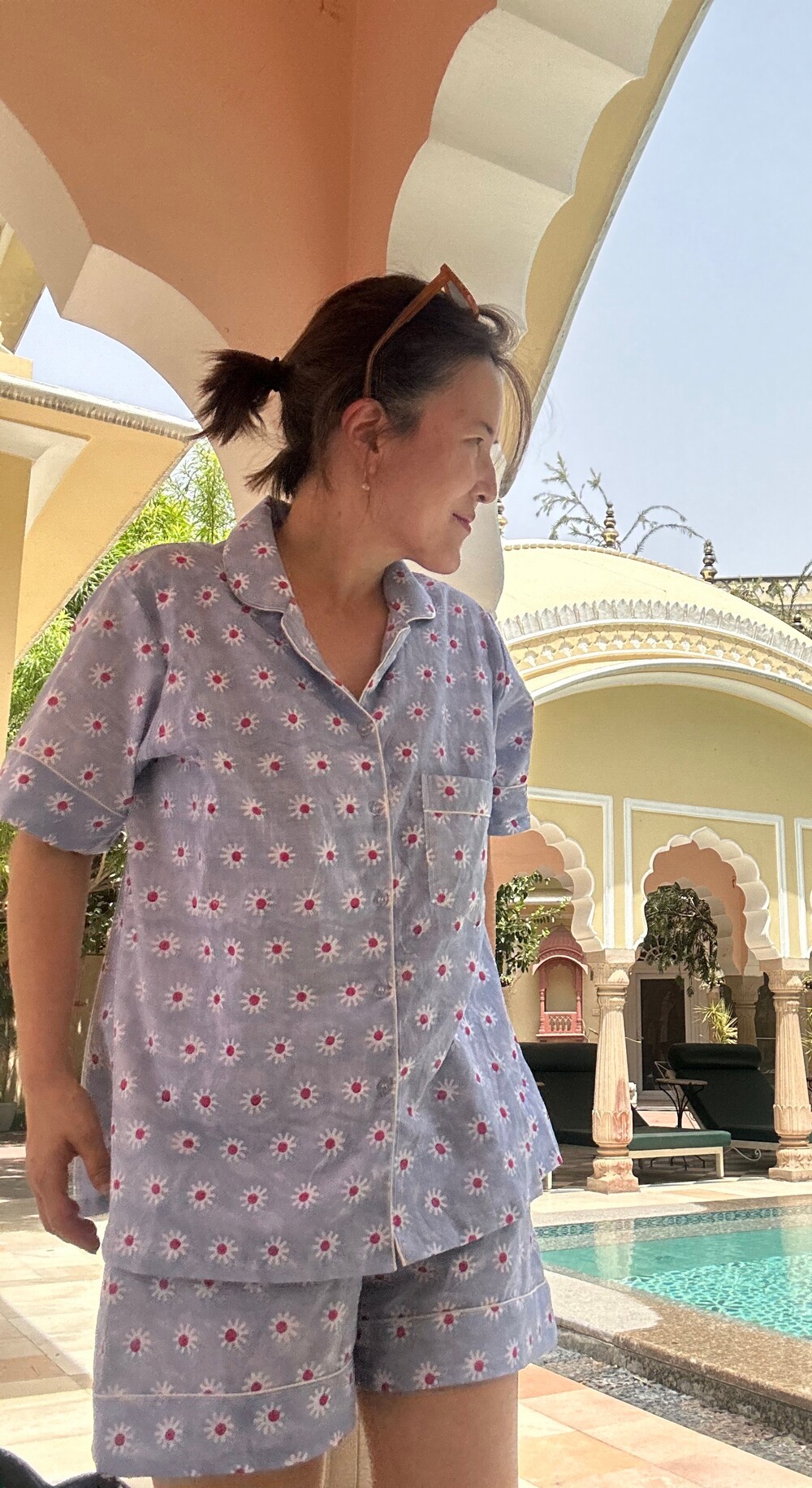 if only condition if rain or sand storm so without electricity otherwise all things possible❤️의 나라 인도에서 만든 파란딸기와 대이지 꽃의 잠옷이에요 .모두 저의 그림으로 제작된 인도로간 빠리지엔 패브릭입니다. 숏은 바지기장 40이에요. 롱기장은 95이고 밑위길이는 32정도로 편안한 디자인이에요.가슴둘레 55,66은 미듐으로 그 이상은 라지로 주문해주심되요❤️ 최대한 부지런히 진행할께요.원단준비 되어있고 인도에서 유월말 발송예정으로 진행합니다.전시준비로 6.12까지만 오더후 솔드아웃예정입니다😍
