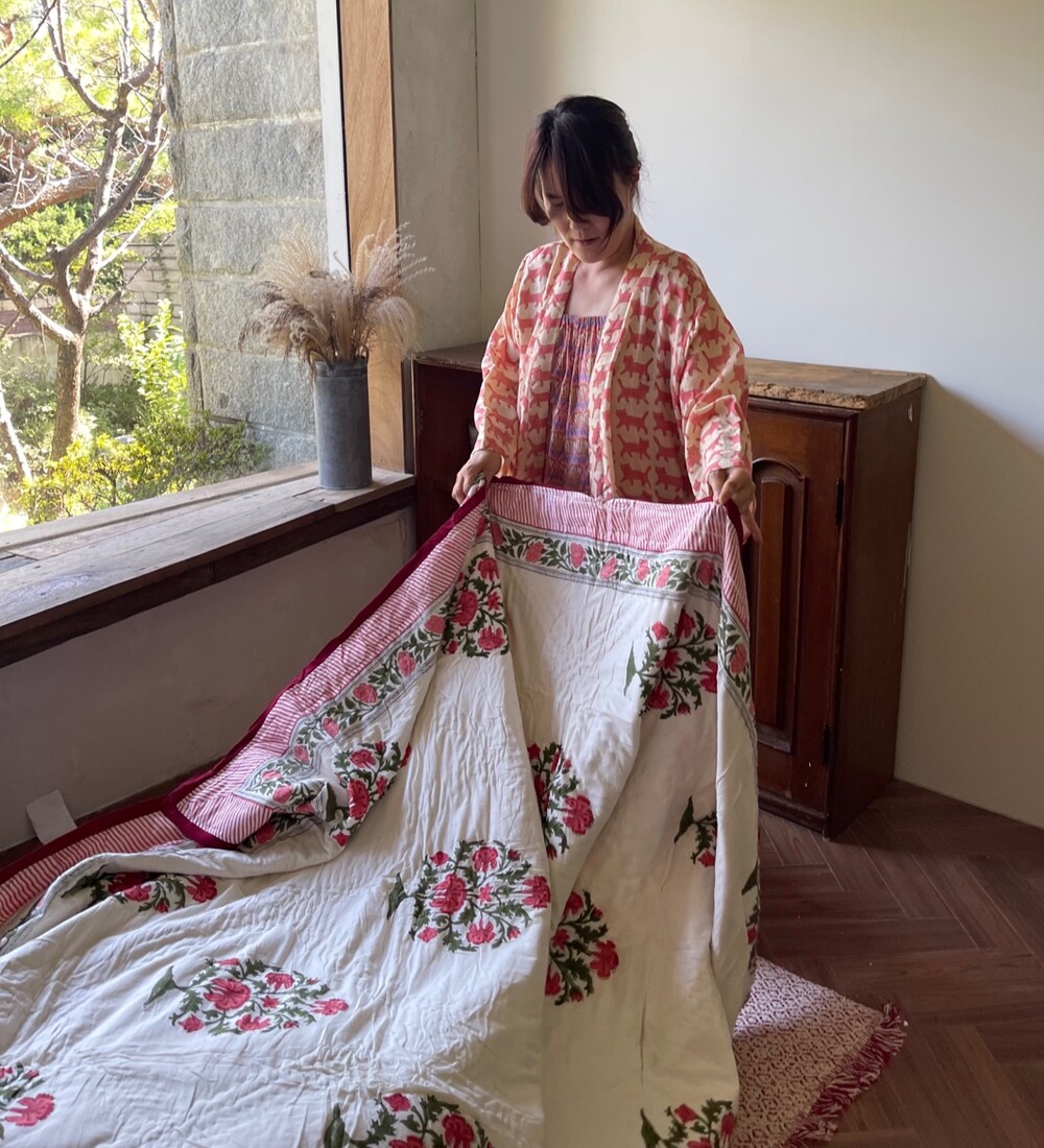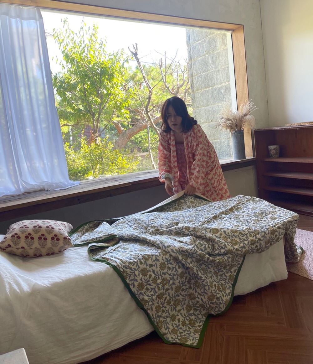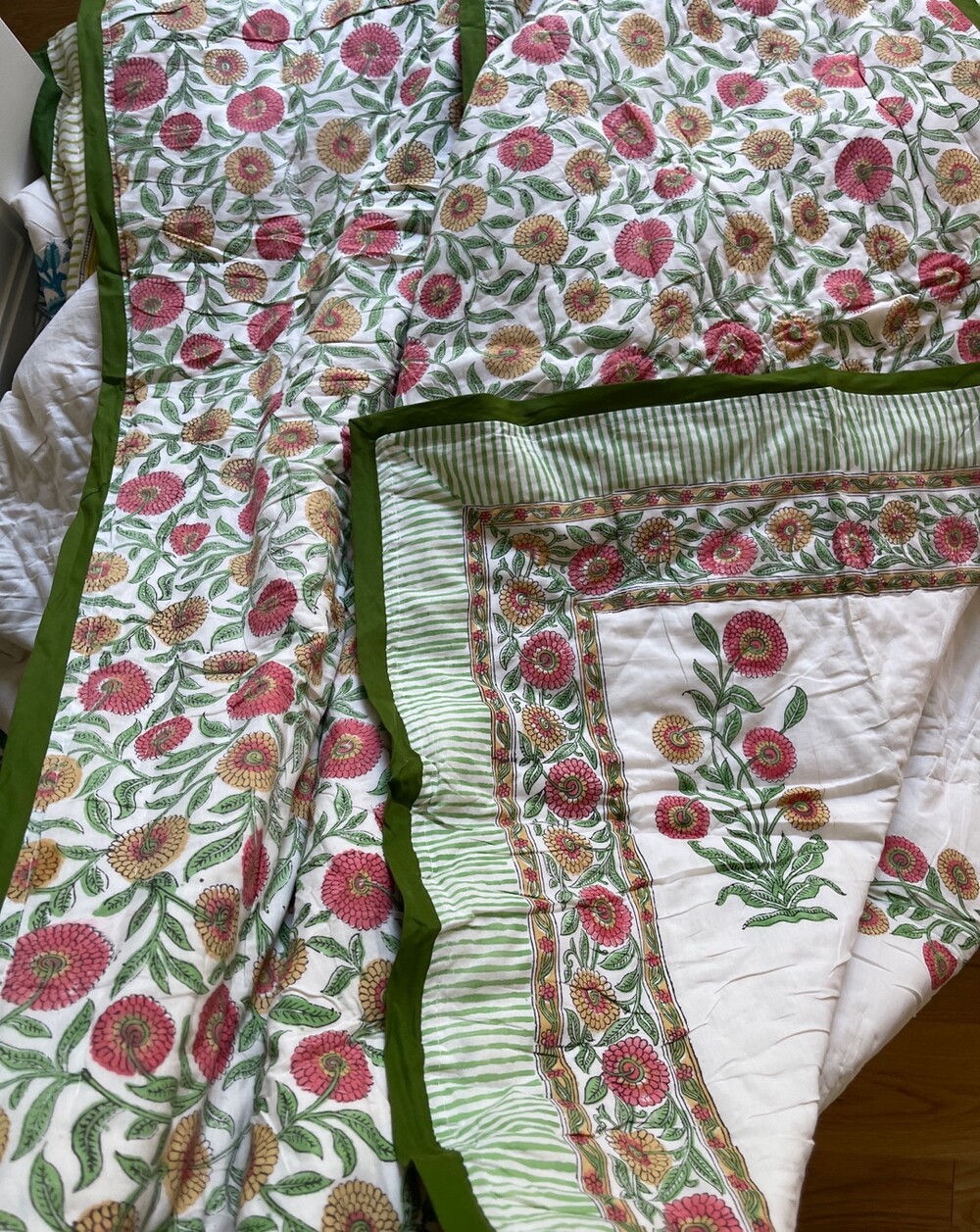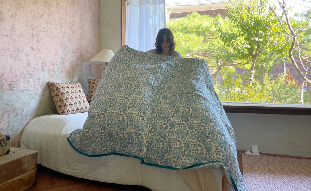 이온스정도이고 그렇게 두껍지는 않습니다. 겨울에는 패드로 사용하시기도 좋고 정말 따뜻하고 중간중간 뭉침없이 손바느질되어있습니다