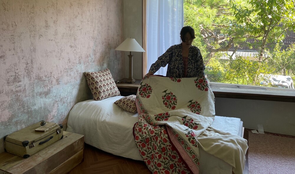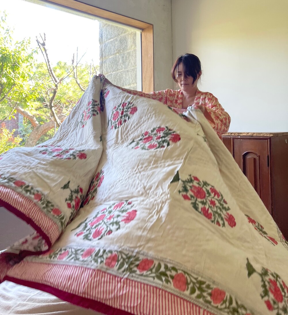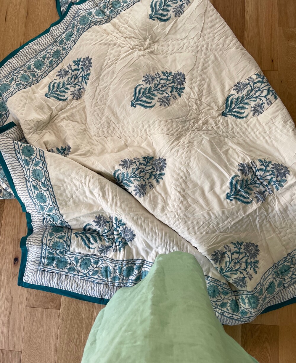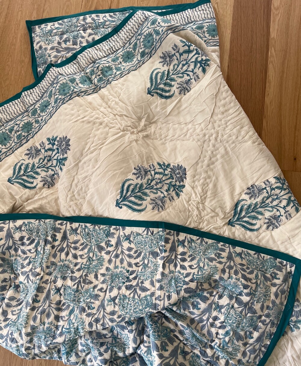이온스정도이고 그렇게 두껍지는 않습니다. 겨울에는 패드로 사용하시기도 좋고 정말 따뜻하고 중간중간 뭉침없이 손바느질되어있습니다
