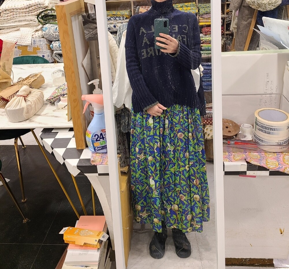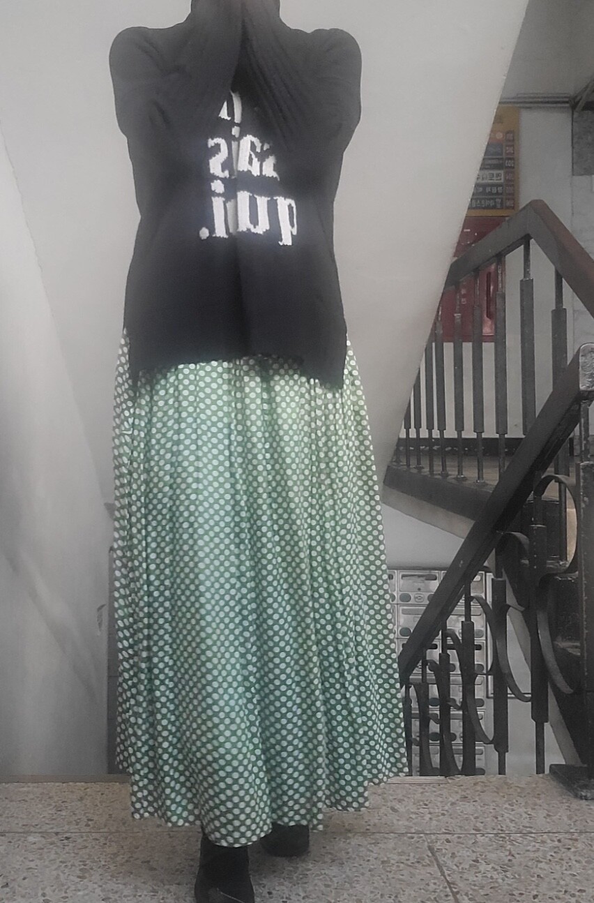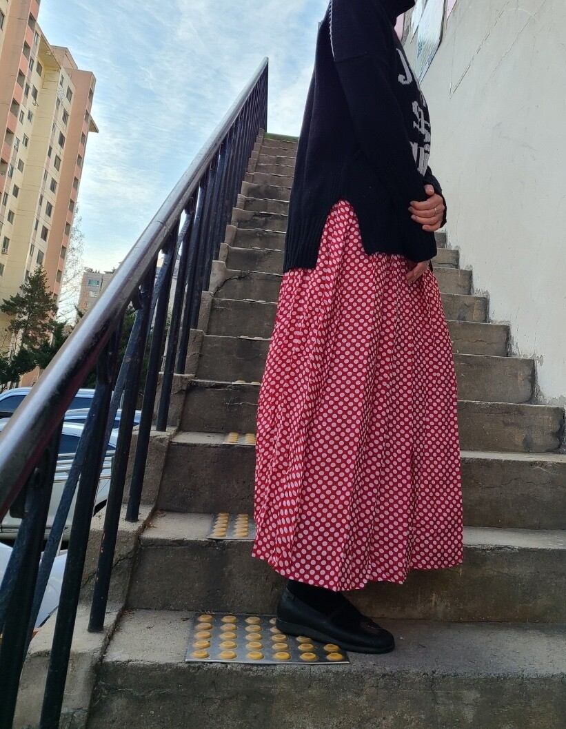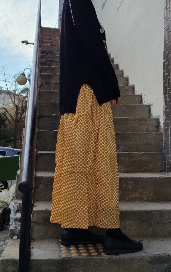 고무줄이라 넉넉하고요 겨울에 어두운 솔리드코트와 입으시면 아주 기분좋게 입으실것같아요❤️ 기장은 90-95정도로 오차있어요❤️