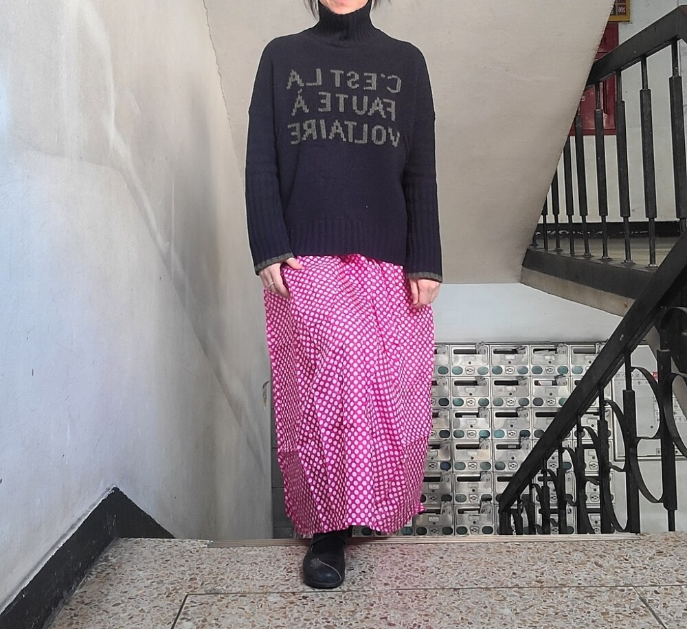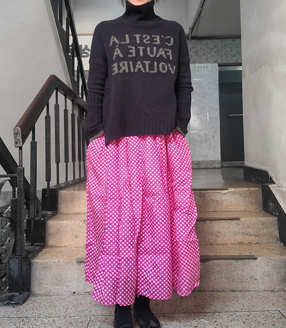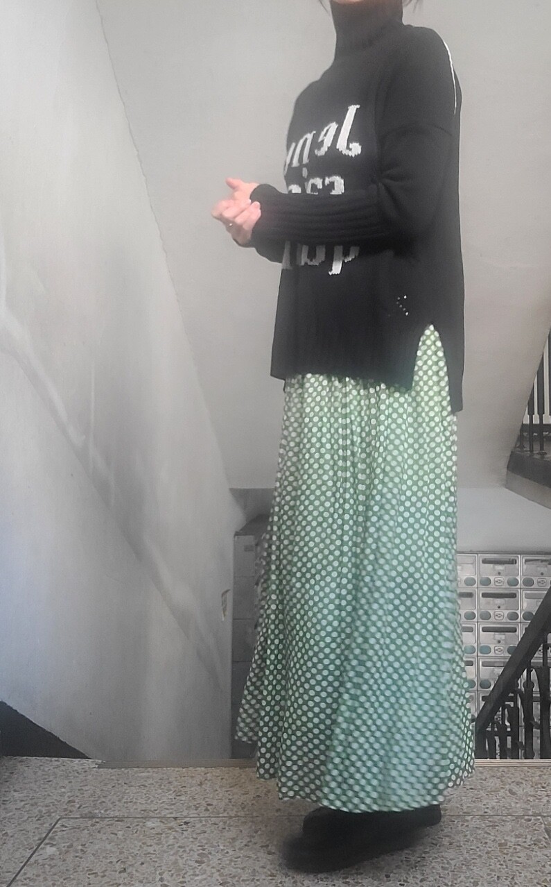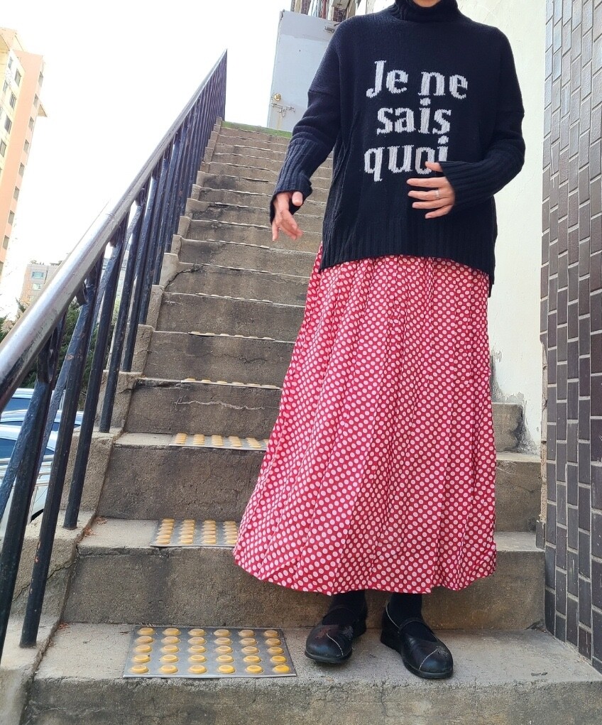 고무줄이라 넉넉하고요 겨울에 어두운 솔리드코트와 입으시면 아주 기분좋게 입으실것같아요❤️ 기장은 90-95정도로 오차있어요❤️