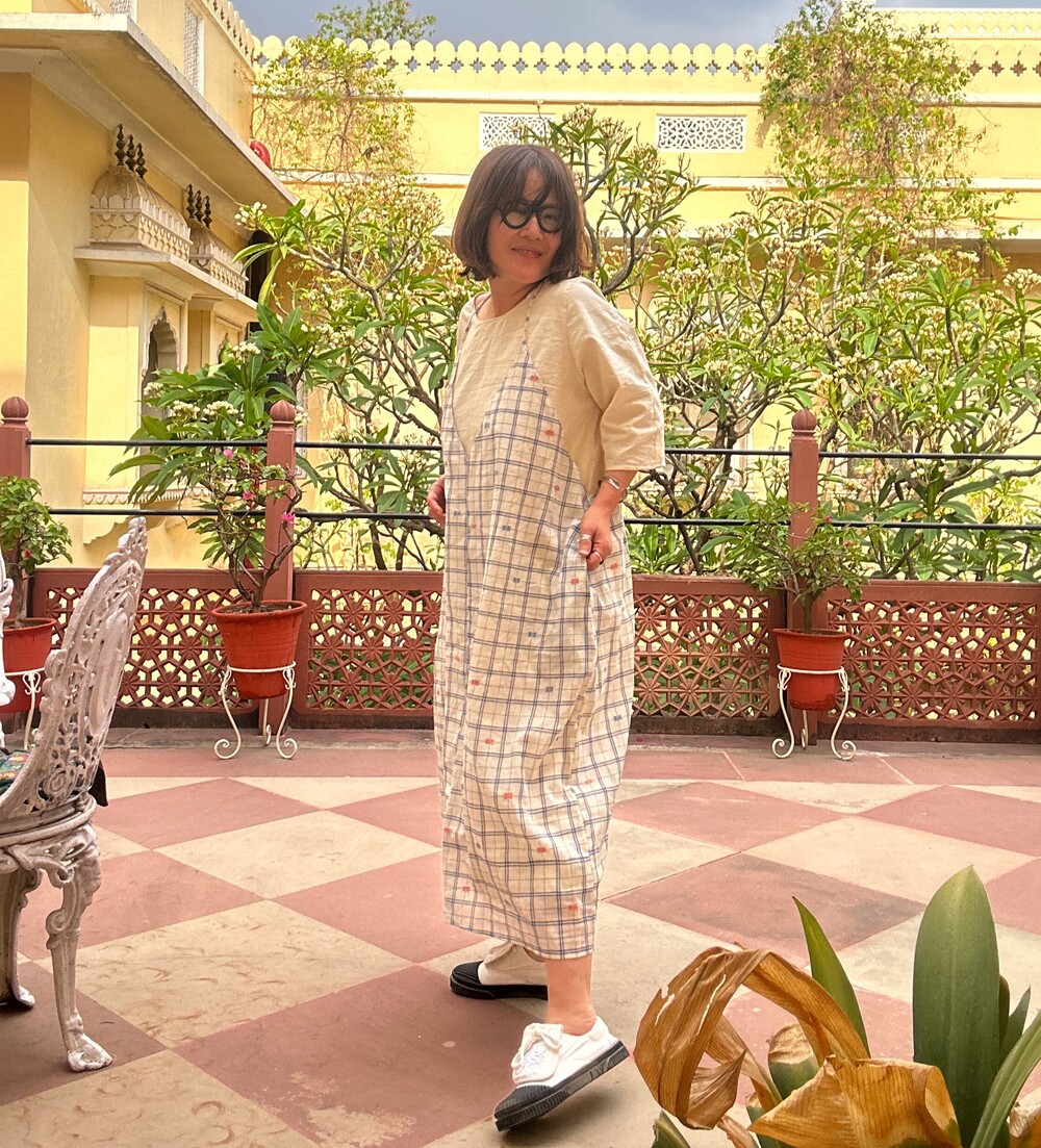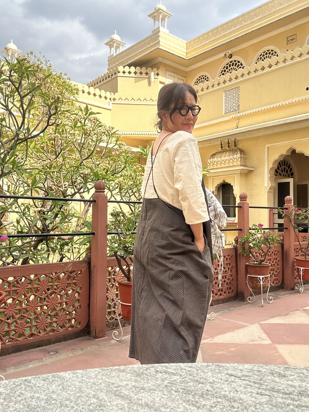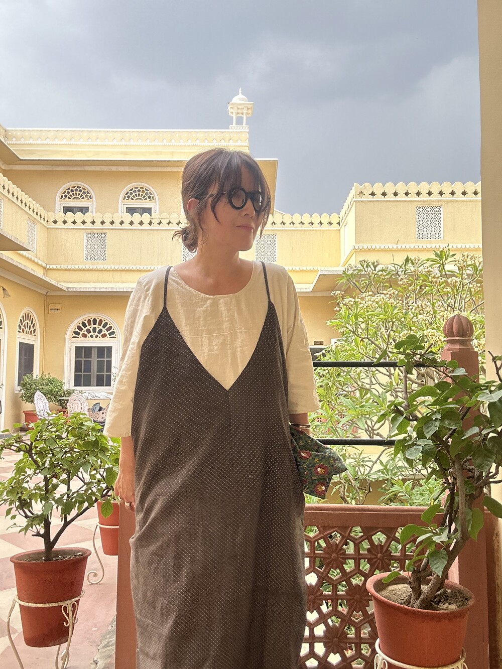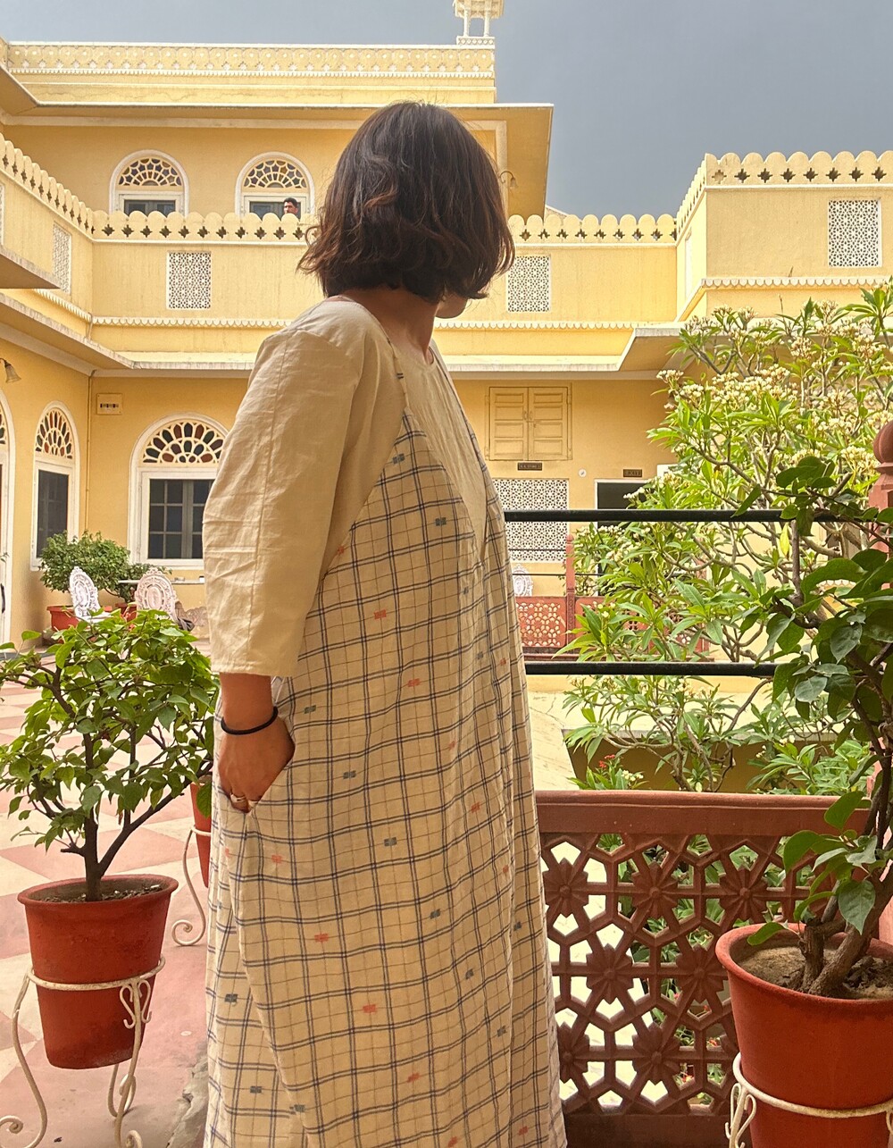 109센티미터 기장의 드레스에요,청바지와 티셔츠 입어도 예쁘고 이렇게 원피스 위에 겹쳐도 예뻐요. 준비된 원단으로만 작업가능해요.도트는 머드 프린팅이고 기하학은 직기로 짠 면이에요. 5.15까지 주문가능하고 오월말부터 인도에서 발송되니 단순변심 교환 환불 힘들어요.신중구매해주세요.