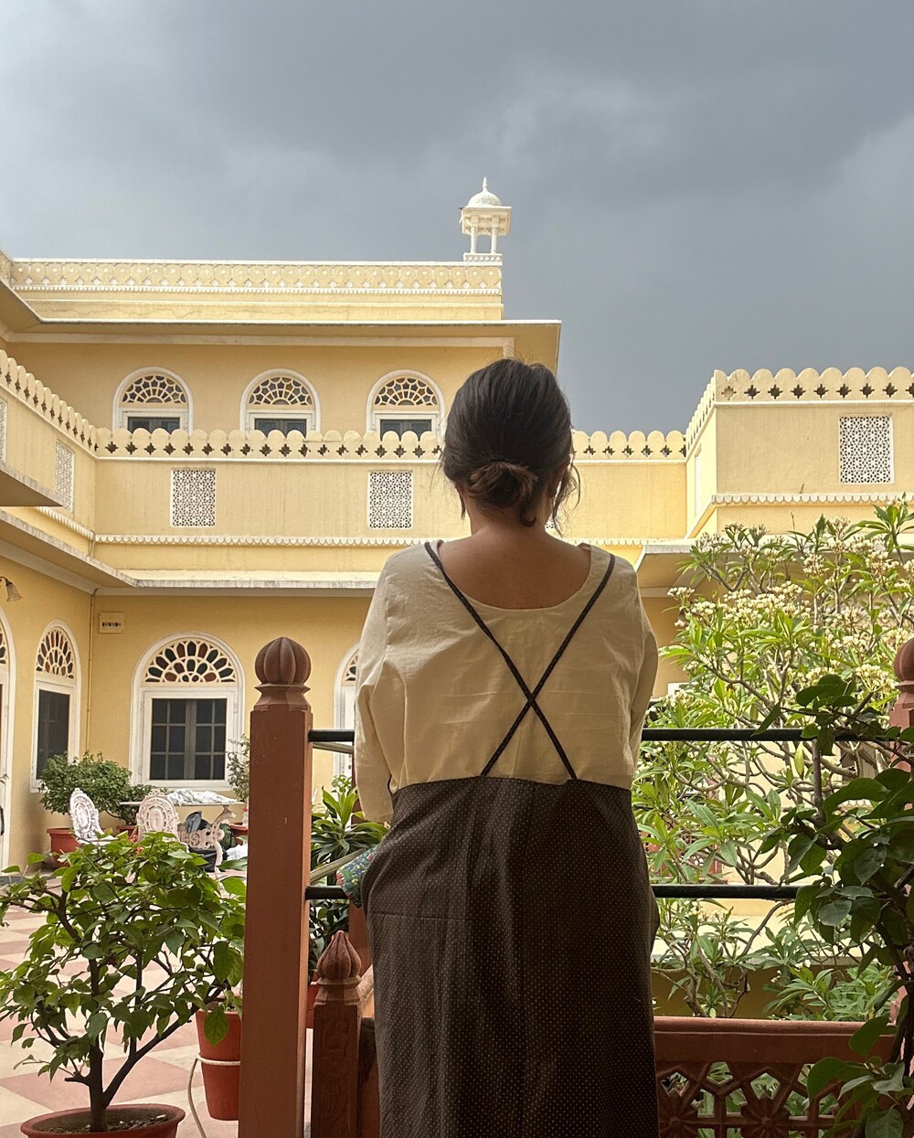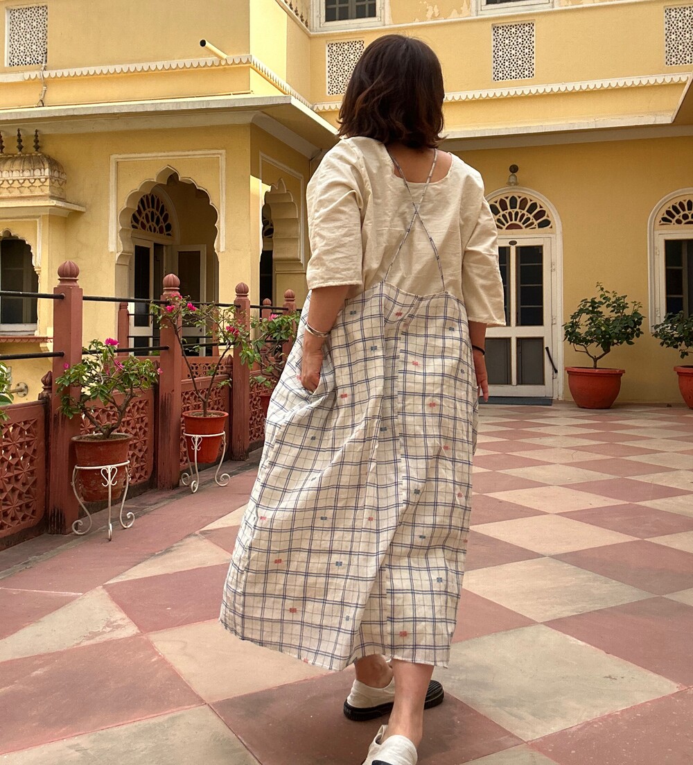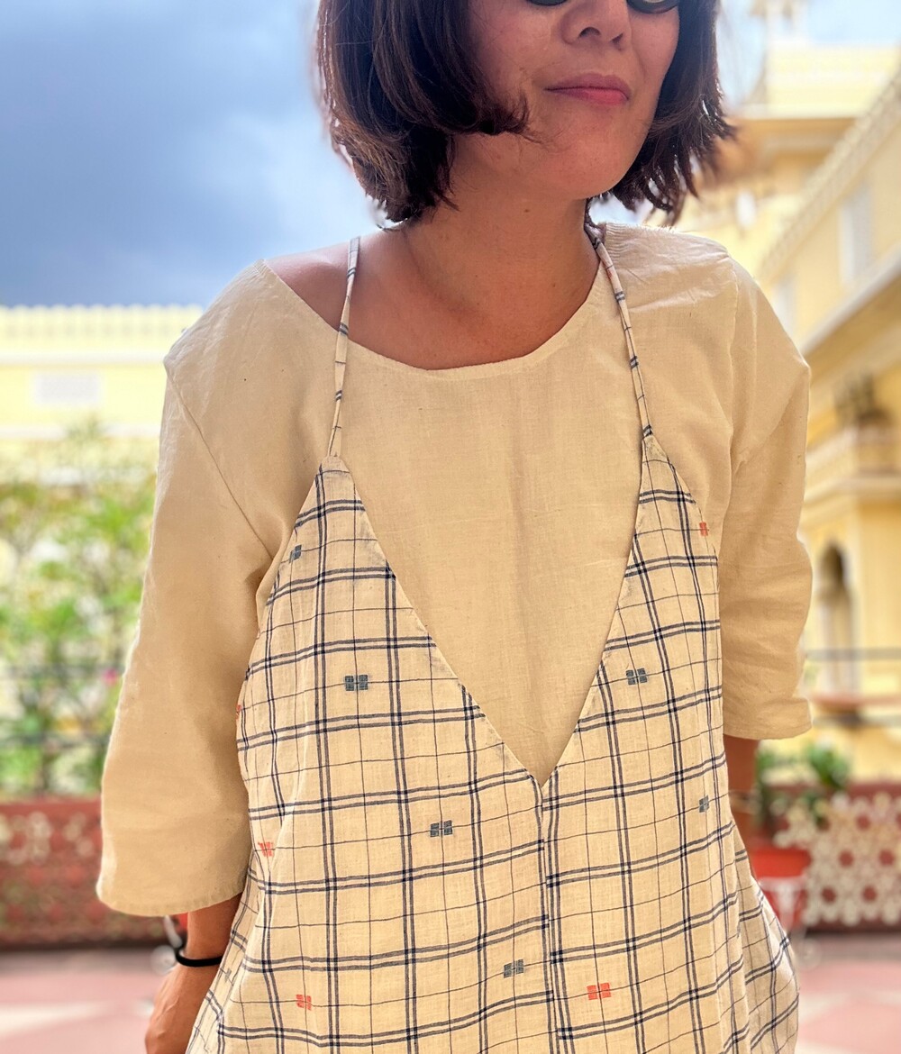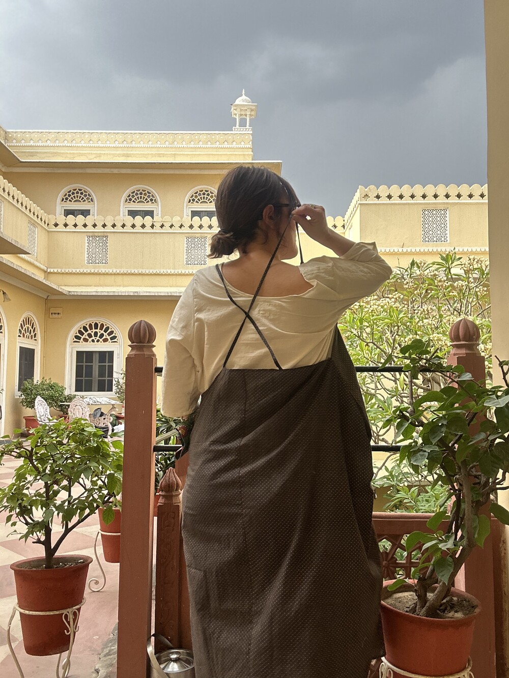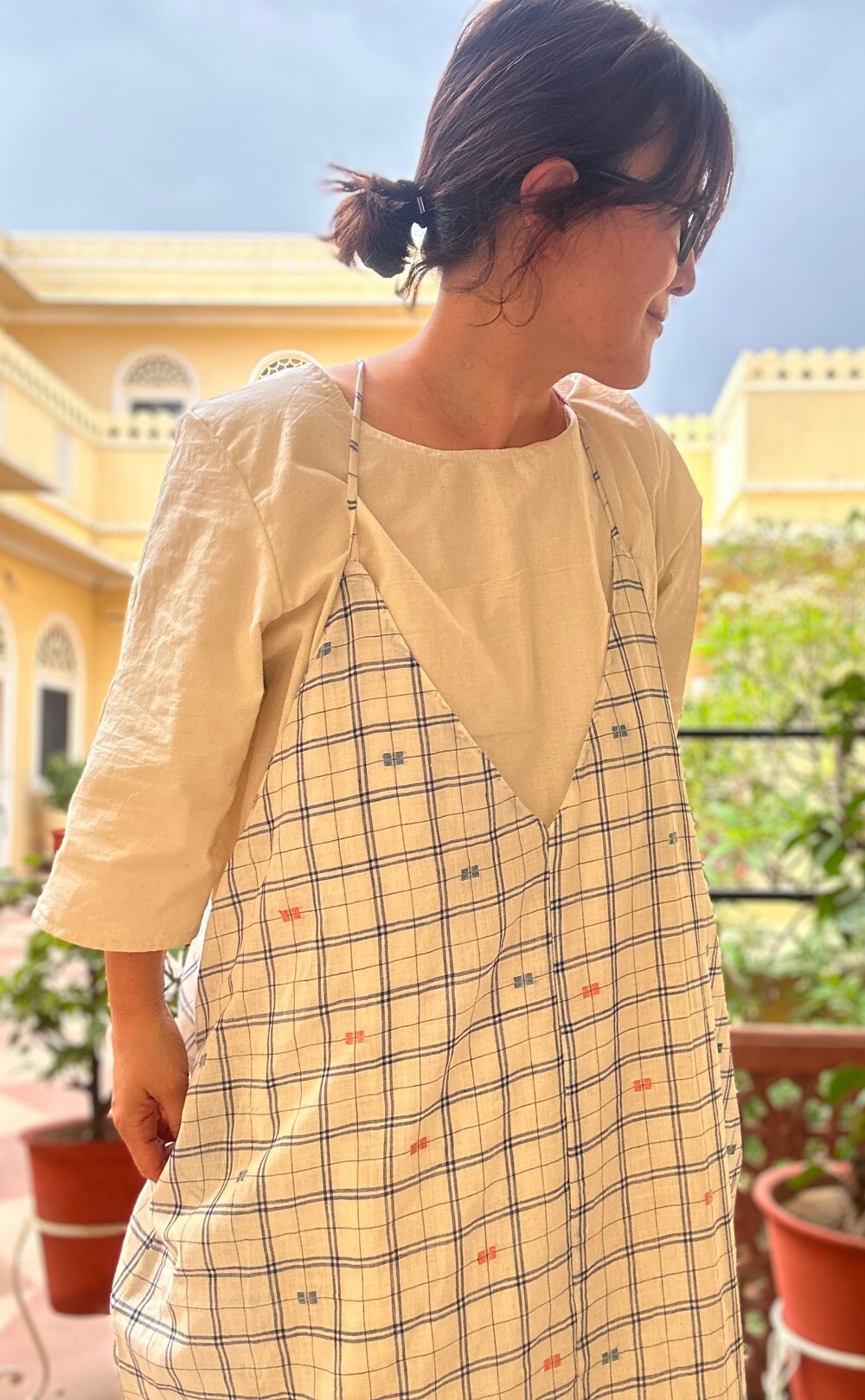 109센티미터 기장의 드레스에요,청바지와 티셔츠 입어도 예쁘고 이렇게 원피스 위에 겹쳐도 예뻐요. 준비된 원단으로만 작업가능해요.도트는 머드 프린팅이고 기하학은 직기로 짠 면이에요. 5.15까지 주문가능하고 오월말부터 인도에서 발송되니 단순변심 교환 환불 힘들어요.신중구매해주세요.