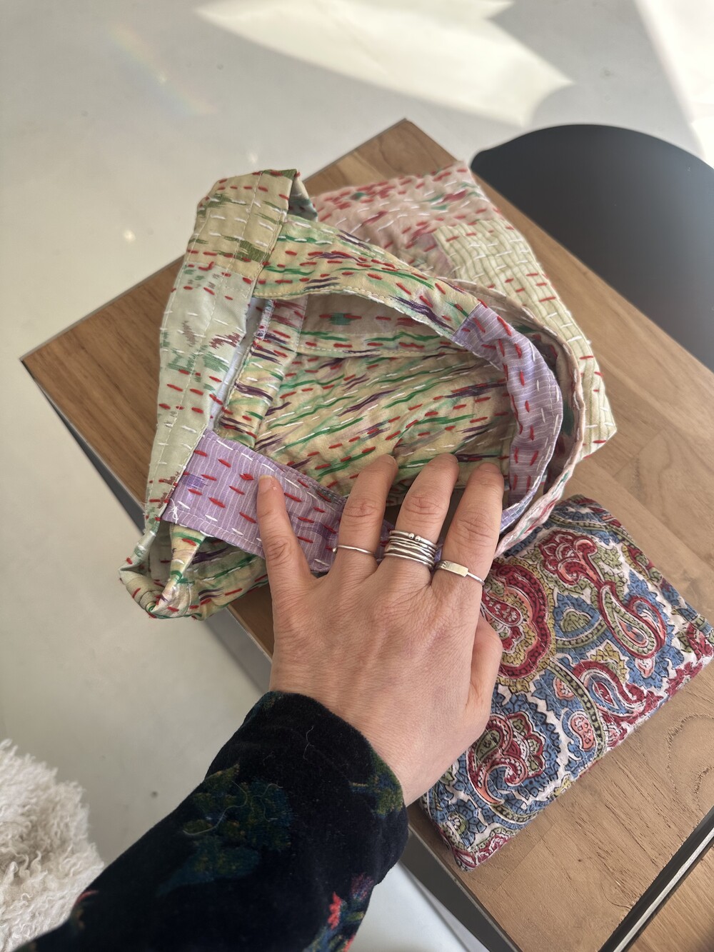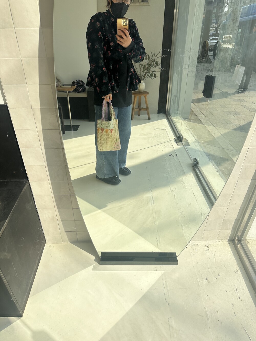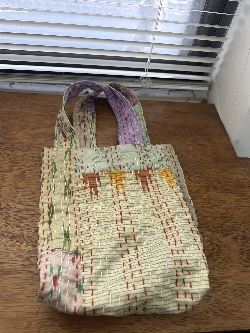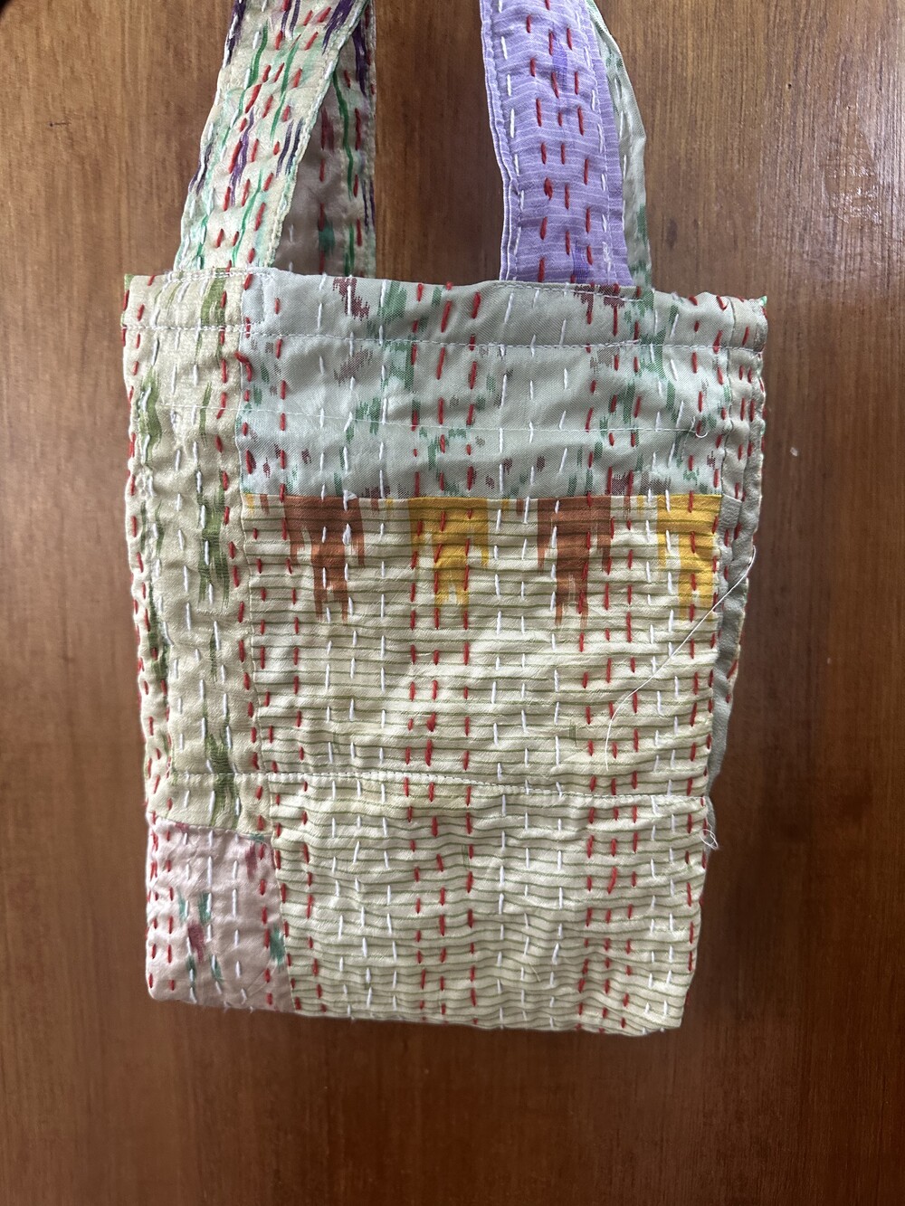 가로 22 세로 26정도 사이즈의 손스티치 실크(안감면)가방이에요.안주머니도 있어서 뭐가 은근 많이 들어가고요.정장,코트,패딩,어느룩에나 아주 잘어울려요.