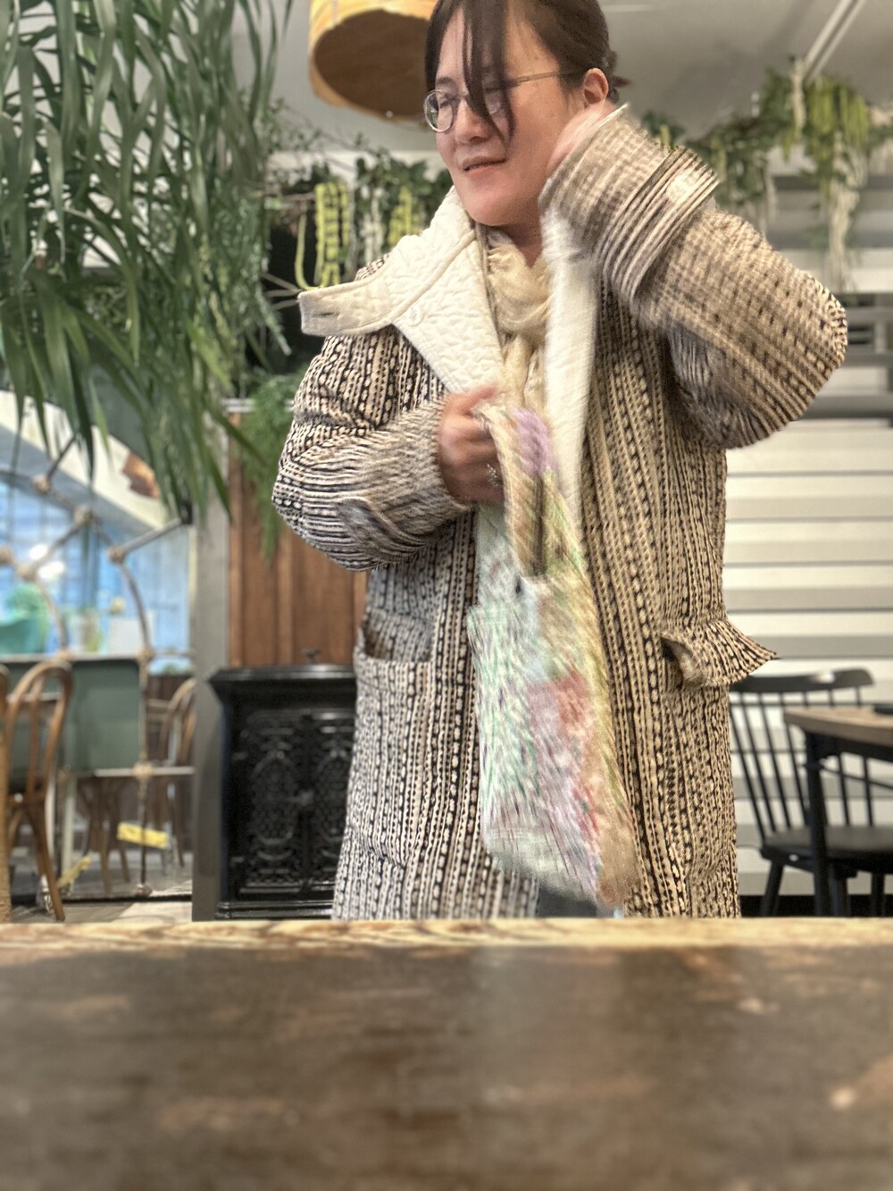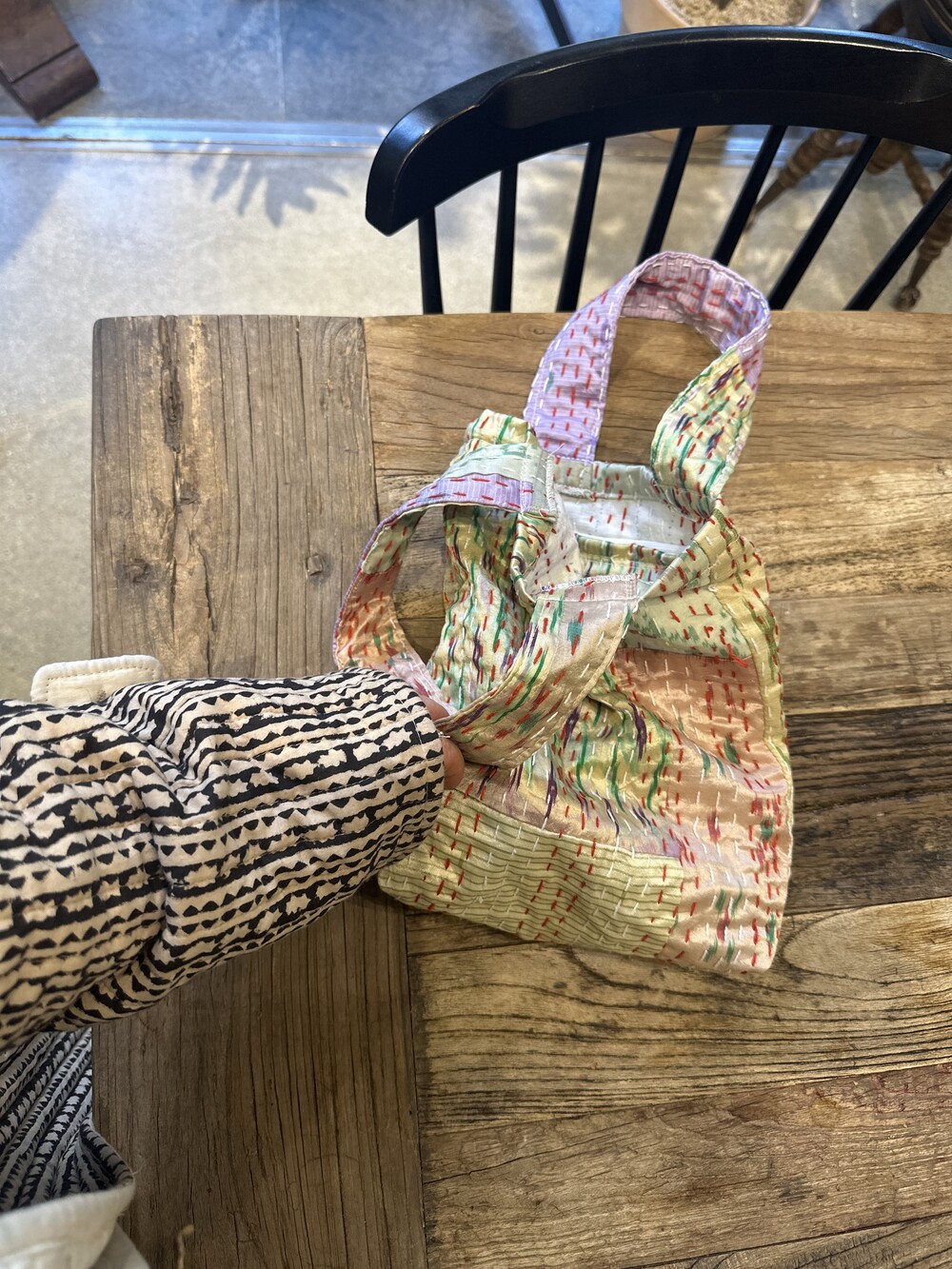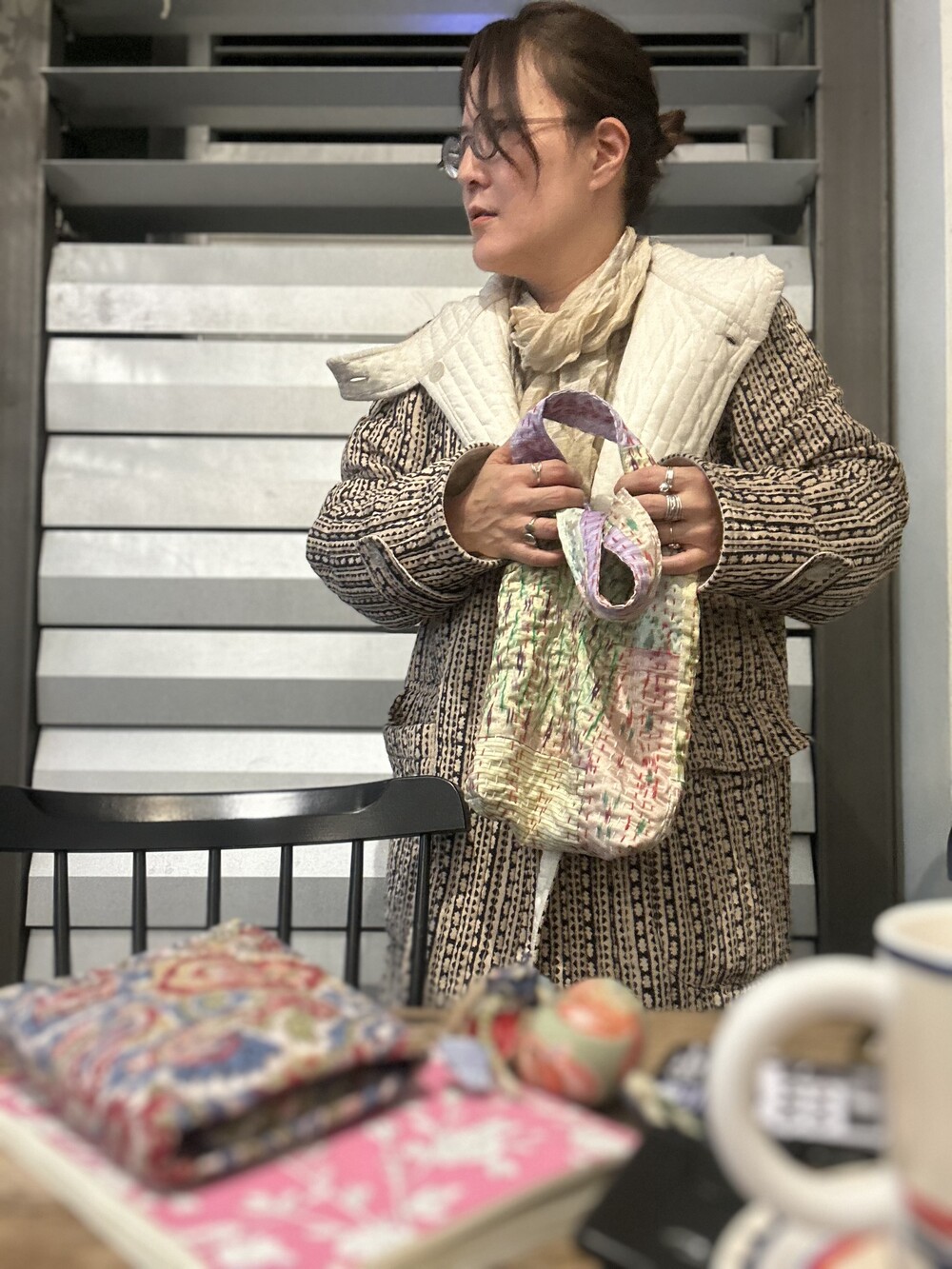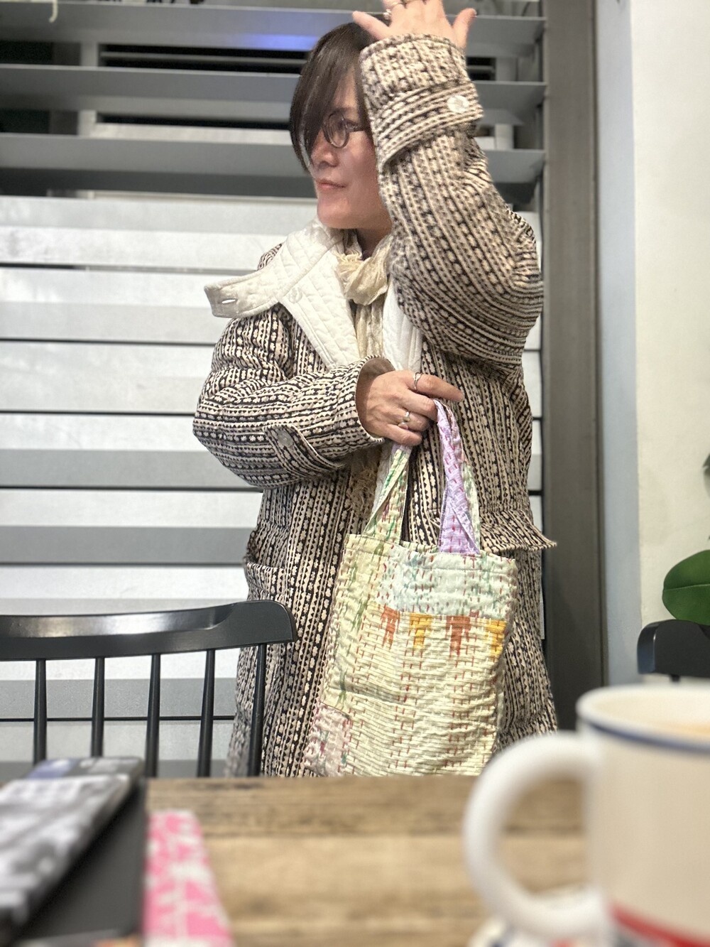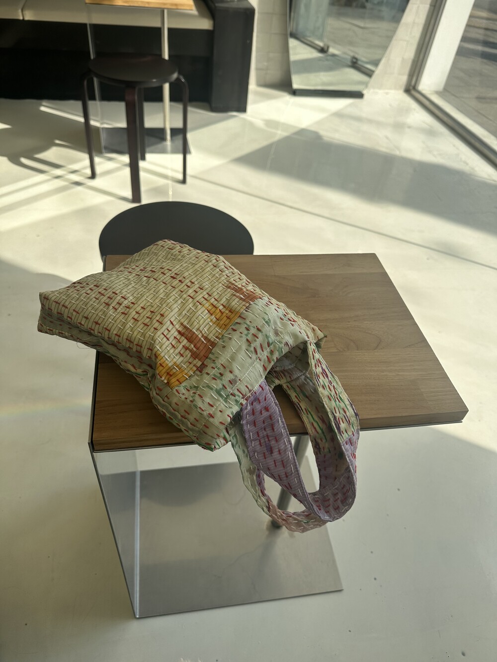 가로 22 세로 26정도 사이즈의 손스티치 실크(안감면)가방이에요.안주머니도 있어서 뭐가 은근 많이 들어가고요.정장,코트,패딩,어느룩에나 아주 잘어울려요.