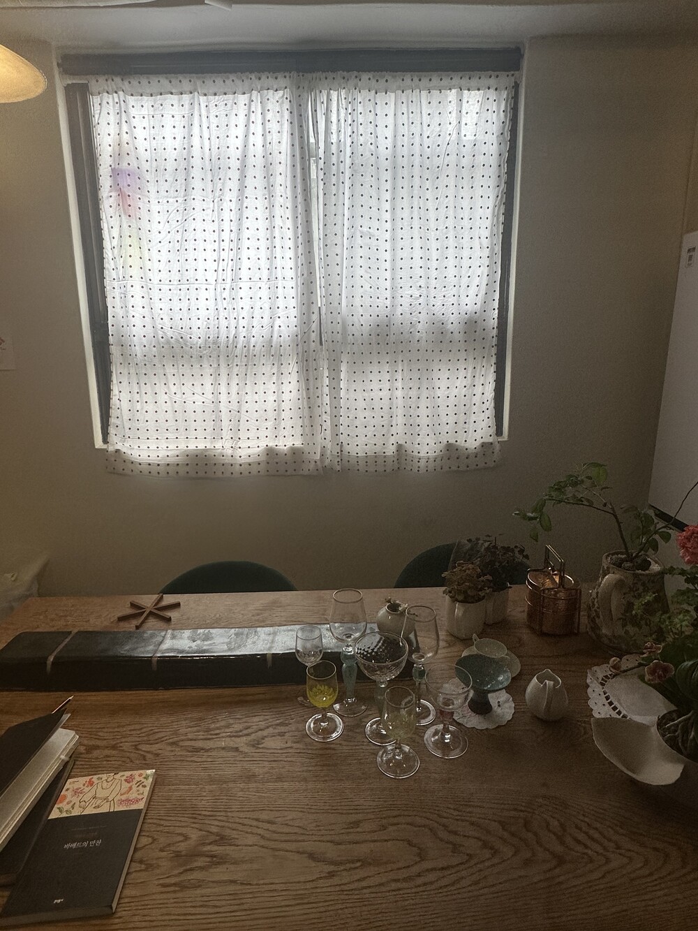 빛차단이 암막처럼은 아니어도 제법 흰원단이 기분좋게 해를 걸러줍니다🤣