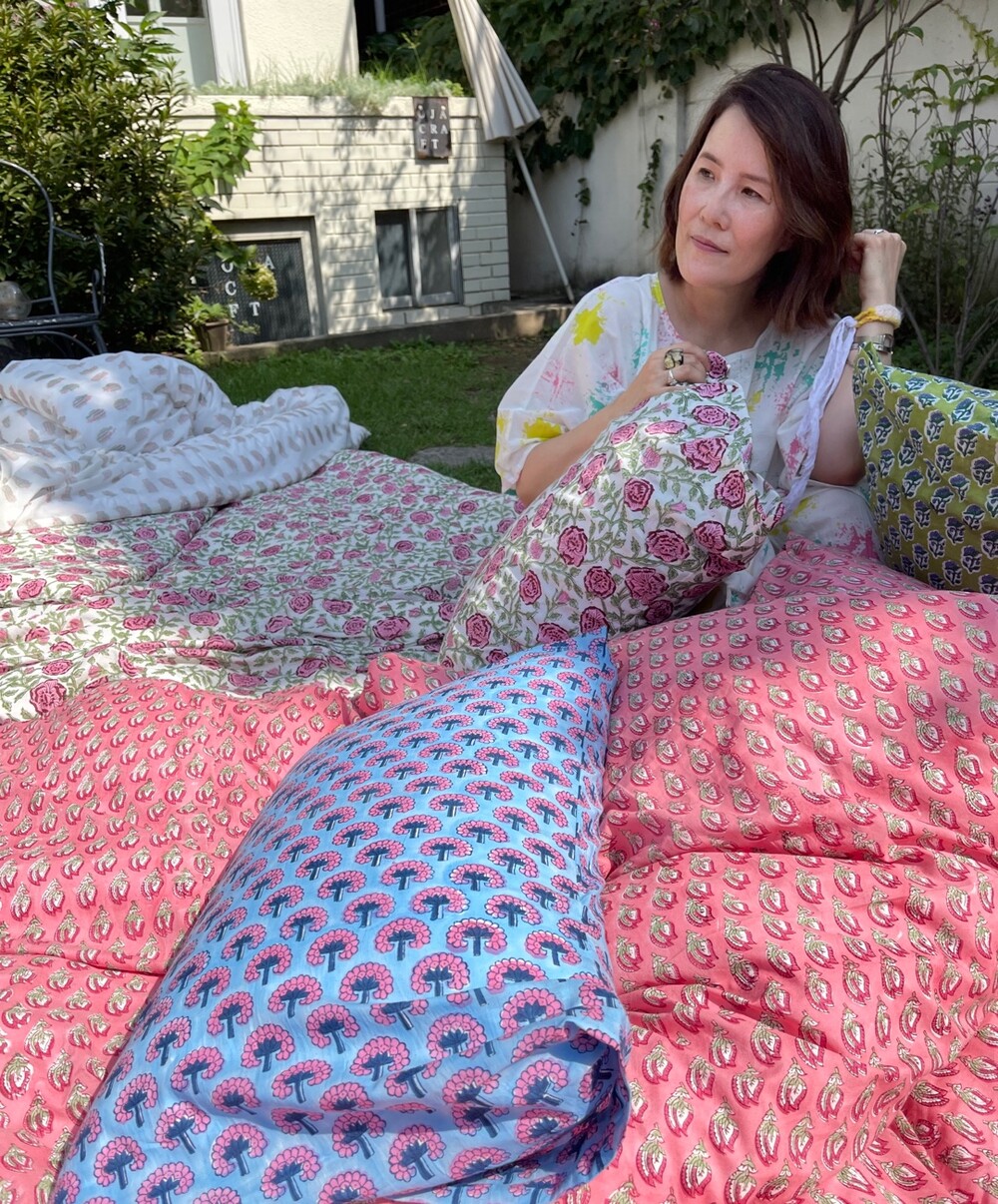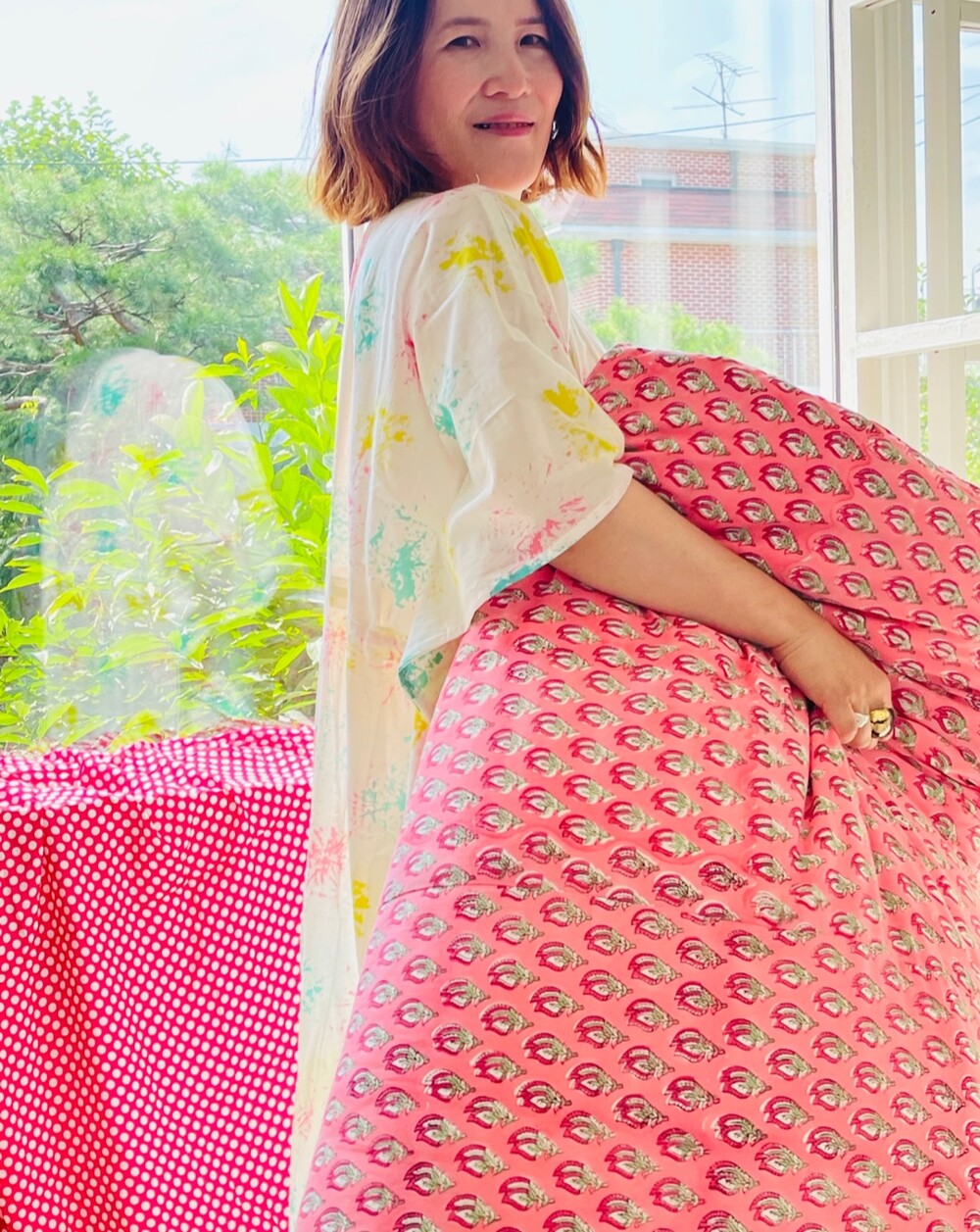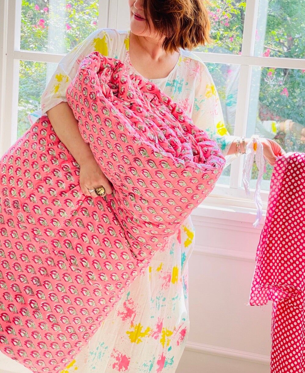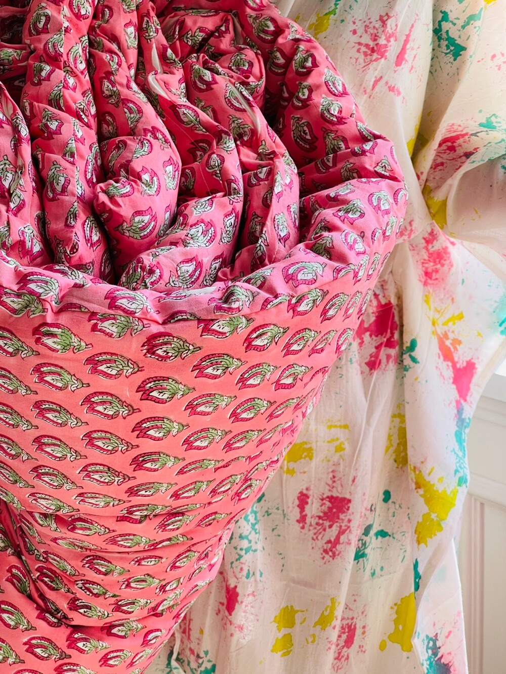 연지곤지컬러의 핑크 빛 2온스 목화솜 이불이에요 사이즈는 210*160 입니다.