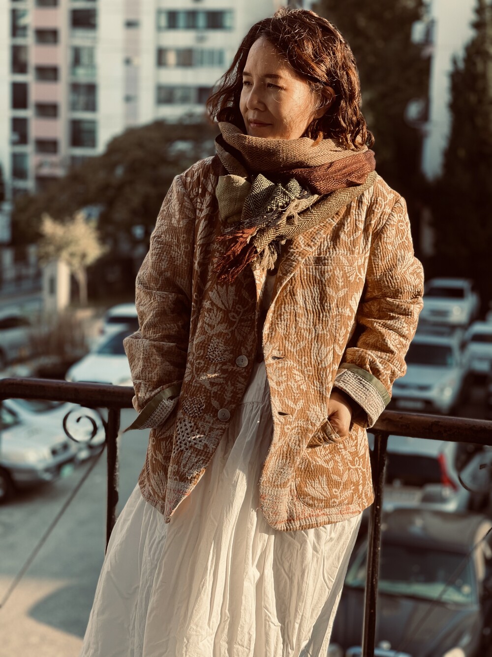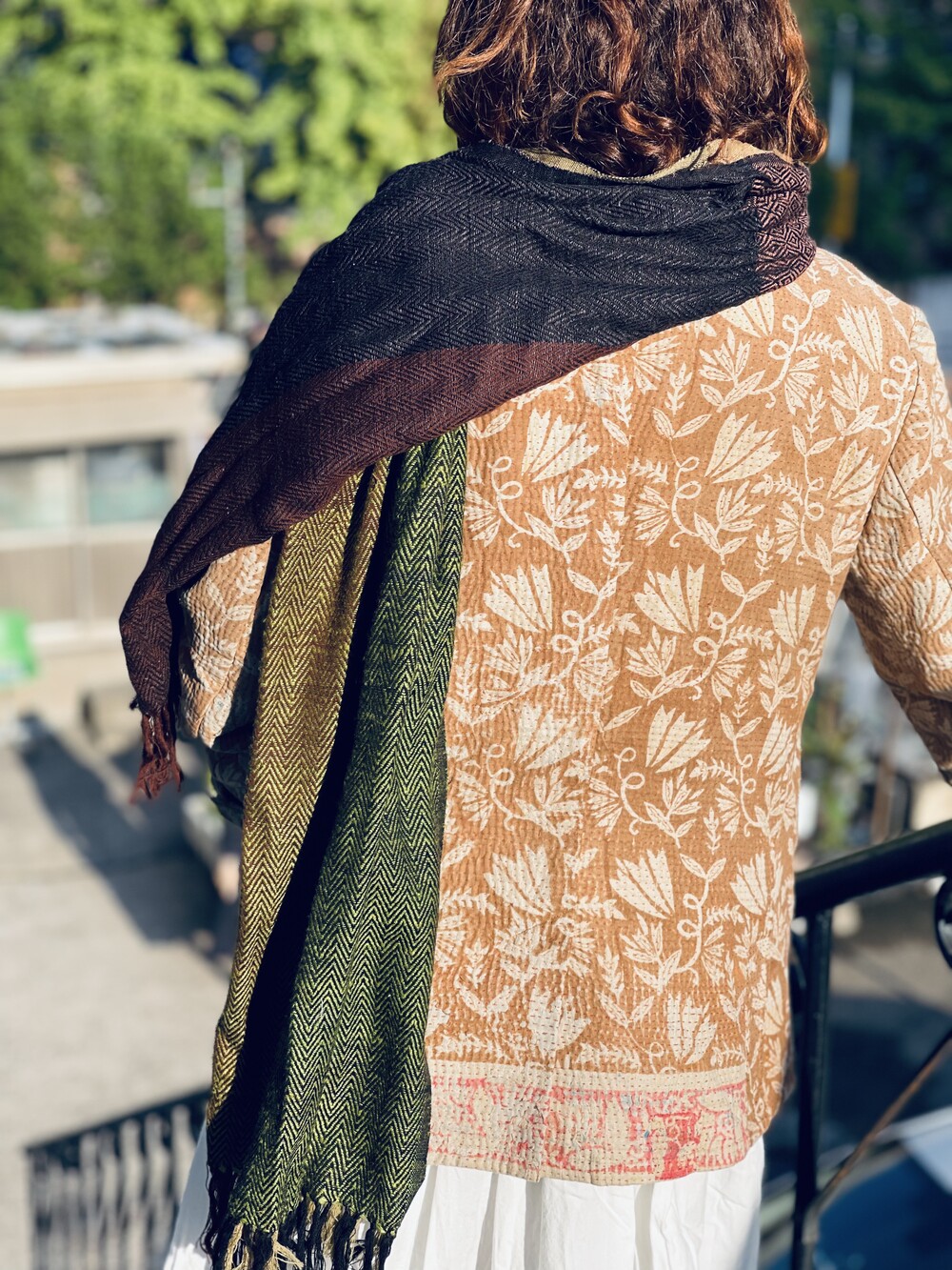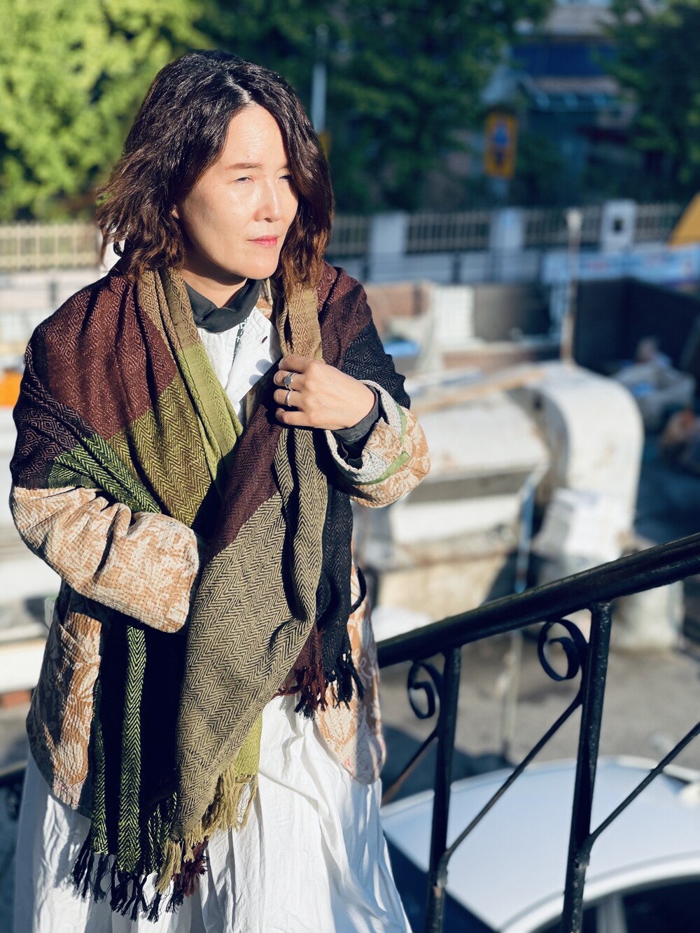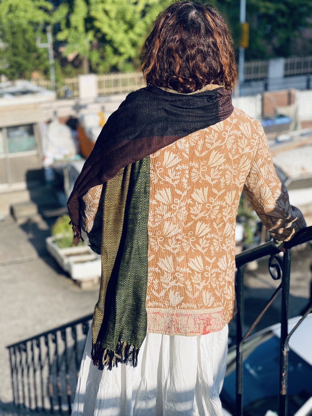 그린과 브라운의 조합도 아름답고 사이즈도 좋아요❤️멋스러움 가득한 스카프에요