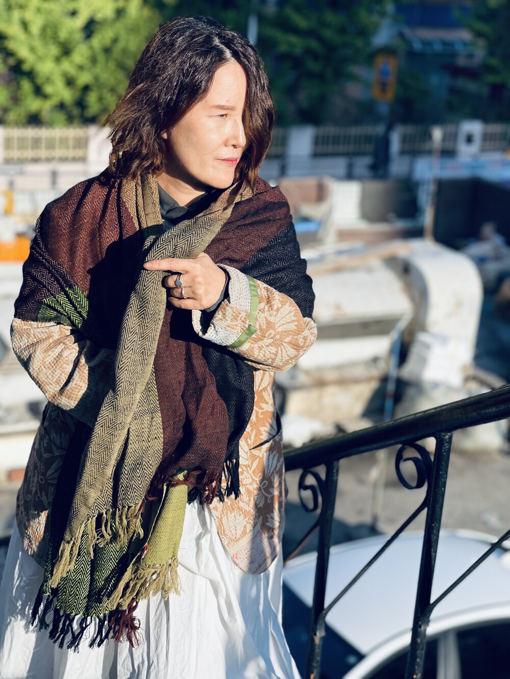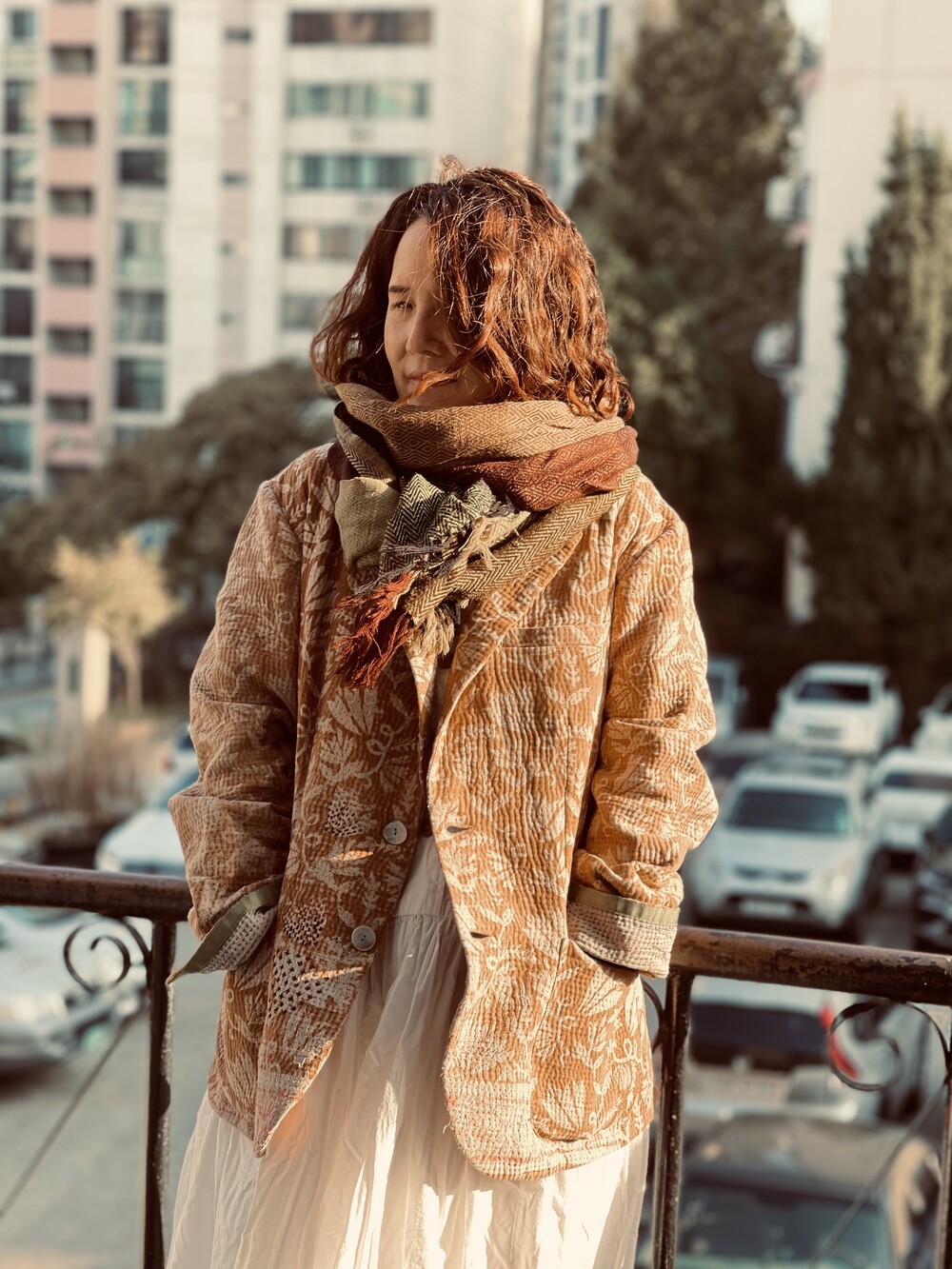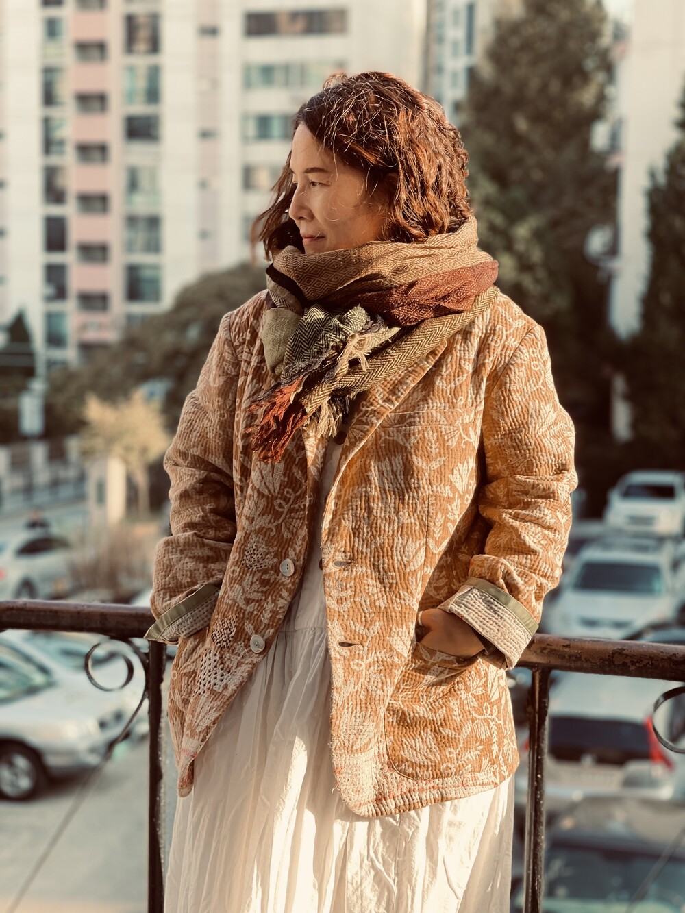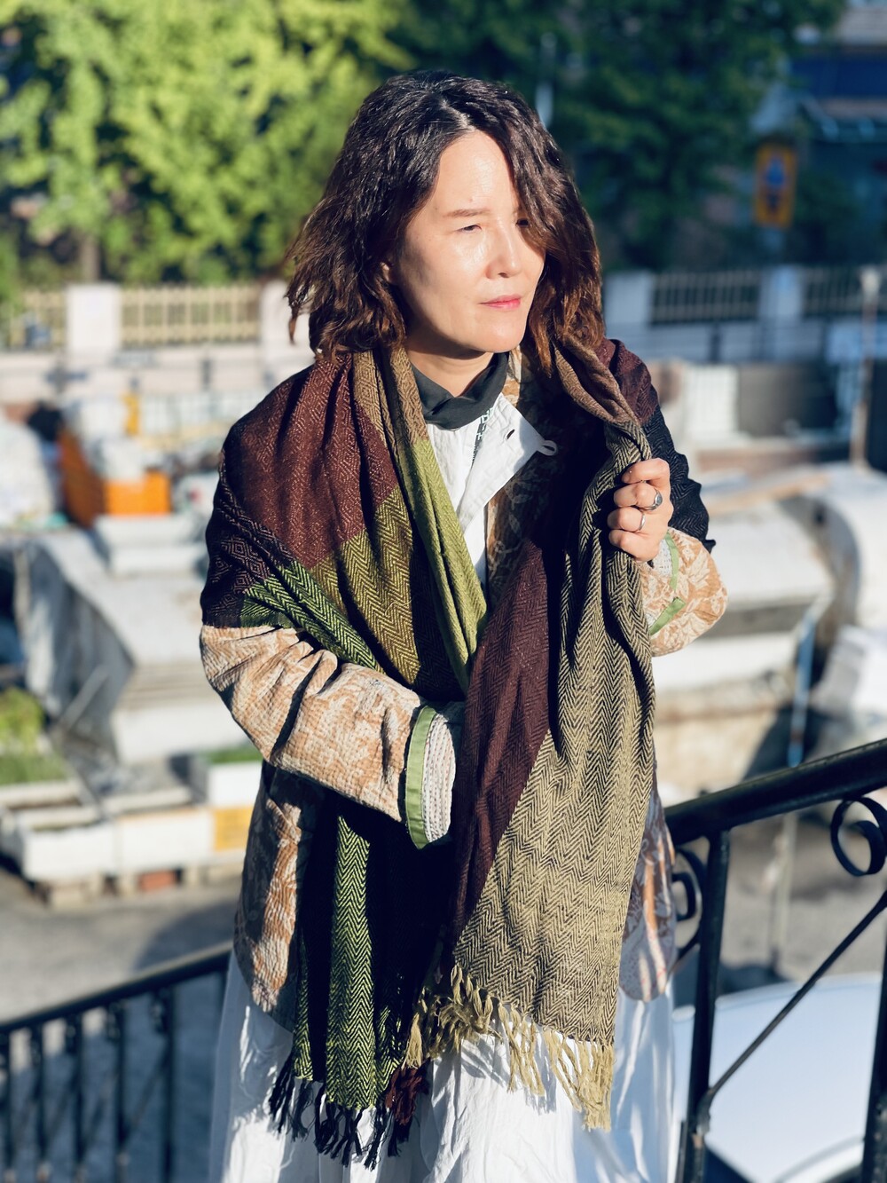 그린과 브라운의 조합도 아름답고 사이즈도 좋아요❤️멋스러움 가득한 스카프에요
