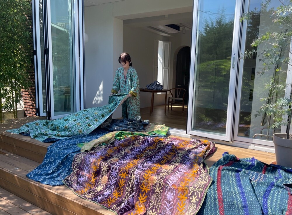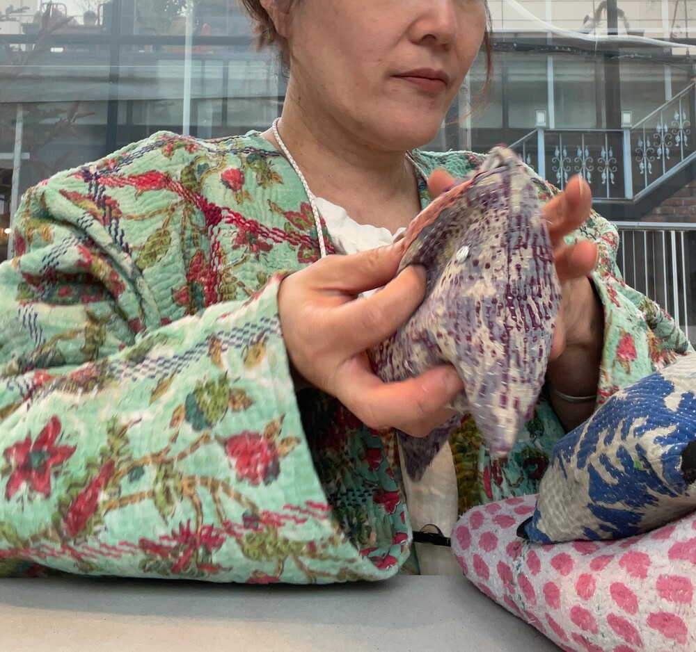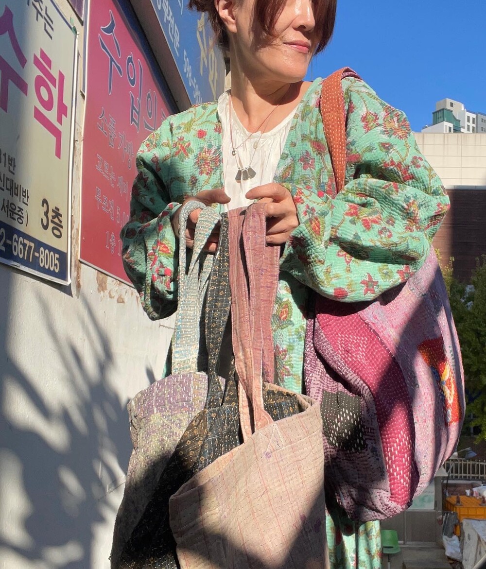 빈티지칸타생지를 제가 좋아하는 컬러와 그림으로 염색하고 프린팅했어요.