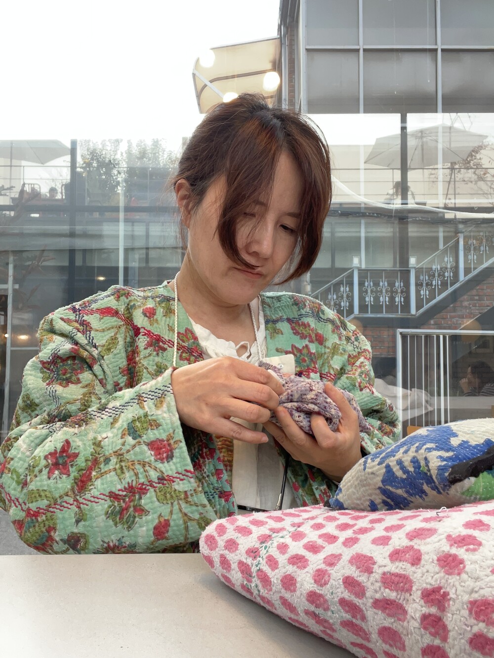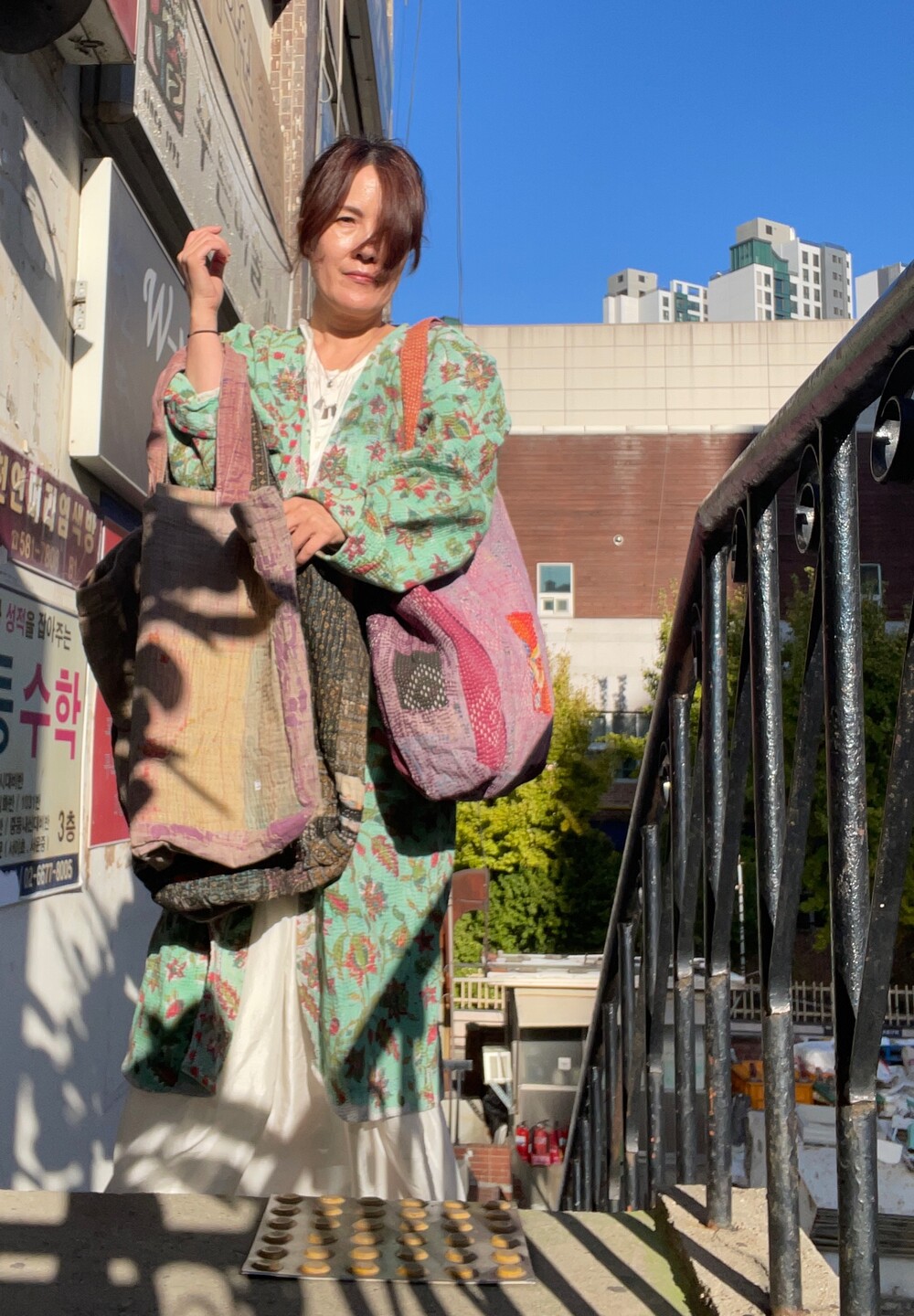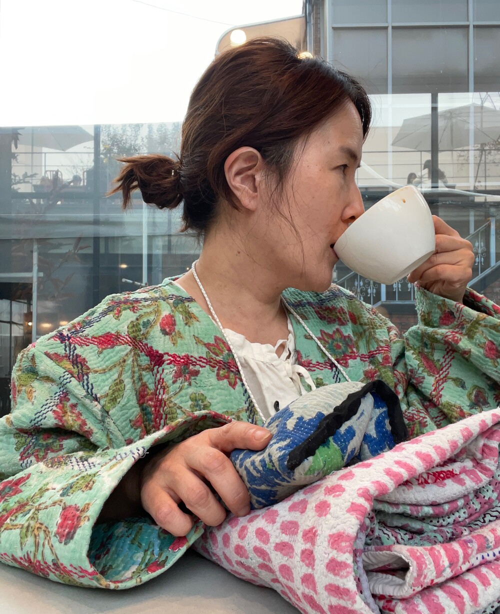 빈티지칸타생지를 제가 좋아하는 컬러와 그림으로 염색하고 프린팅했어요.