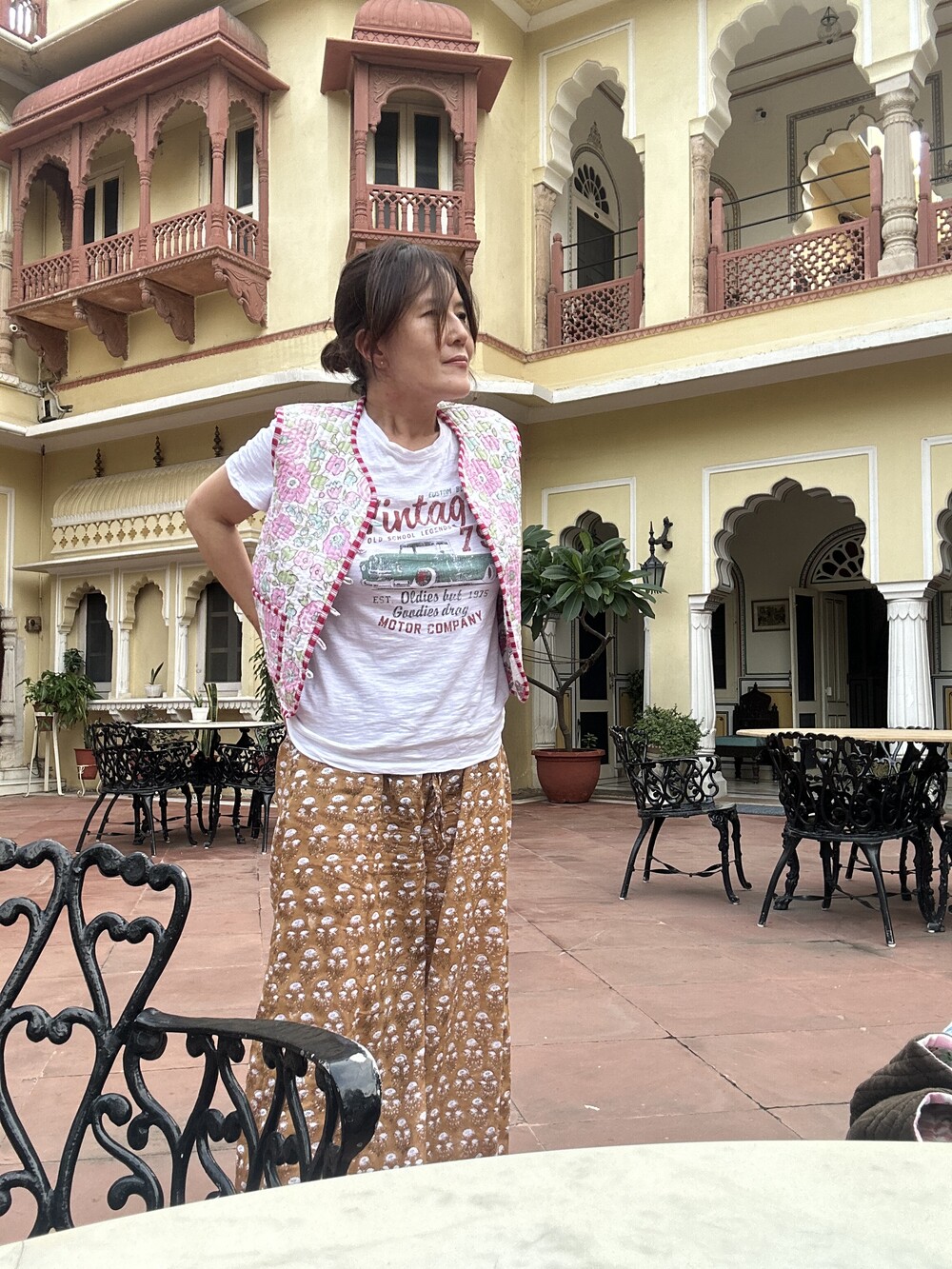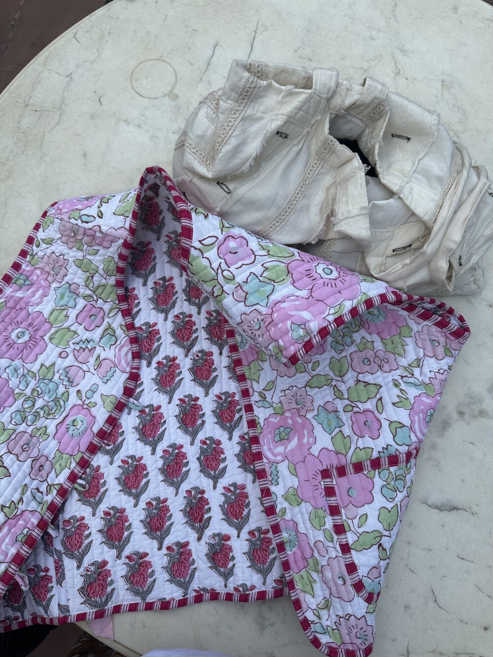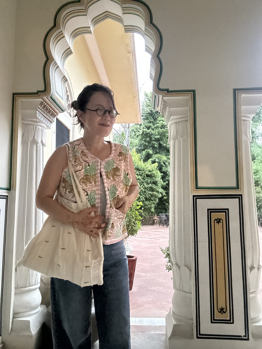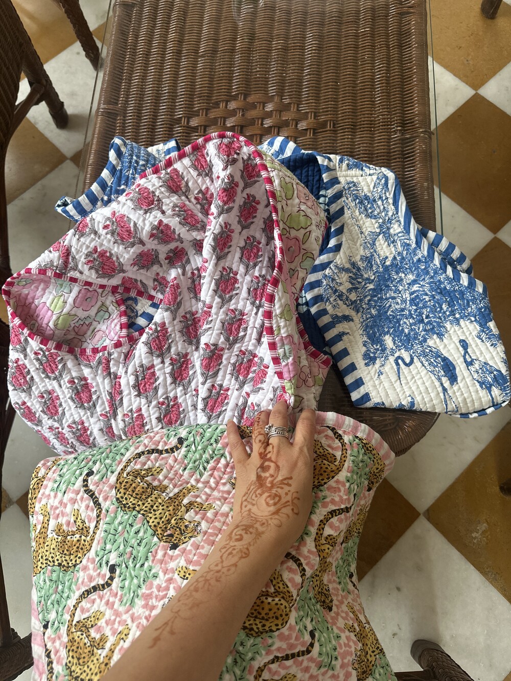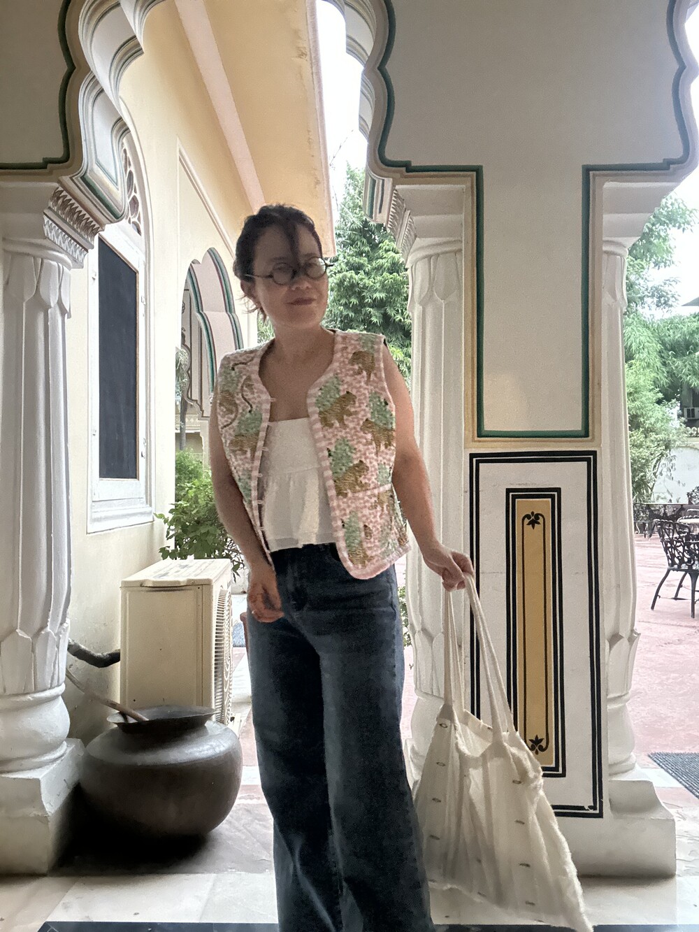 키치함을 몇스푼 넣어 만들어보았어요,누빔 퀼팅 조끼이고 약간의 솜을 패널로 만들어서 가볍게 디자인됬어요,그래도 따뜻해서 한여름빼고는 실내에서도 아주 좋은 아이템이에요,전 인도 에어컨속에서만 지내는게 힘들어서 에어컨실내와 장거리 차로 이동시 꼭 입어요,가슴둘레는 미듐단면 54.라지는 65에요.