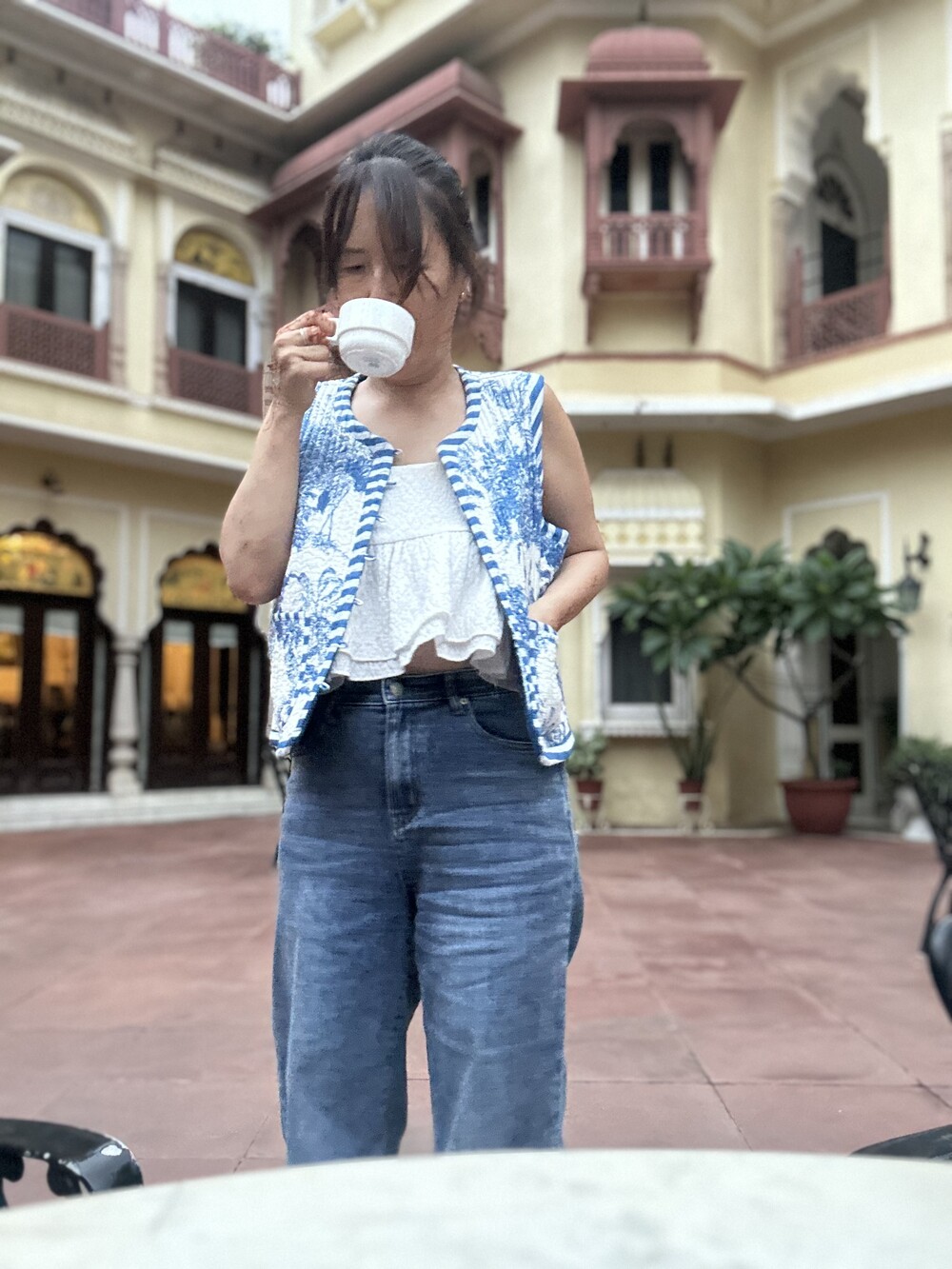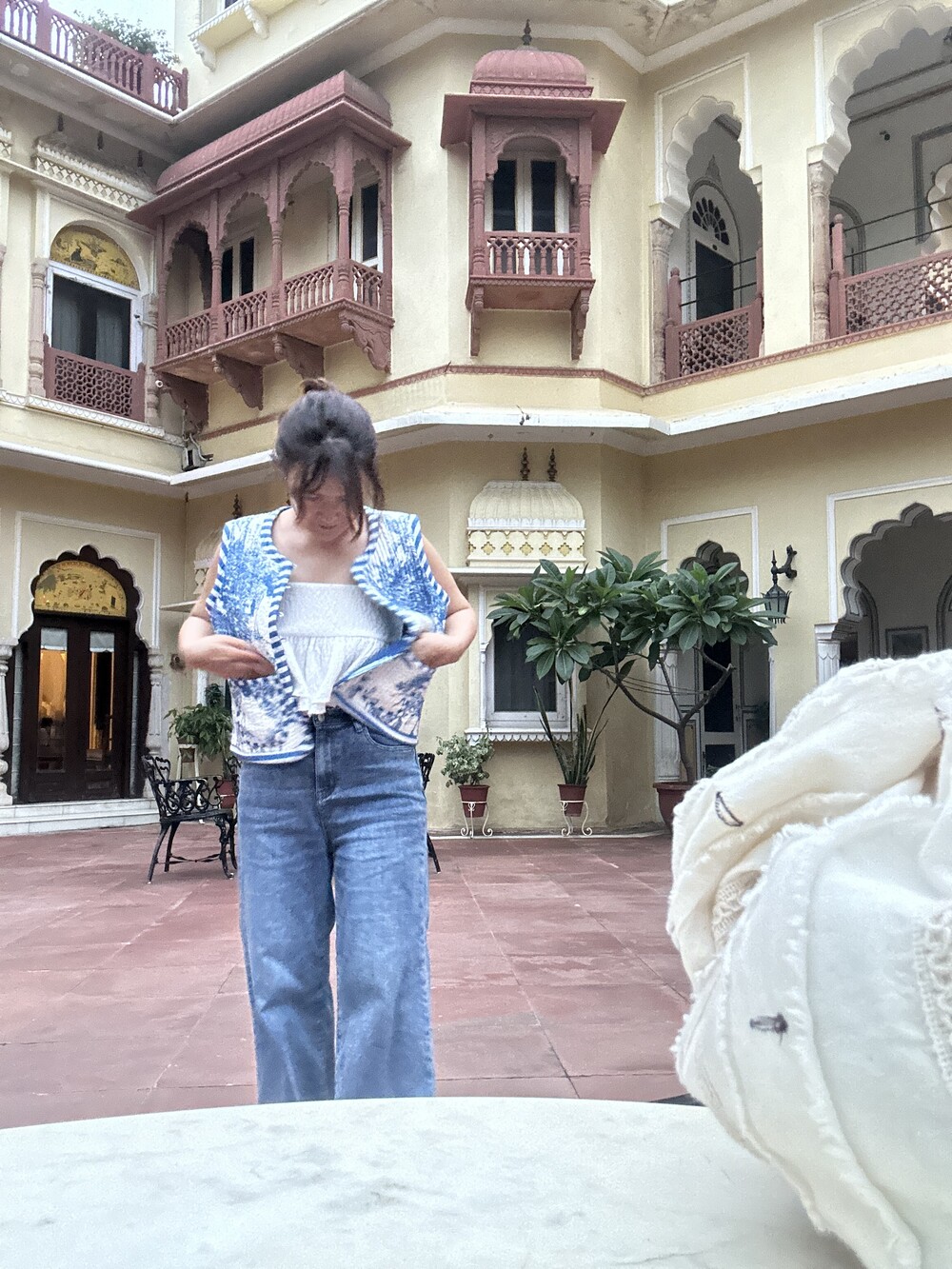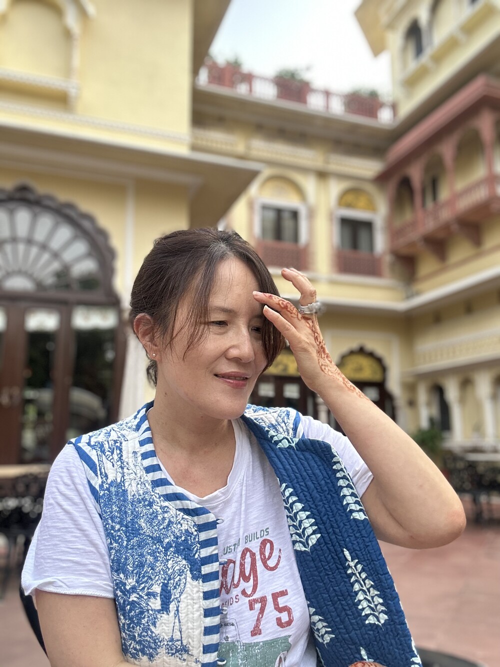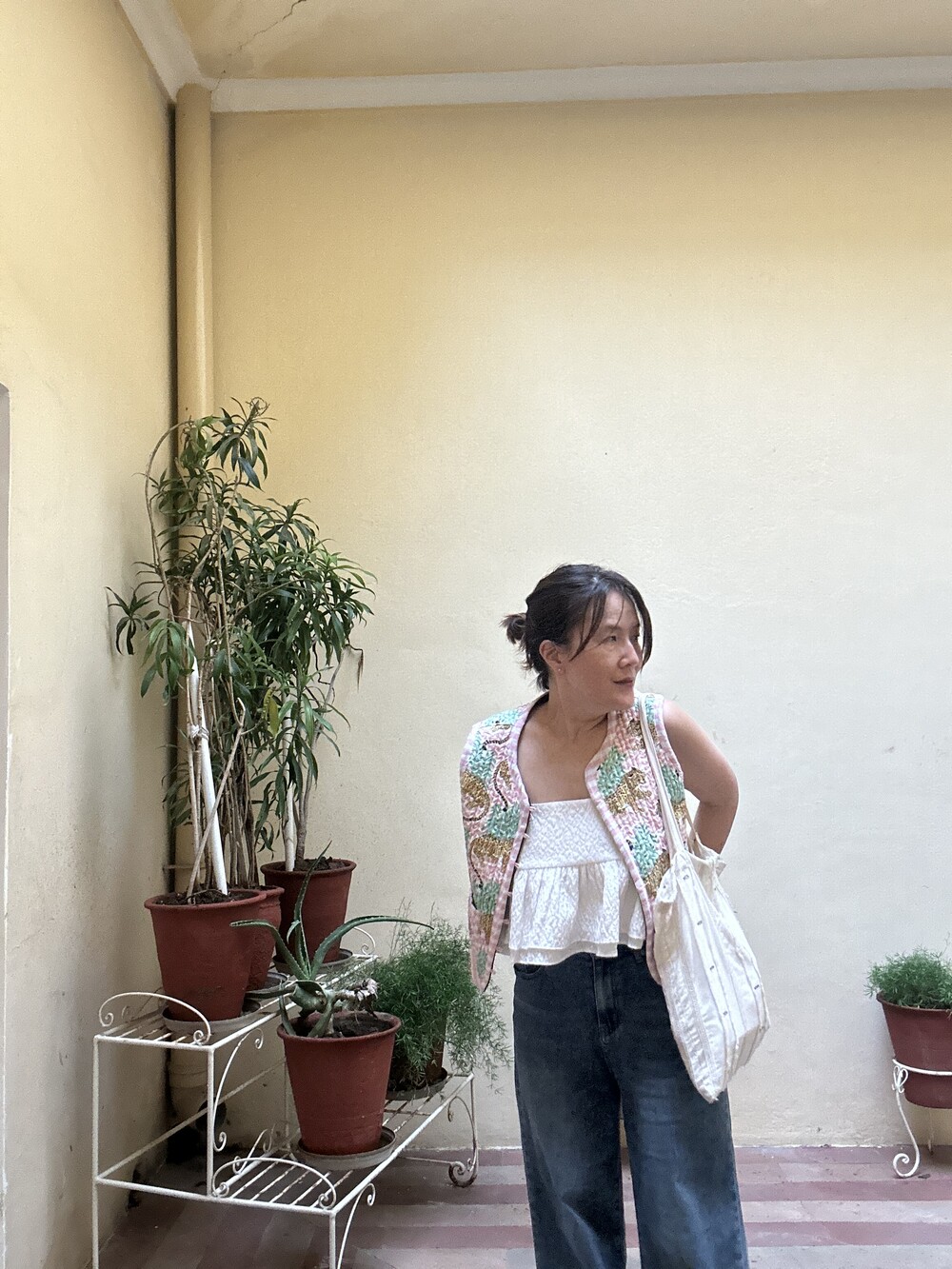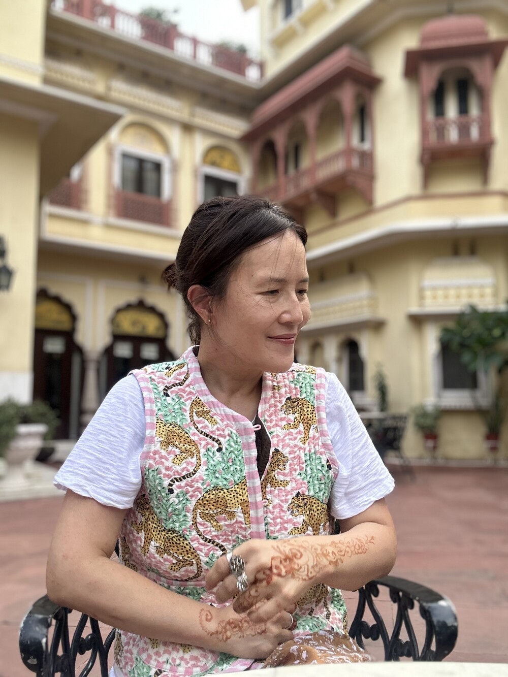 키치함을 몇스푼 넣어 만들어보았어요,누빔 퀼팅 조끼이고 약간의 솜을 패널로 만들어서 가볍게 디자인됬어요,그래도 따뜻해서 한여름빼고는 실내에서도 아주 좋은 아이템이에요,전 인도 에어컨속에서만 지내는게 힘들어서 에어컨실내와 장거리 차로 이동시 꼭 입어요,가슴둘레는 미듐단면 54.라지는 65에요.