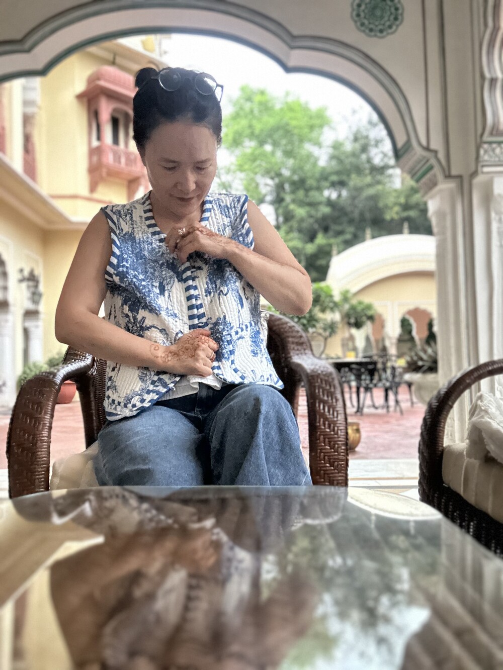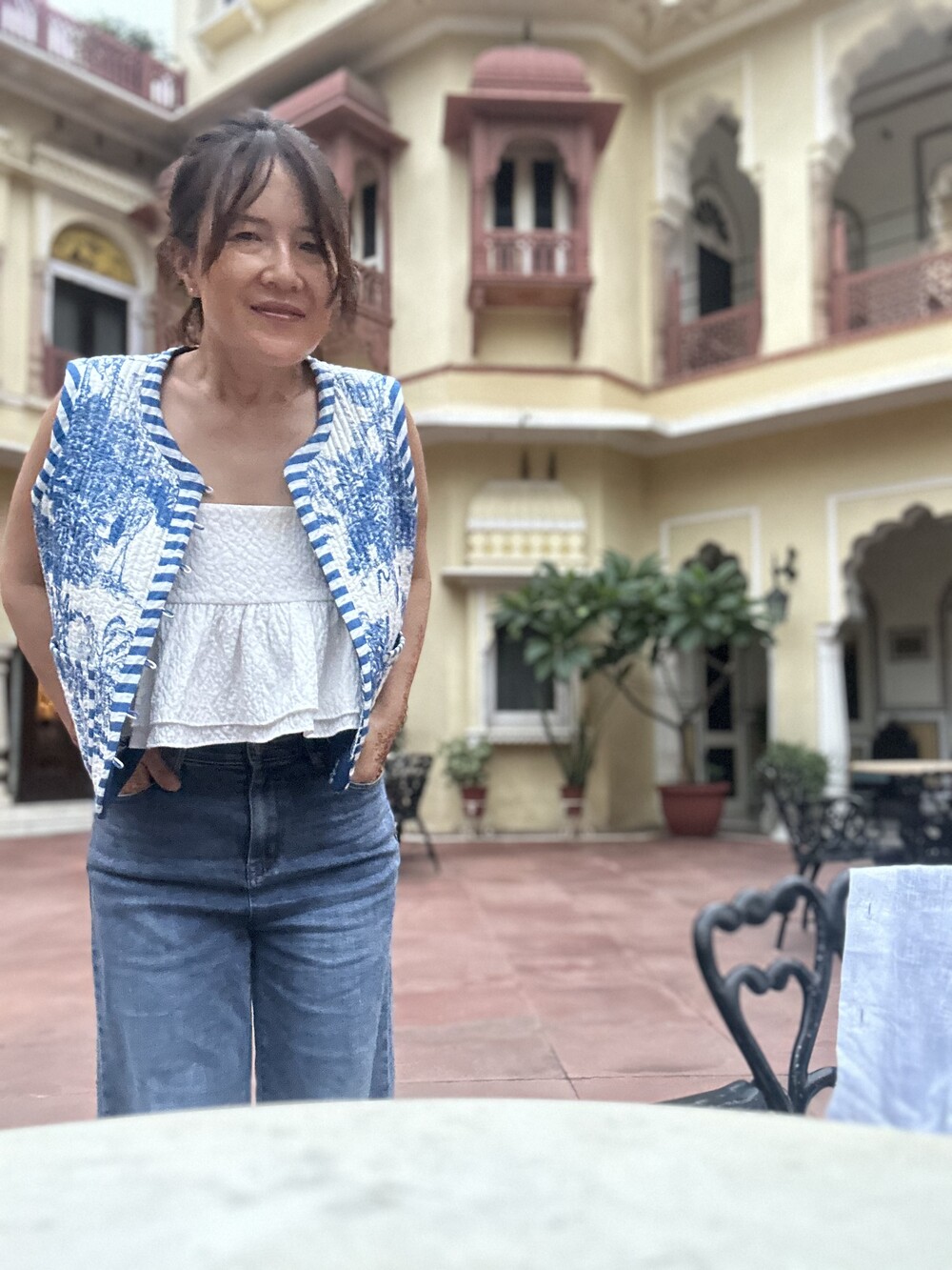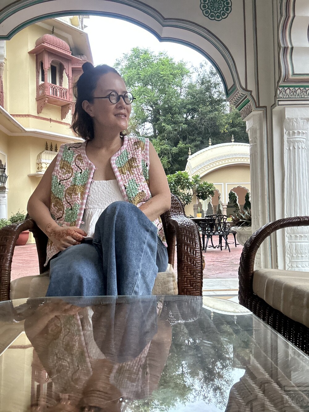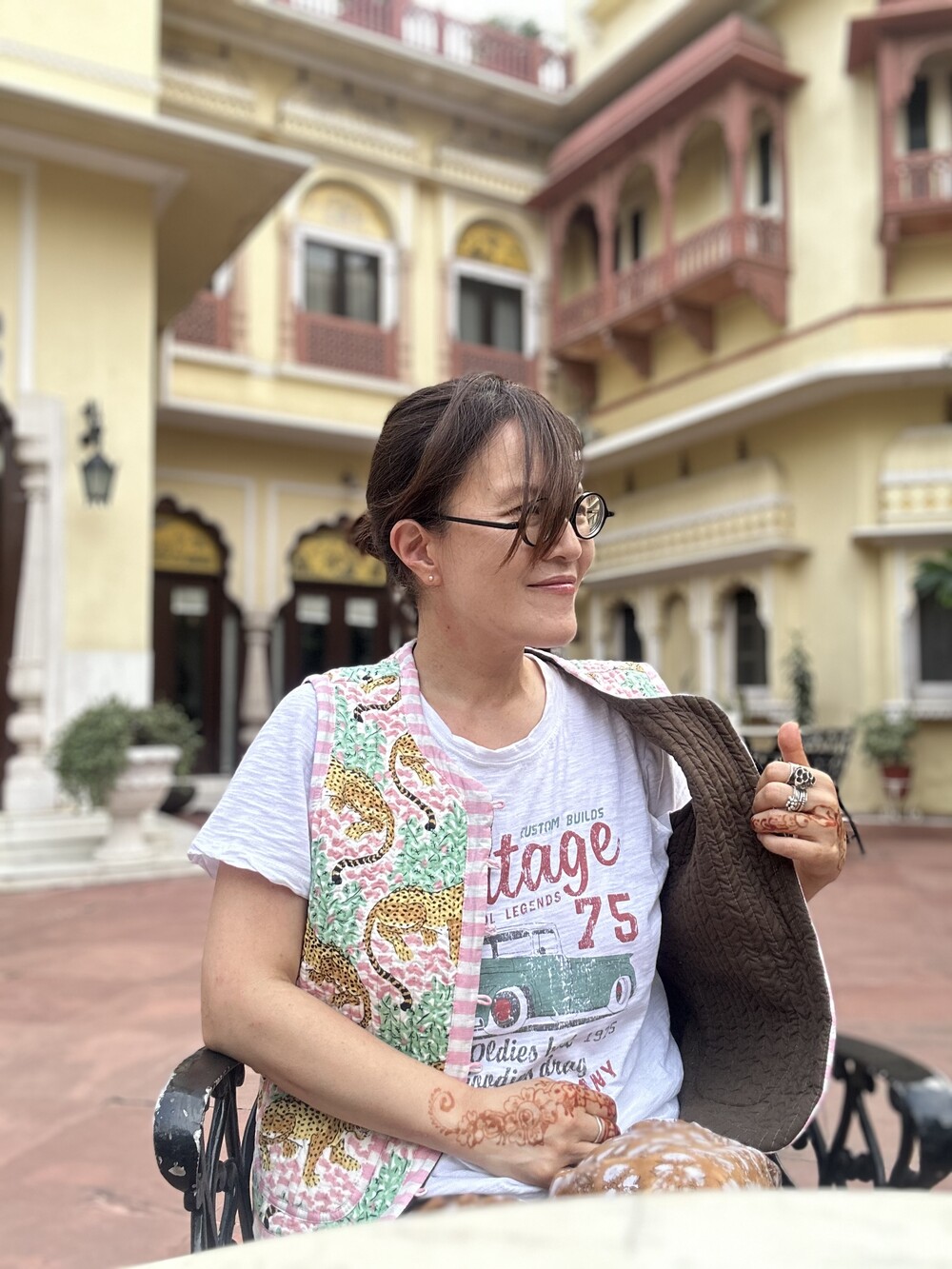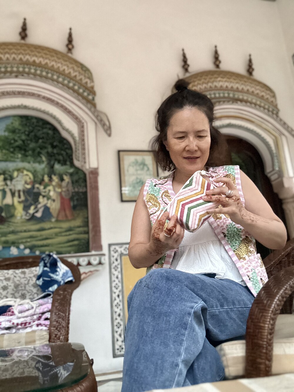 키치함을 몇스푼 넣어 만들어보았어요,누빔 퀼팅 조끼이고 약간의 솜을 패널로 만들어서 가볍게 디자인됬어요,그래도 따뜻해서 한여름빼고는 실내에서도 아주 좋은 아이템이에요,전 인도 에어컨속에서만 지내는게 힘들어서 에어컨실내와 장거리 차로 이동시 꼭 입어요,가슴둘레는 미듐단면 54.라지는 65에요.
