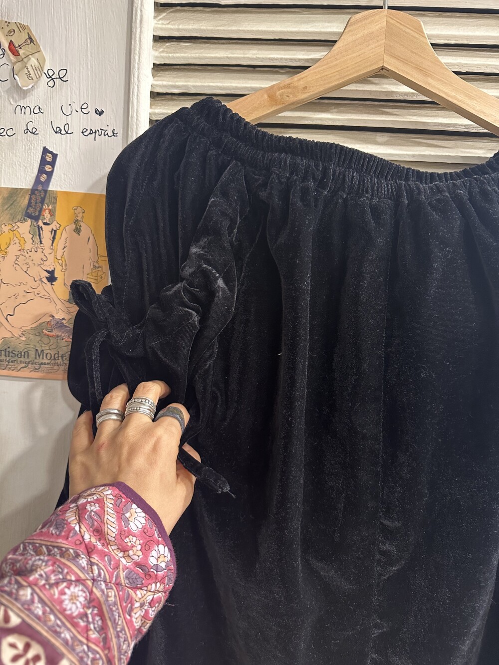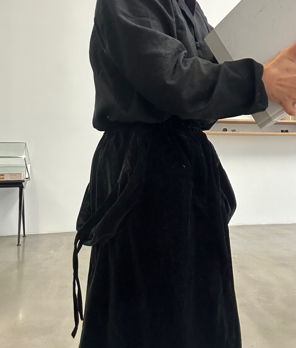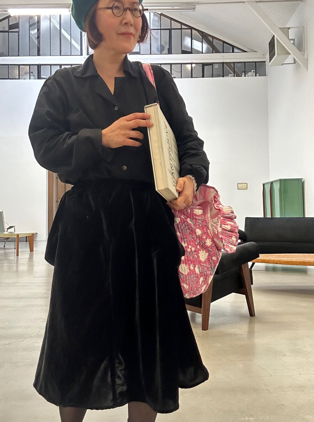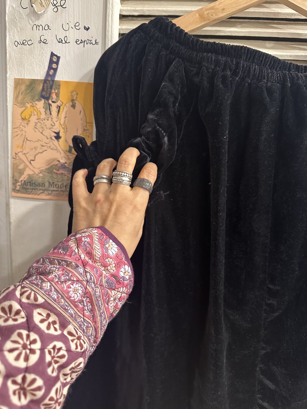 블랙 벨벳의 스커트에요 인도에서 이번주 출발되는 제품이고 조금기다려주셔야하니 할인가로 주문을 받아요.