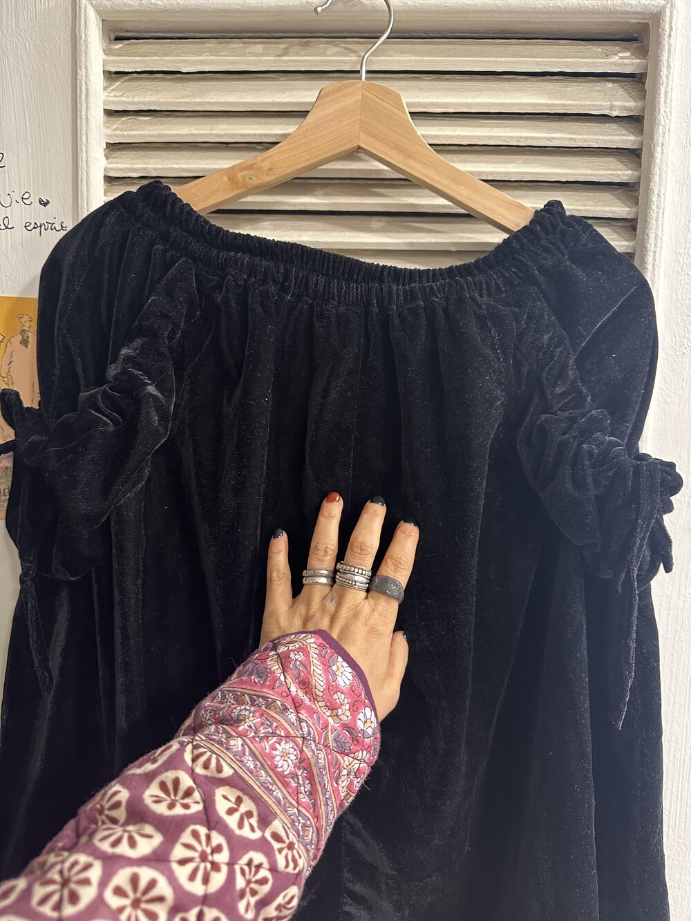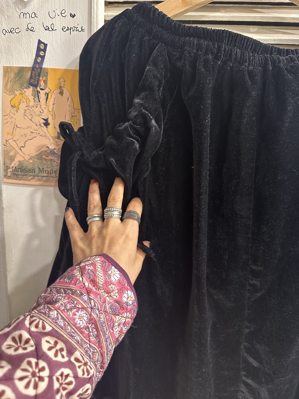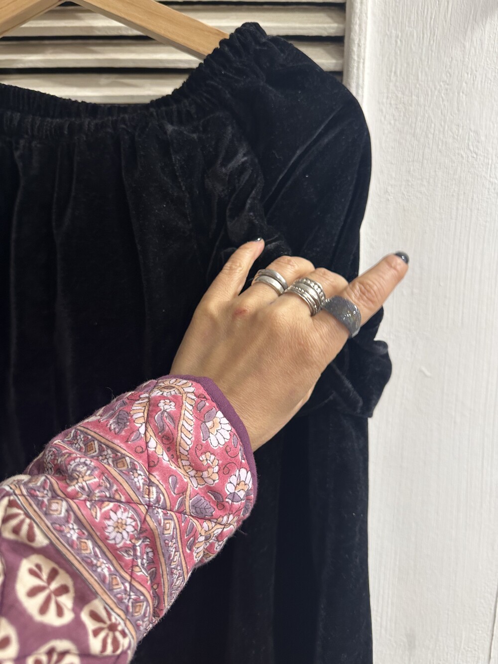 블랙 벨벳의 스커트에요 인도에서 이번주 출발되는 제품이고 조금기다려주셔야하니 할인가로 주문을 받아요.