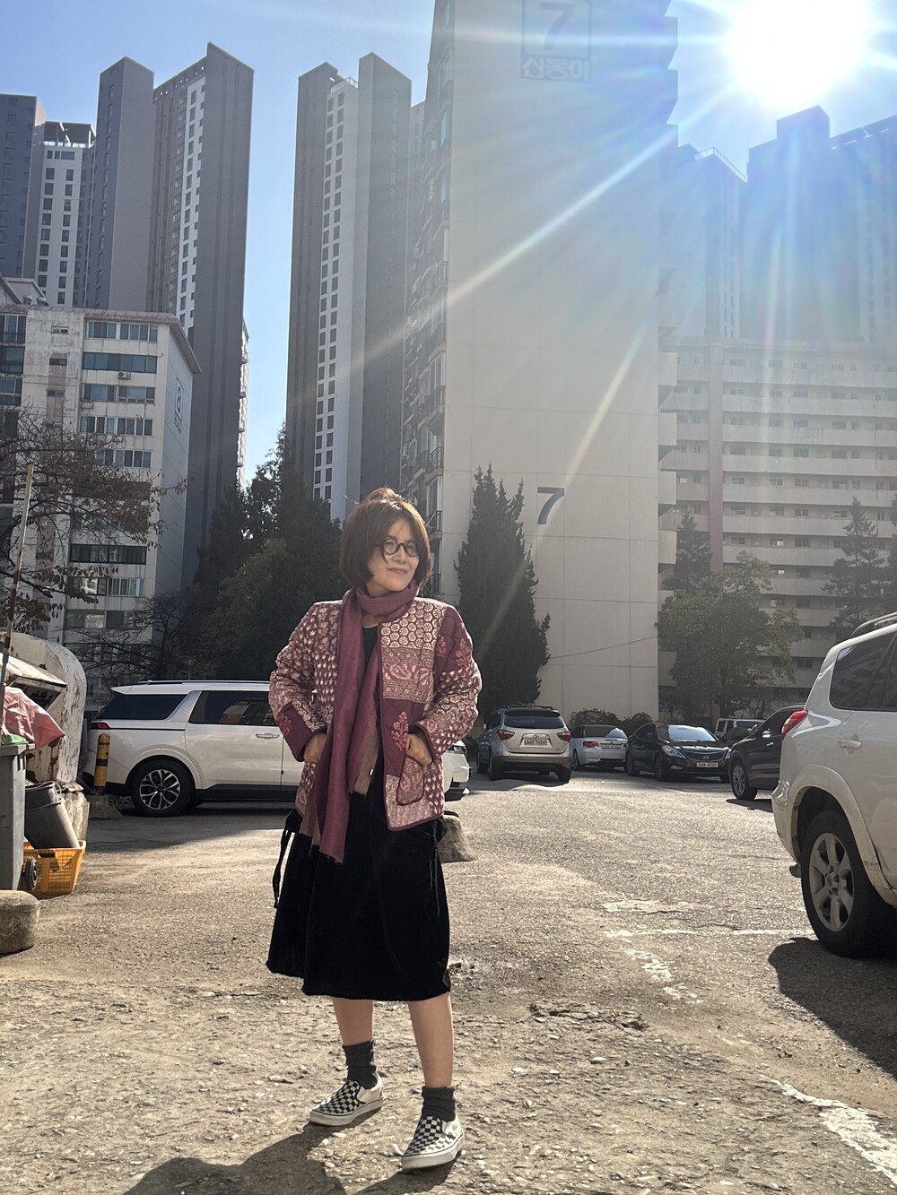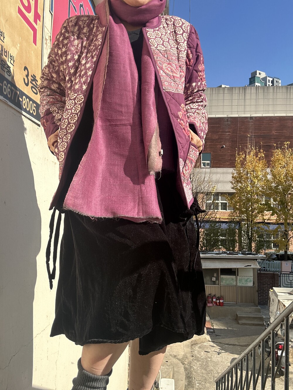 허리는 고무줄이고 주머니가 특이한 형태로 옆 라인을 잡아주는 디자인이이요요살짝 아방가르드 한가싶지만 또 기본적인 그런디자인이에요요겨울이 아무리 춥고 껴입는다해도 이렇게 또 스커트를 검은 스타킹과 신고싶을때가 있잖아요요기장은 60과65