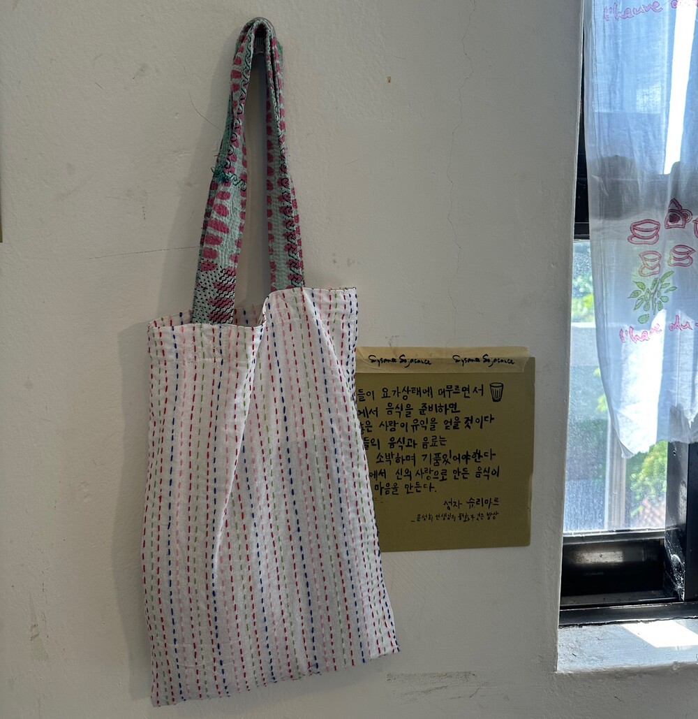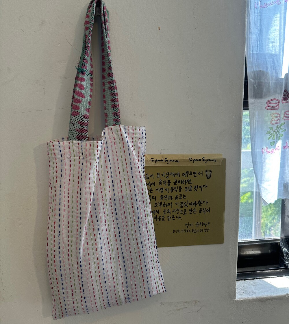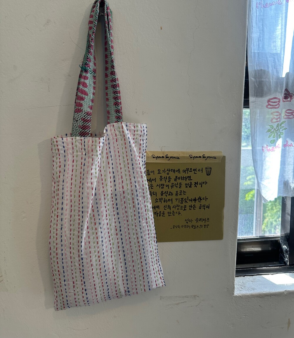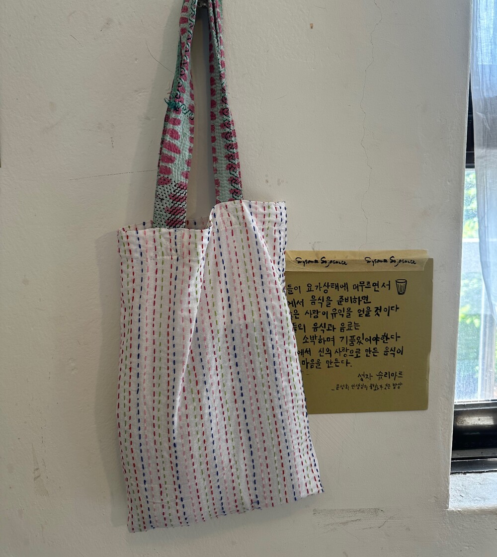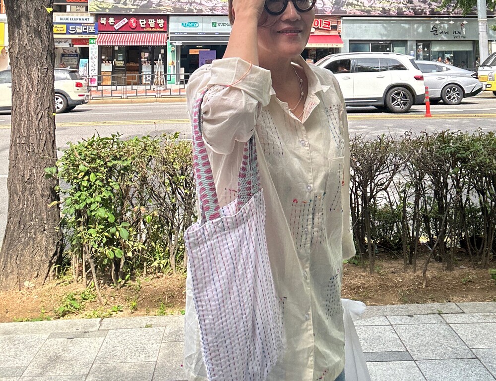바로 발송되며 모두 면 제품에 손스티치와 손잡이부분은 칸타소재에요.