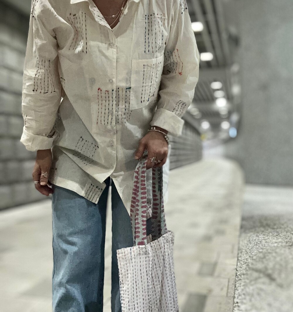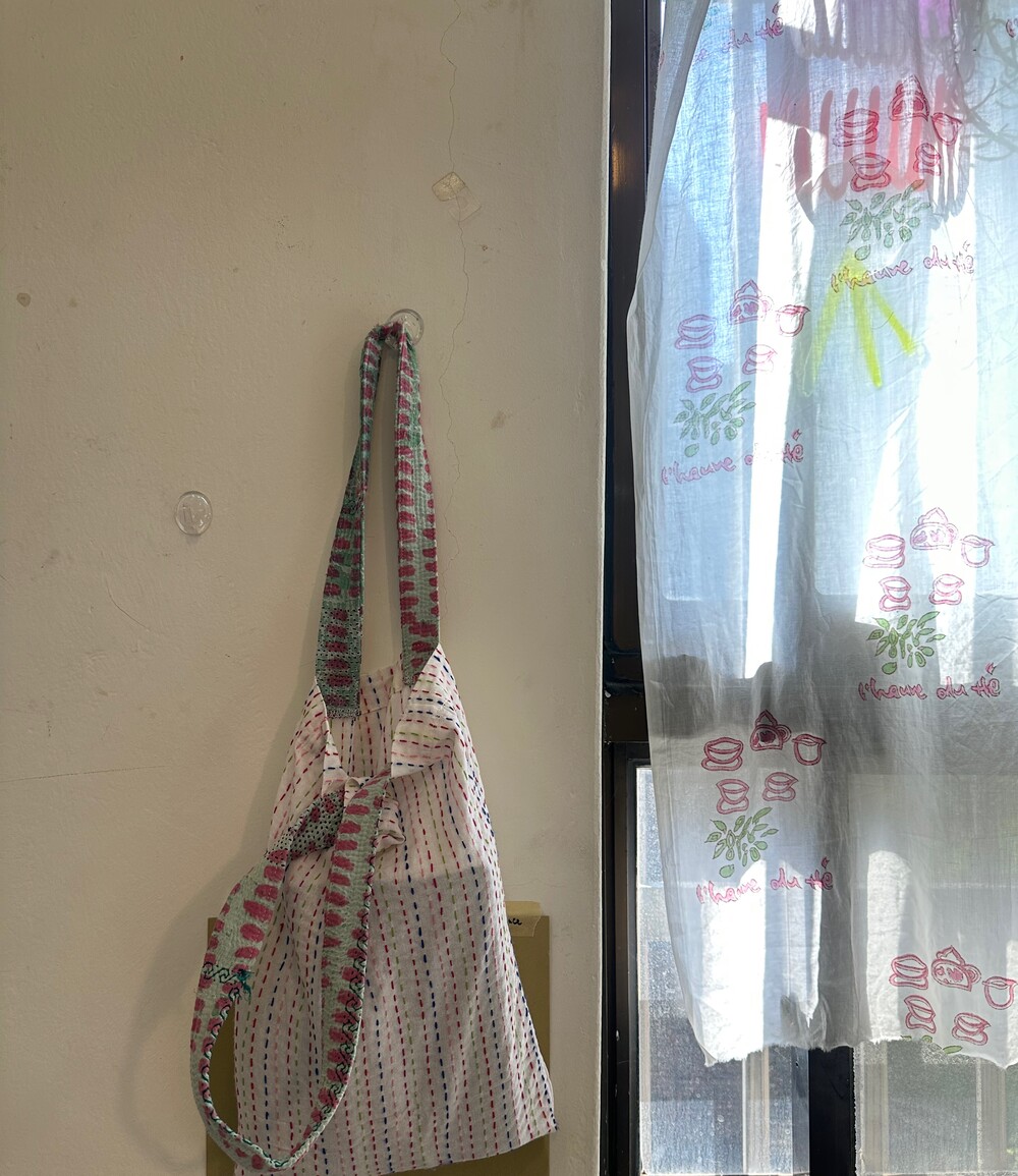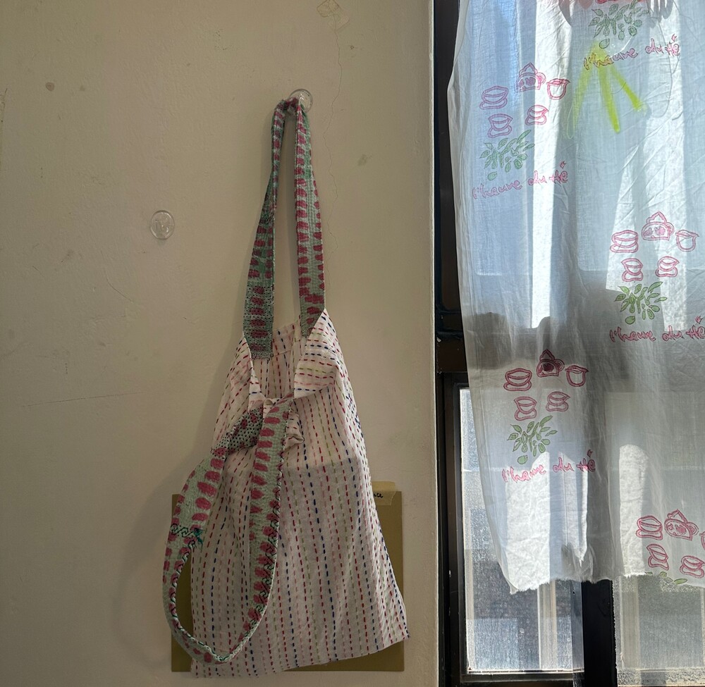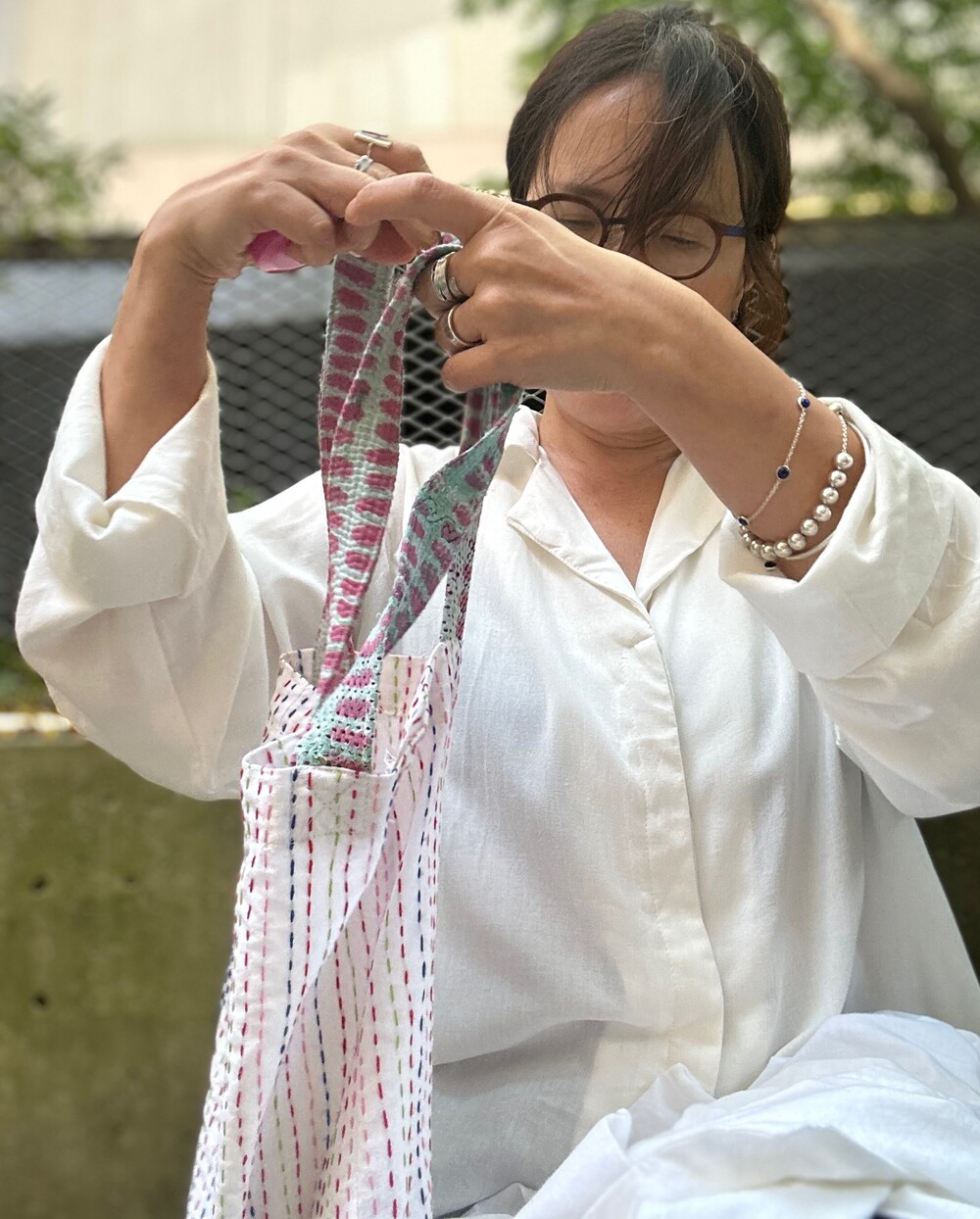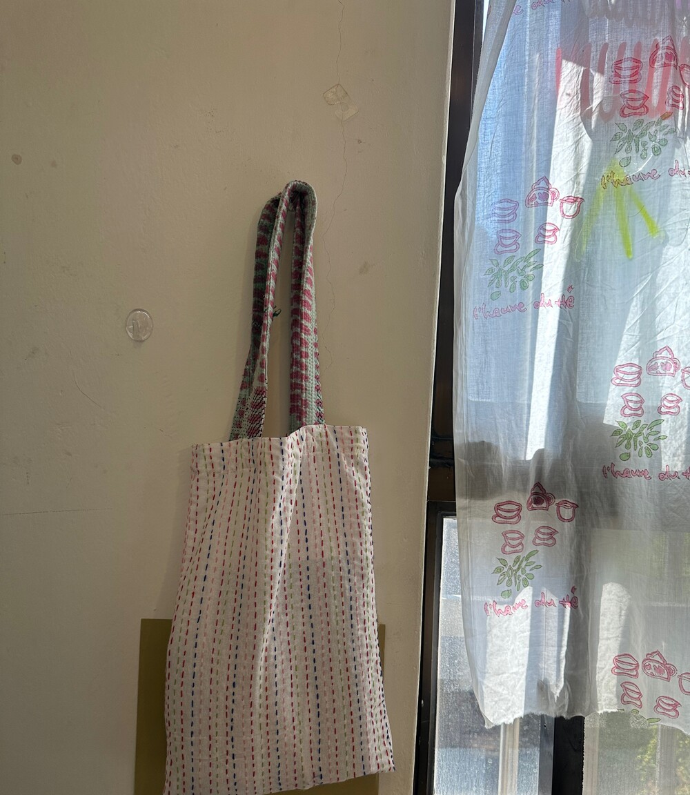 바로 발송되며 모두 면 제품에 손스티치와 손잡이부분은 칸타소재에요.