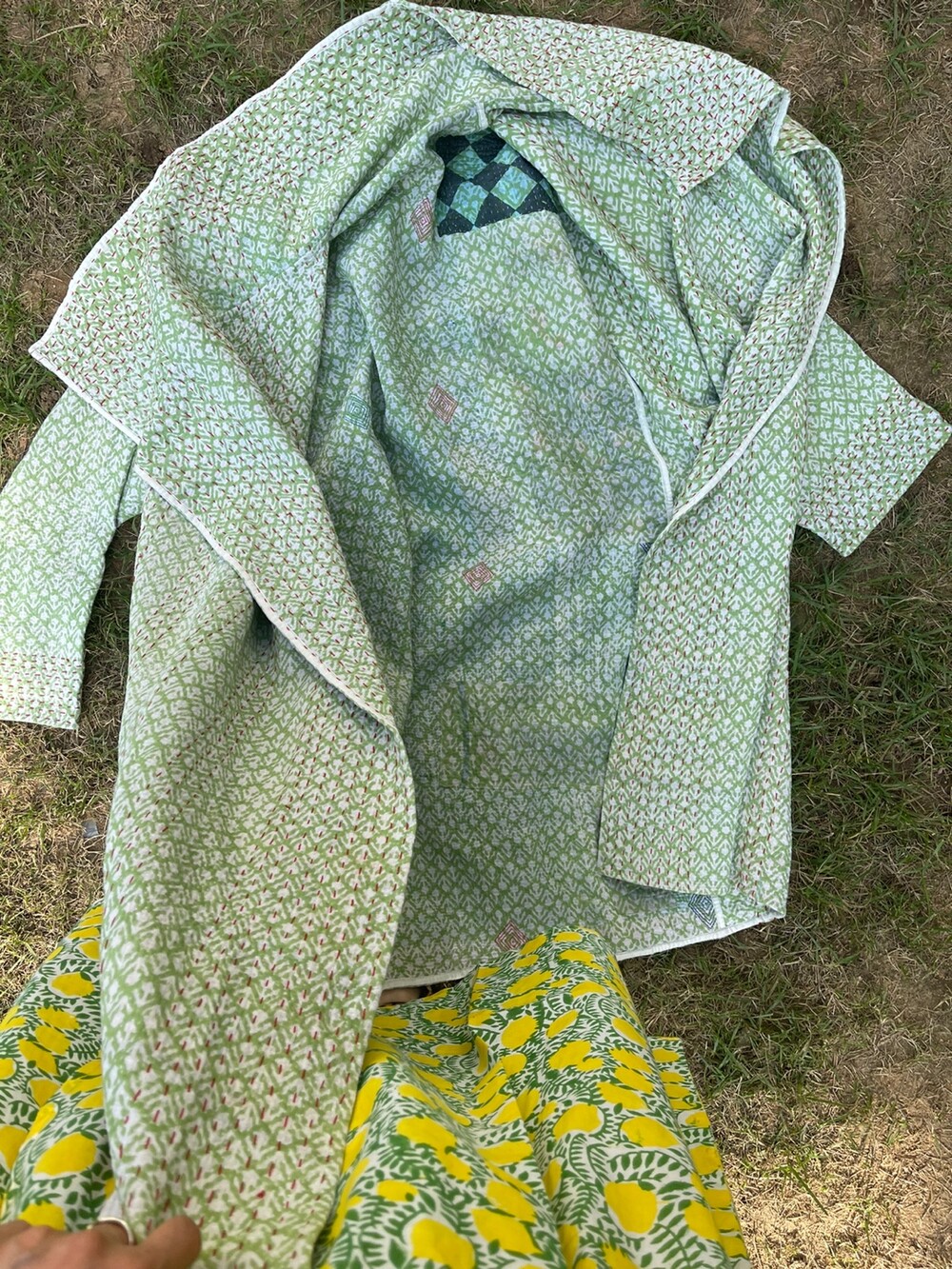제가 그린 그림으로 칸타위에 프린팅한 스타일리쉬한 디자인의 코트에요 후뚜루 마뚜루 막 입으시기 좋은 그런 디자인이고 한정수량 판매되며 바로발송가능합니다.