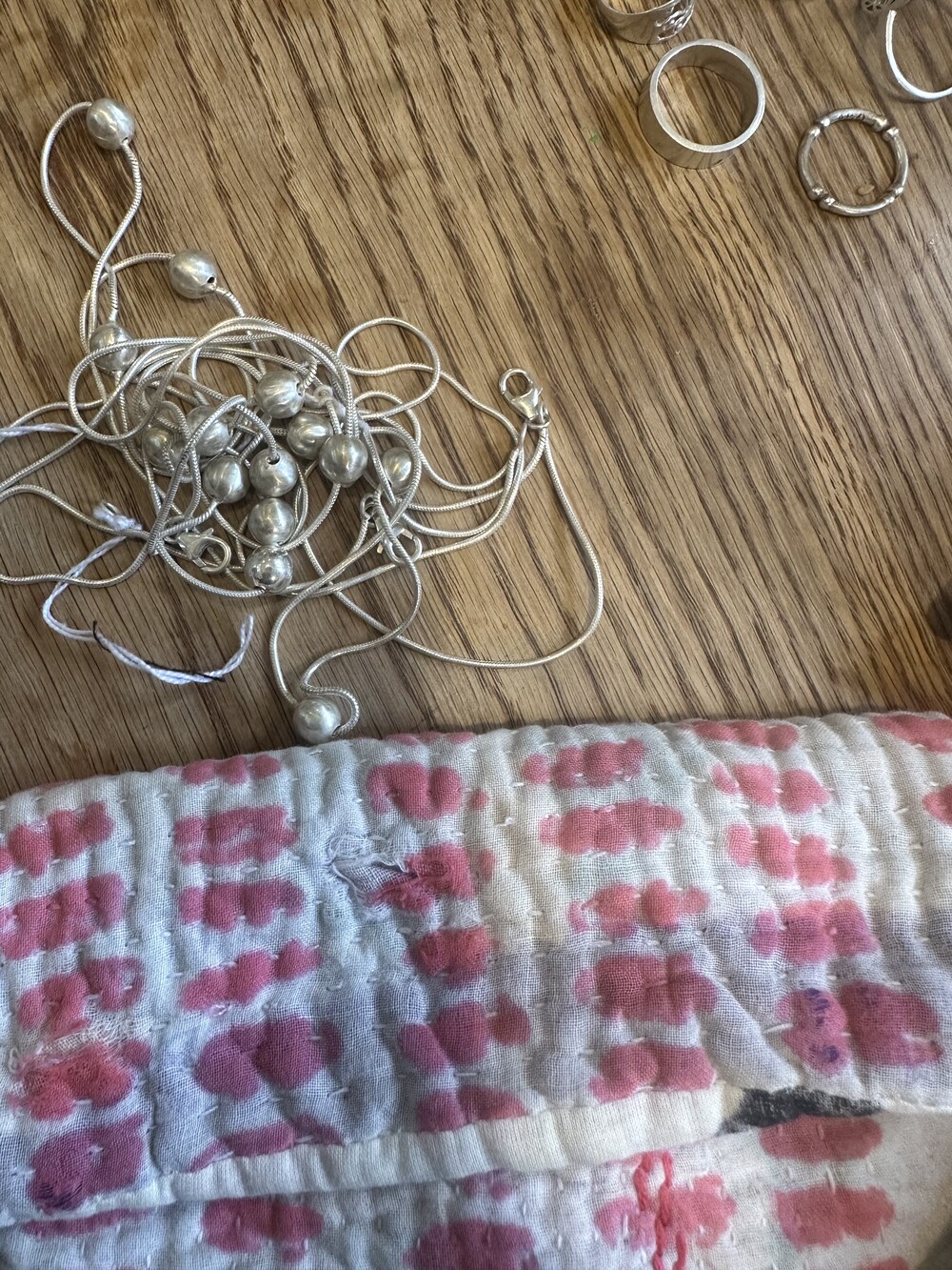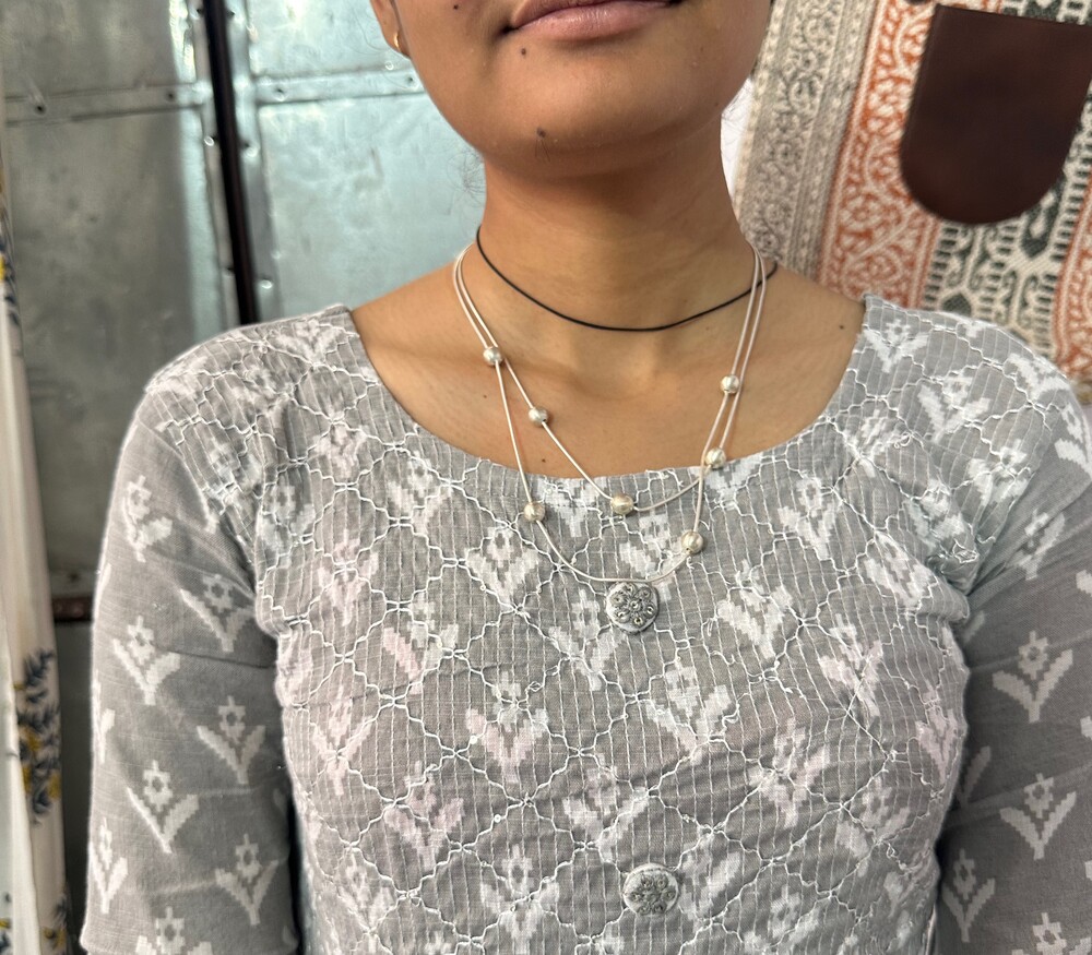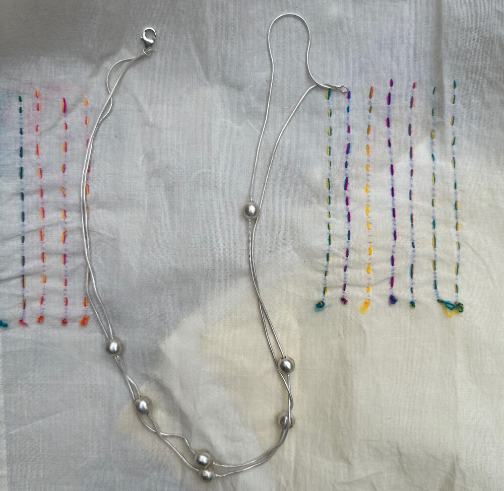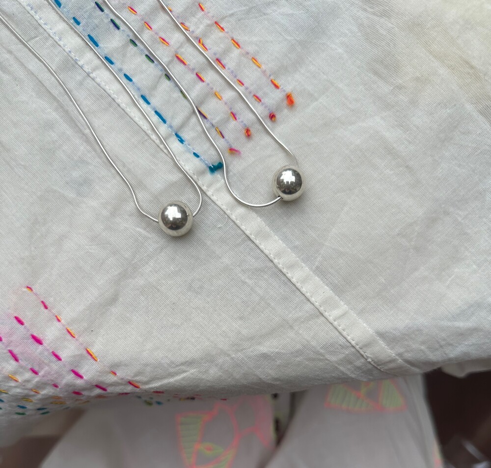 this neckless 10 gm silver 92.5 with 5 small ball size in 88mm and chain size in 48cm.