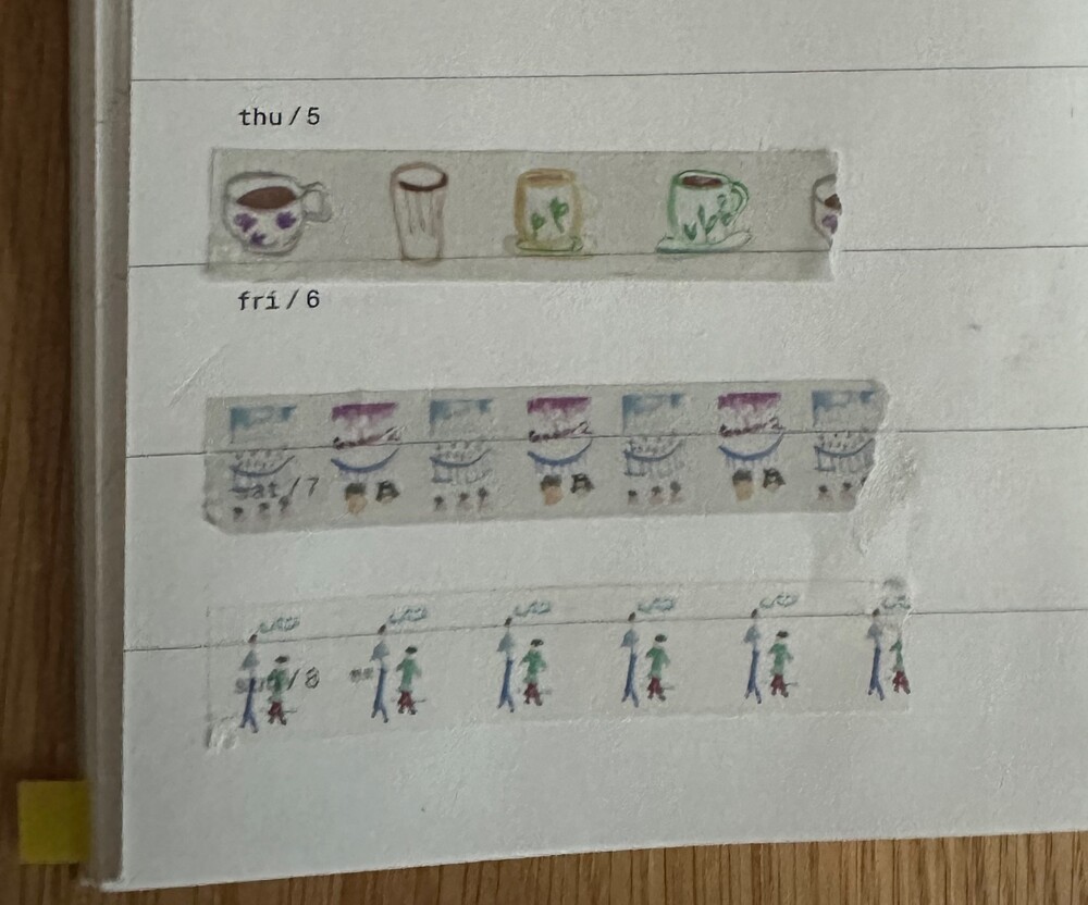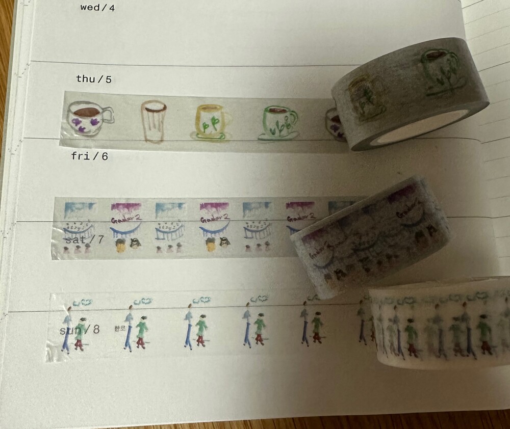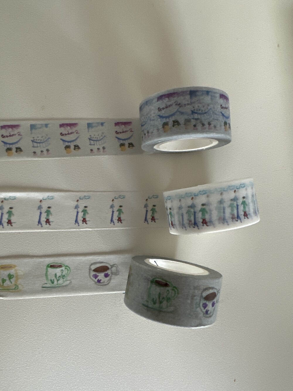이십미리 폭의 마스킹테이프에요 저의 그림으로 만들어진 마스킹태이프이고 바로 발송가능합니다!!!!