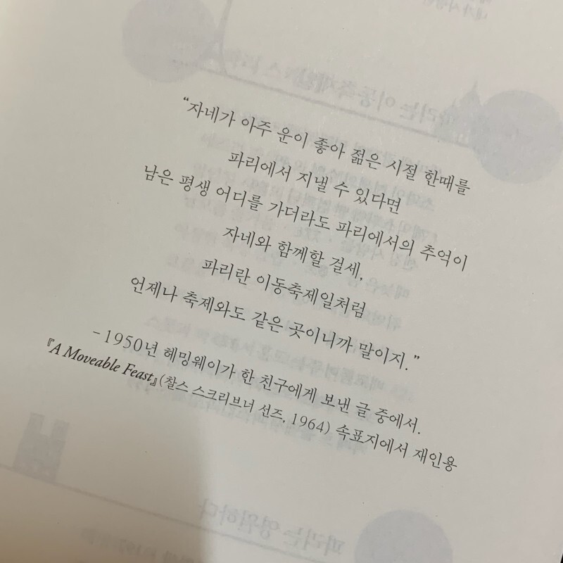 헤밍 웨이 내가 사랑한 파리 이 책을 읽으면서 첫번째 부인을 가장 사랑하긴했구나,그 부인과 함께했던 파리,여러 예술가와 어울렸던 파리를 가장 사랑했구나,여느 작가가 그렇듯 젊을땐 끼니를 굶을 만큼 가난했고 원고가 든 가방을 통째로 잃어버렸다가 수십년만에 찾아 이 책을 쓰기 사작했구나 헤밍웨이 잘 생겼구나 ㅎㅎㅎㅎㅎ