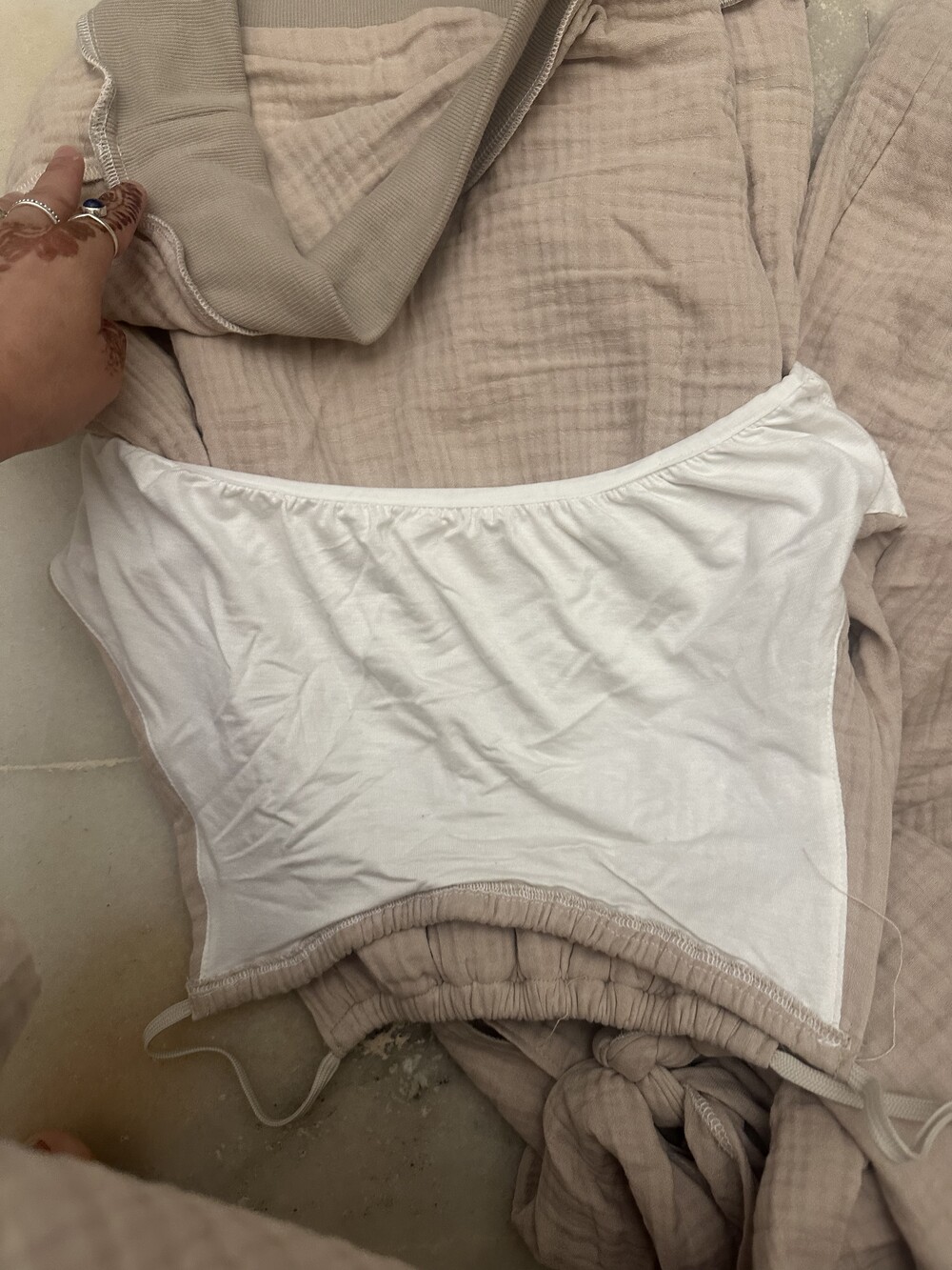 하루만에 변심도 안되요,신중구매해주세요,제작에 혼란을 줍니다.9월첫주 받으실거고 제가 오랜시간 운동하며 달려도보고 탭댄스도 춰보고 준비한 거즈 소재 옷이에요.끈 까슬림없어요.