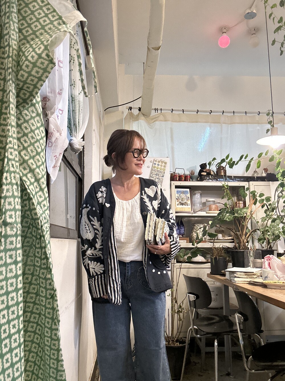 여기에 저희 노무늬 가디건 입으셔도 좋아요