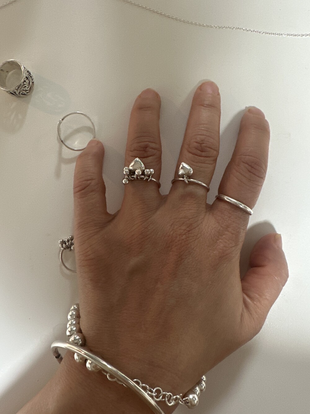 하트와 네모에요요우선 92.5퍼센트의 인디언실버이고 일월에 받으세요❤️요즘 한국은 실버가 동나서 가격도 엄청 올랐어요,아직 인도는 그 정도가 아니라서 요 가격에 진행되요.모두 수작업진행이며 오더메이드로 주문되니 단순변심 교환 환불 힘들어요.반지는 배송메모에 사이즈(cm 또는 호수기재)