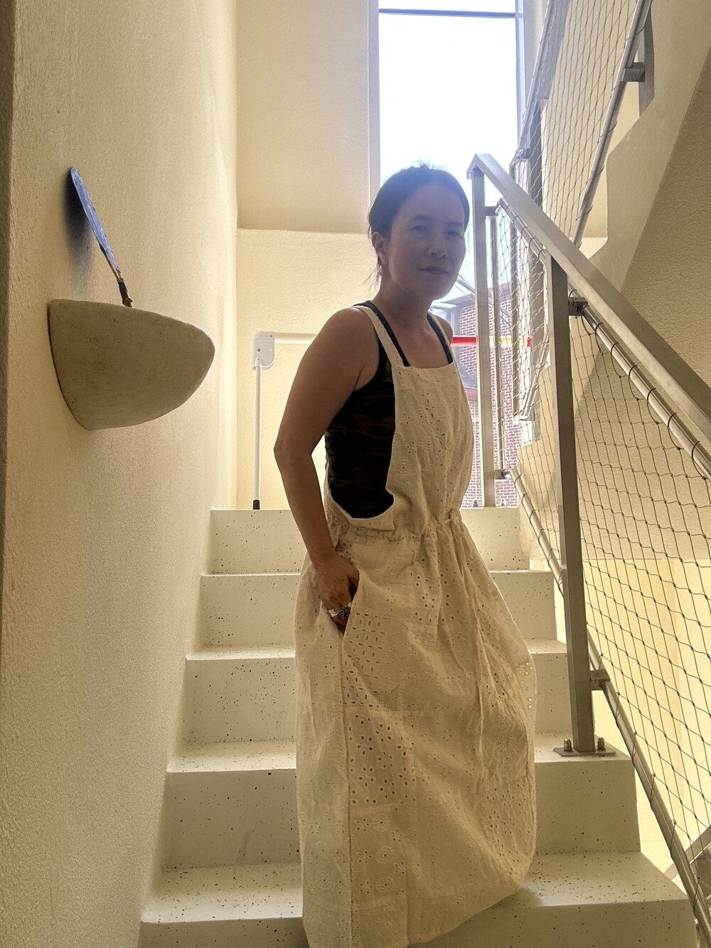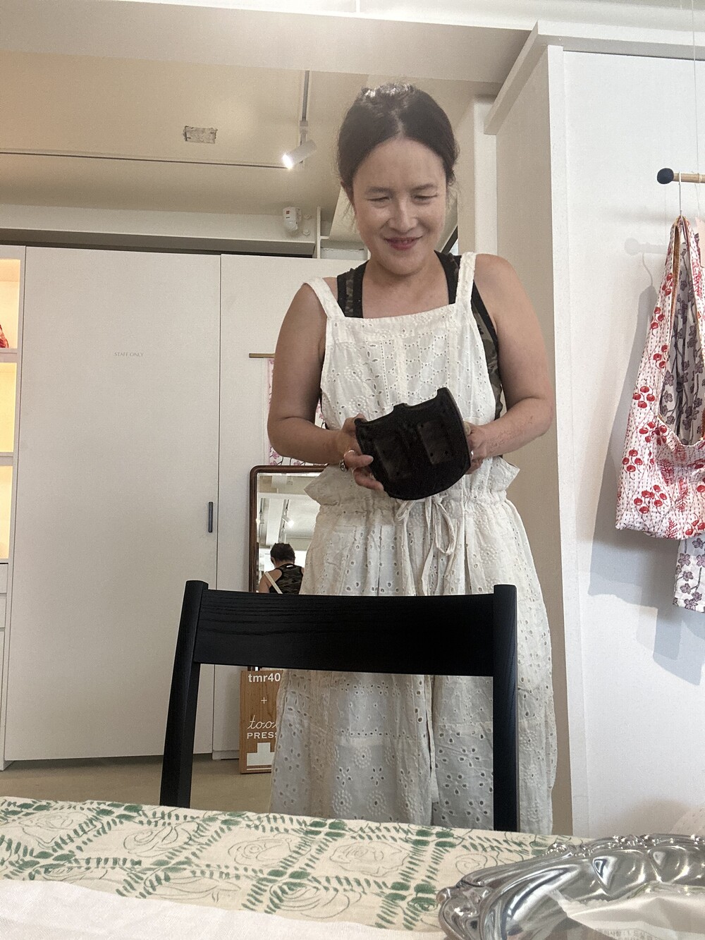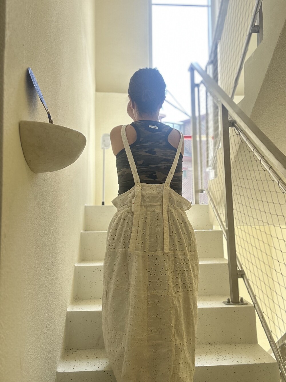 아일렛 패치 점프 스커트에요. 기장은 130정도이고 안감이 덧대어진 제품으로 가을 겨울에도 입으실수있게 제작되었어요. 프리사이즈로 넉넉하게 제작되었어요,뒷 모습도 정말 아름다운제품이에요.