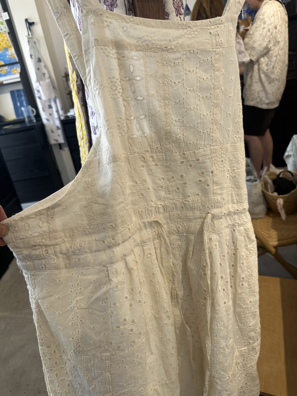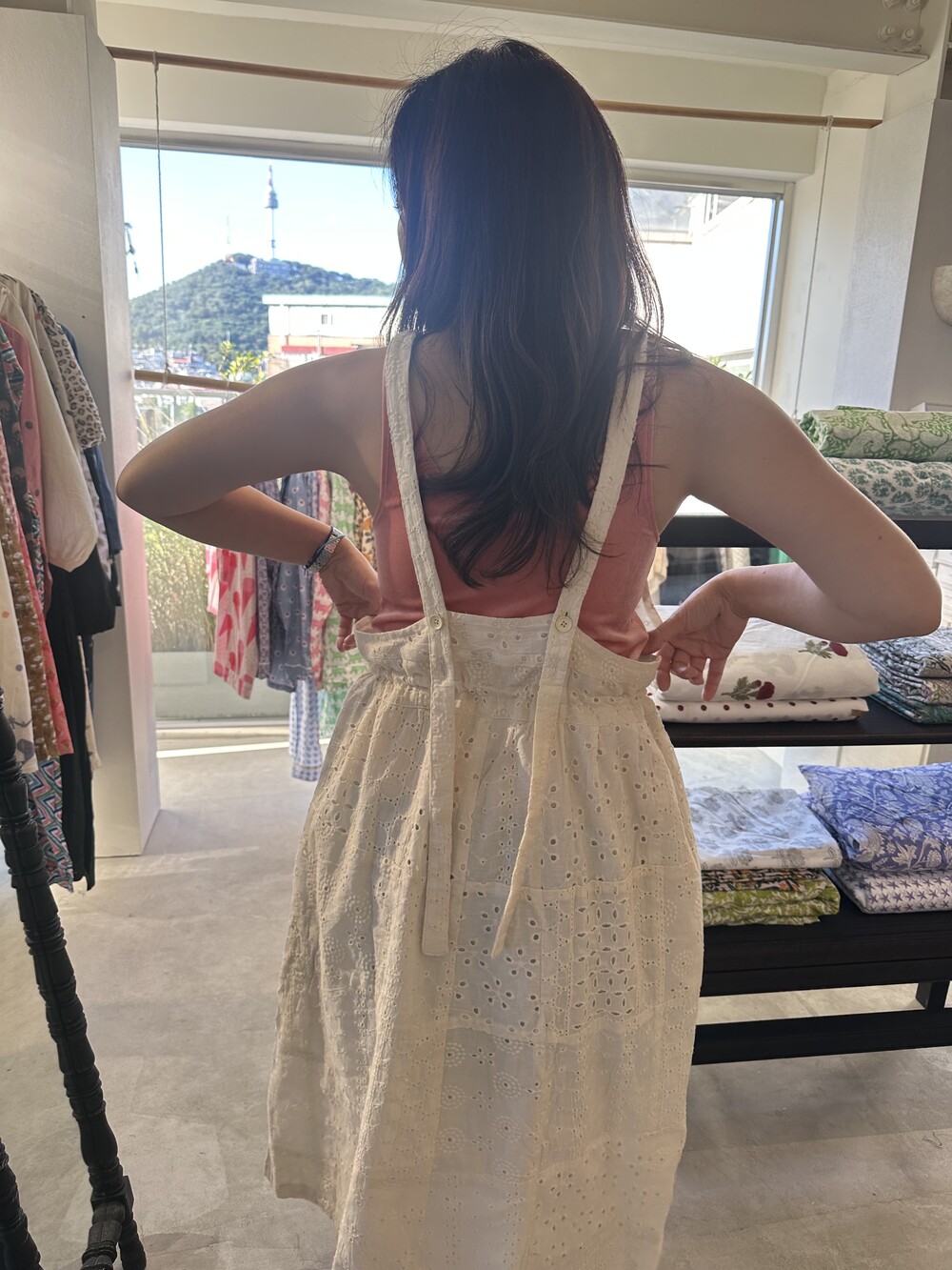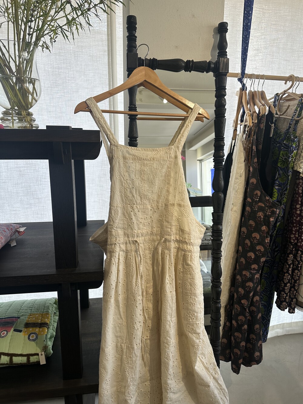 아일렛 면드레스에요. 하나 남아서 바로 발송드릴께요.지금도 티셔츠에 그리고 청바지 위에 툭 걸쳐주심되요.