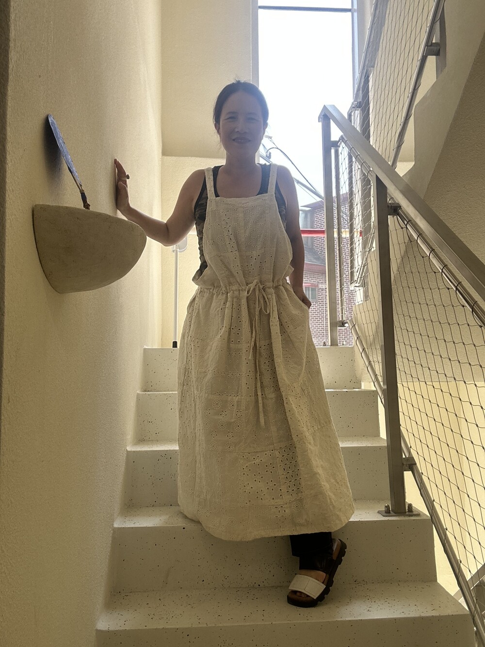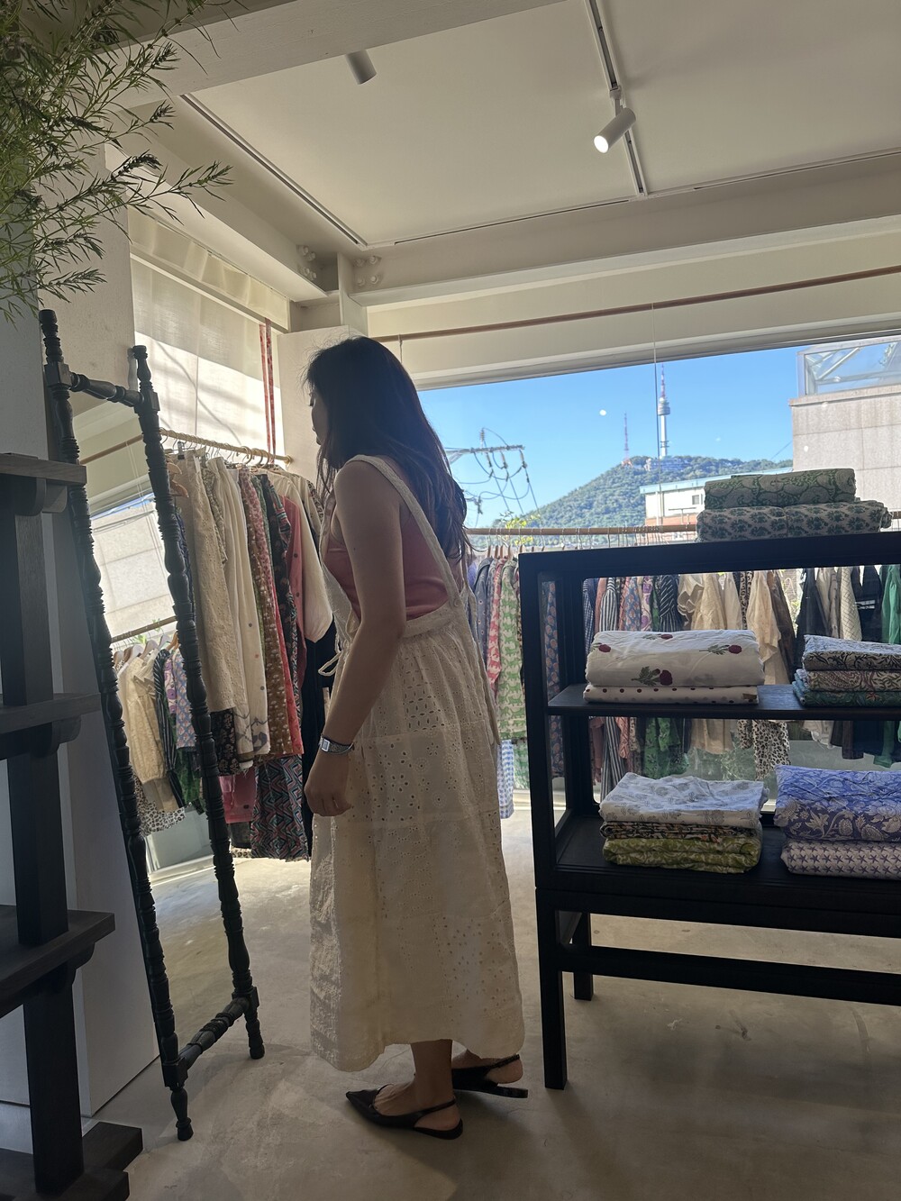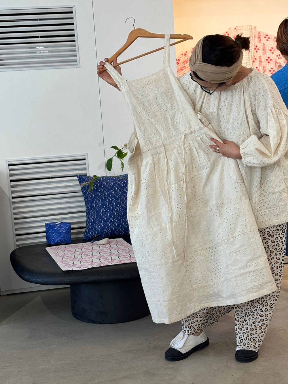 아일렛 면드레스에요. 하나 남아서 바로 발송드릴께요.지금도 티셔츠에 그리고 청바지 위에 툭 걸쳐주심되요.