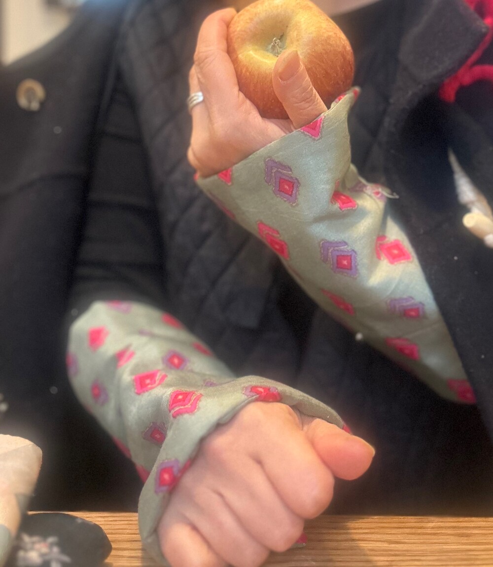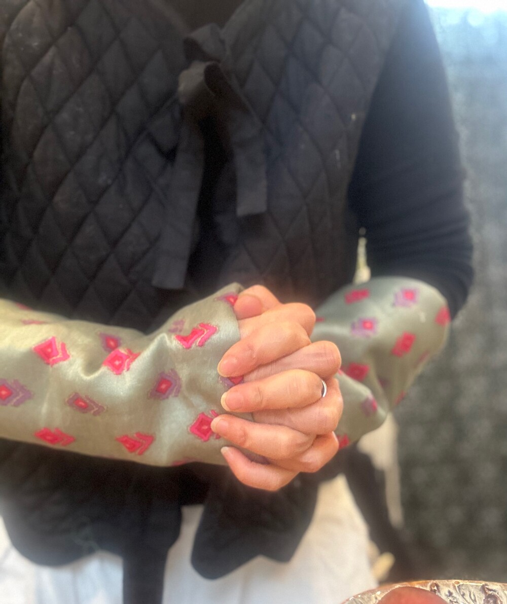 13*22기장의 실크토시에요❤️코트 밖으로 포인트로 나와도 아름답고 그냥 운전할때 이거하고 조끼하나입어도 목화솜으로 지어서 너무 따뜻하답니다.주문제작으로 삼일소요됩니댜. 너무 아름다워요❤️착용감도 정말 좋아요.