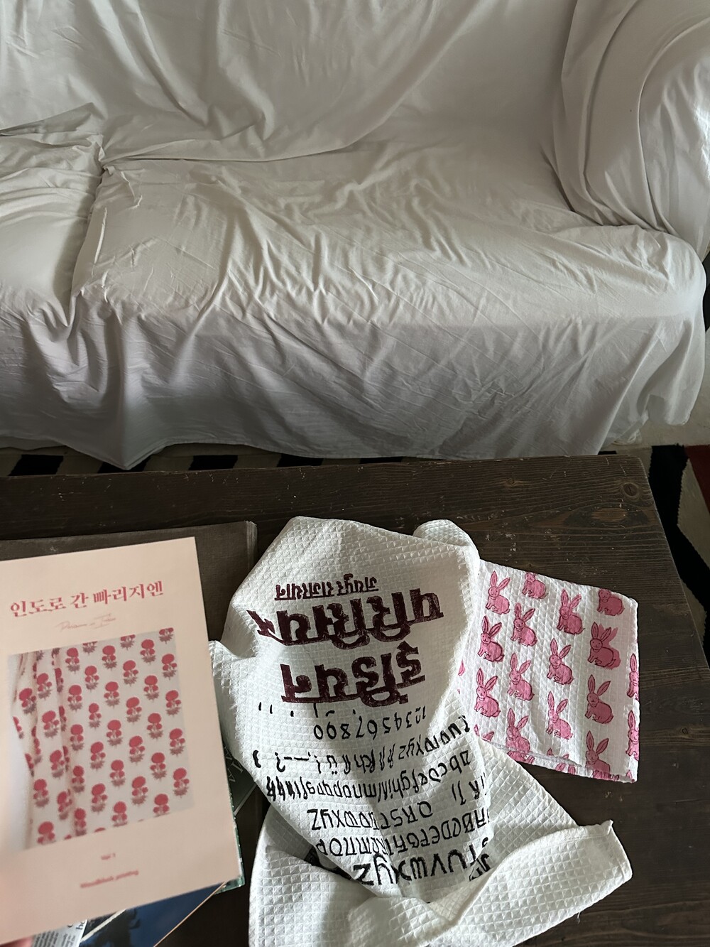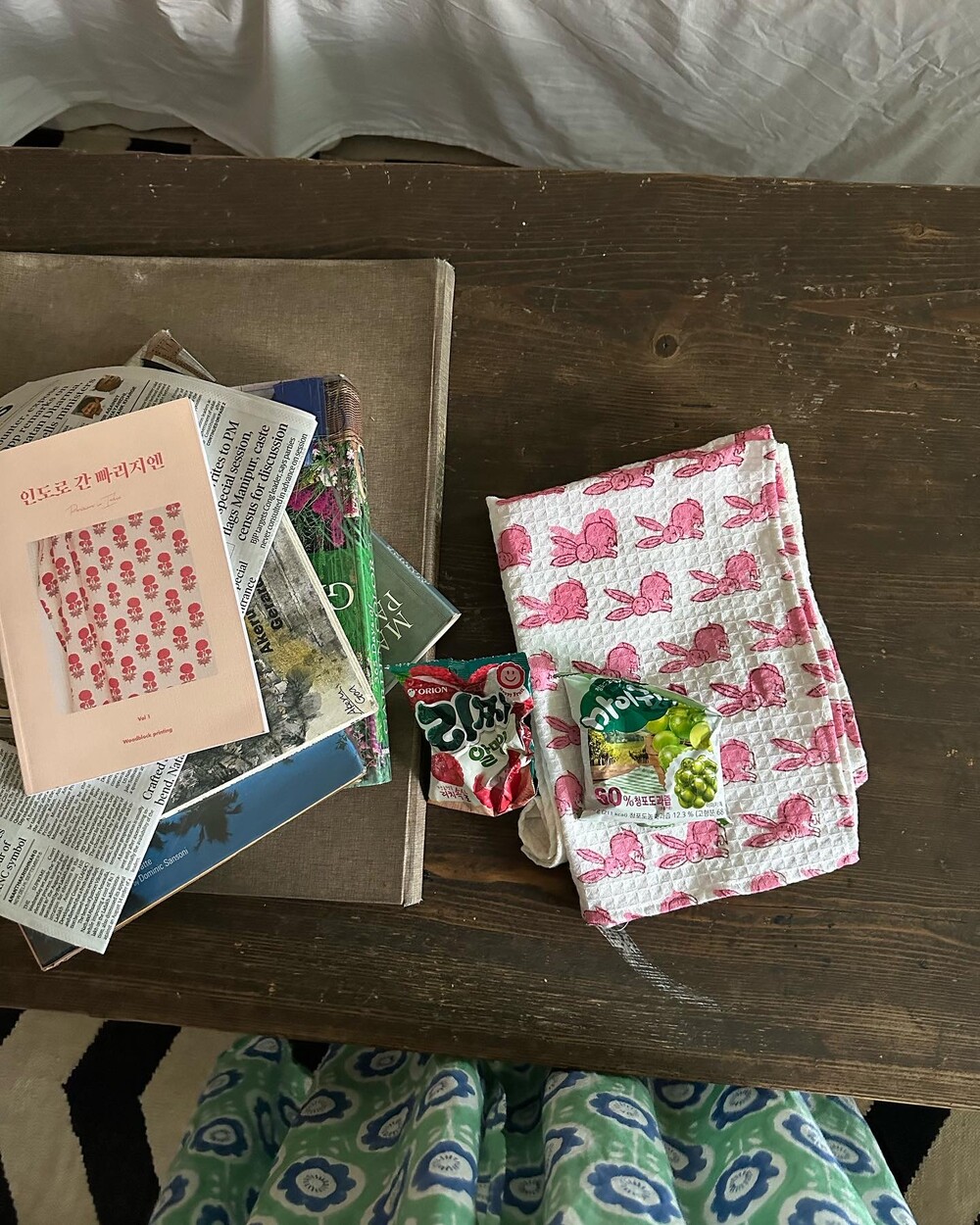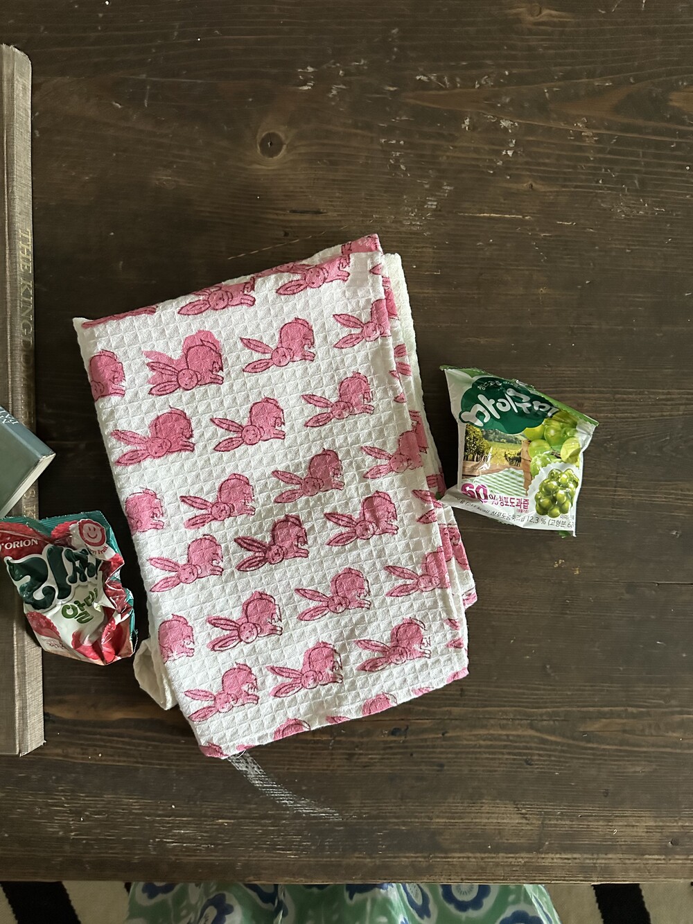 38*30사이즈의 우드블럭 와플 수건이에요.