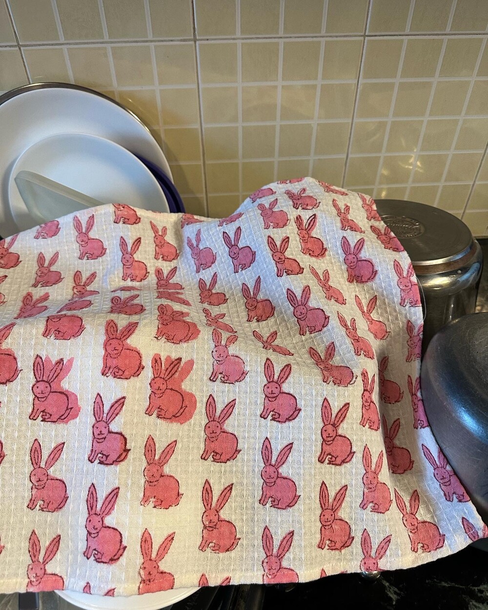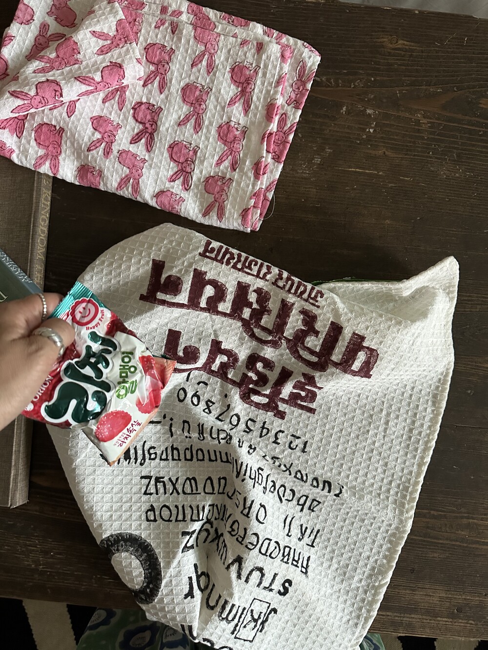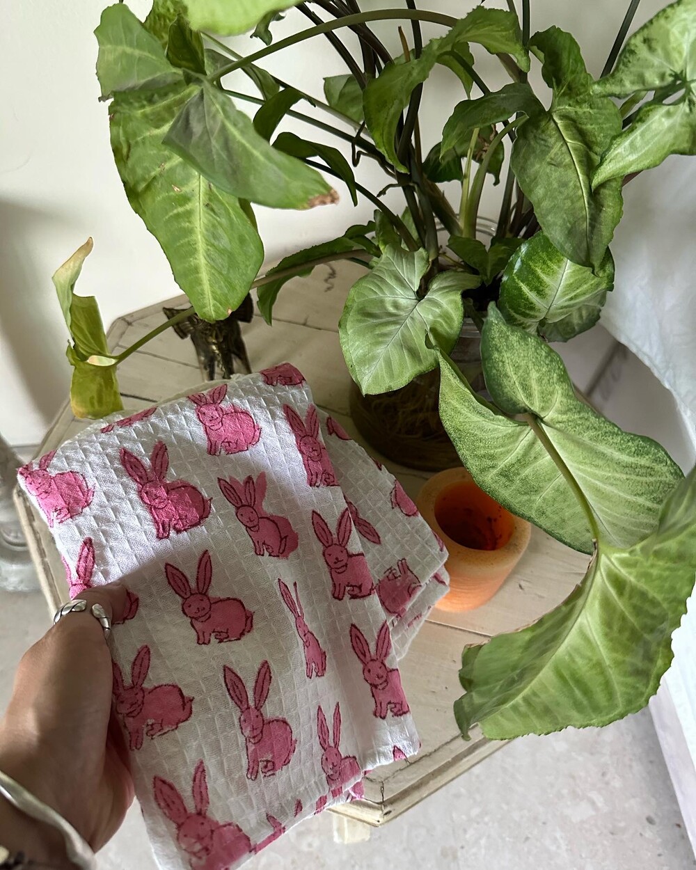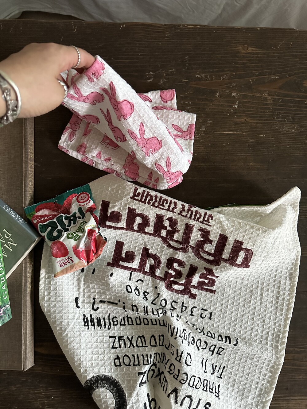 38*30사이즈의 우드블럭 와플 수건이에요.