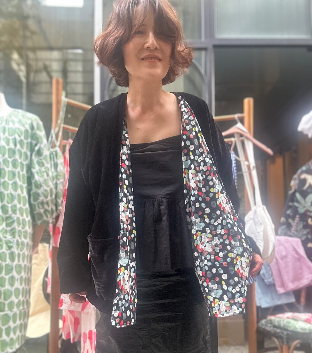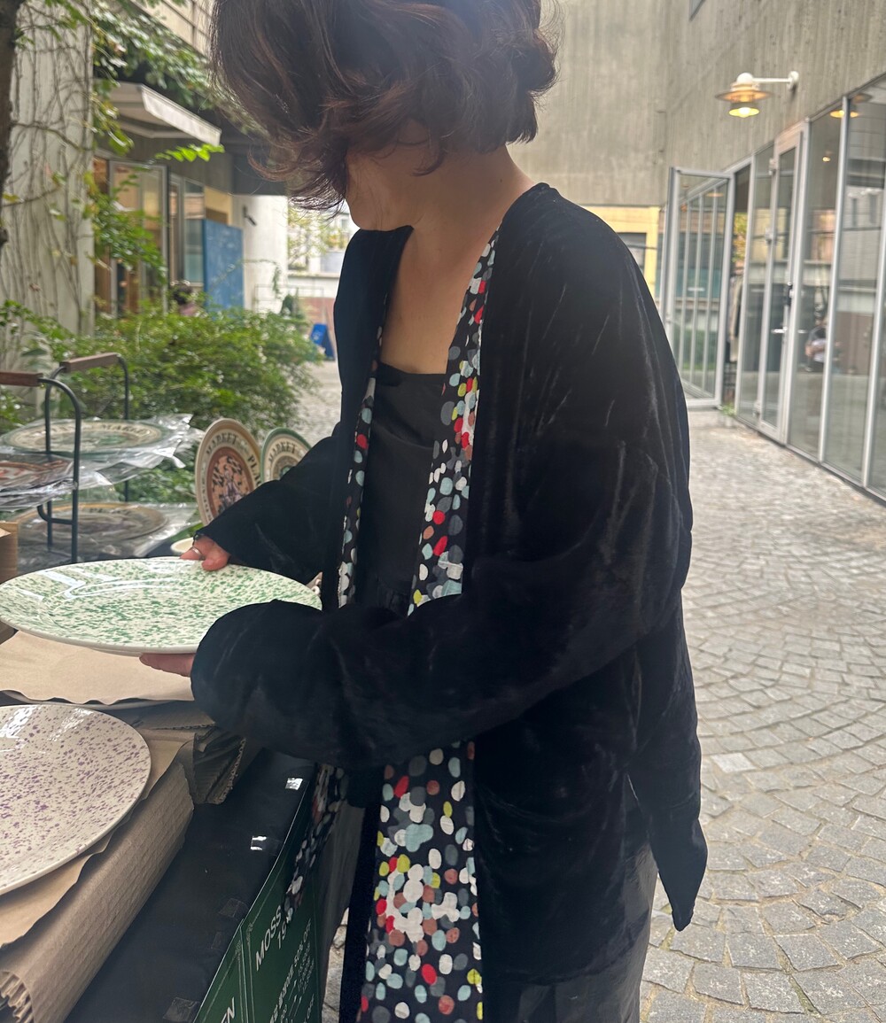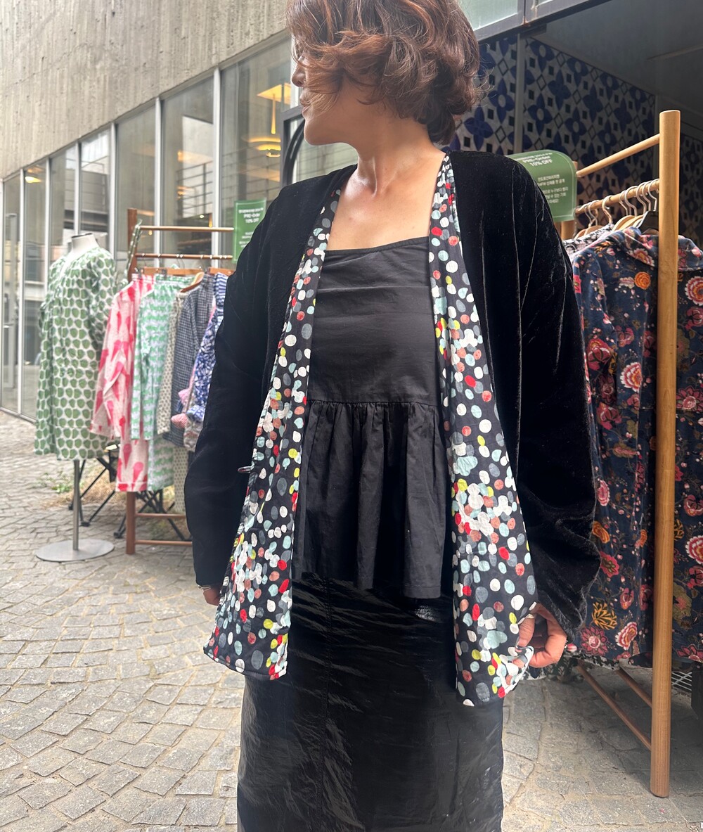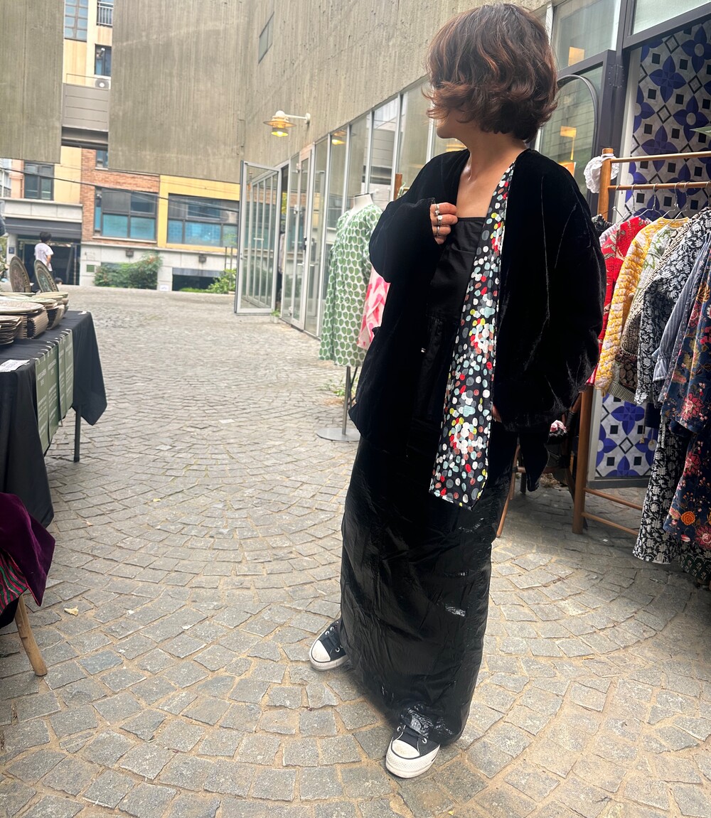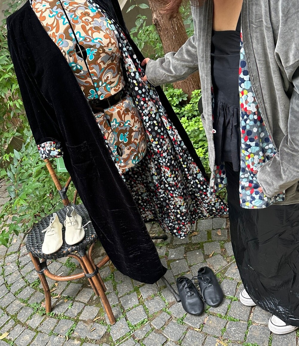 숏기장은 73 가슴둘레 66 소매기장은 17-18이고 긴기장은 가슴둘레 63이고 기장 109센티에요.소매둘레는 21이에요.가디건 로브처럼 입으시면 되고 인도의 면벨벳이에요.10.16까지 주문해주시는분들께는 도트이너를 함께 보내드려요.정말 아름다운 원단이고 드뷔쉬의 달빛을 연상하며 만든 프린팅이에요,