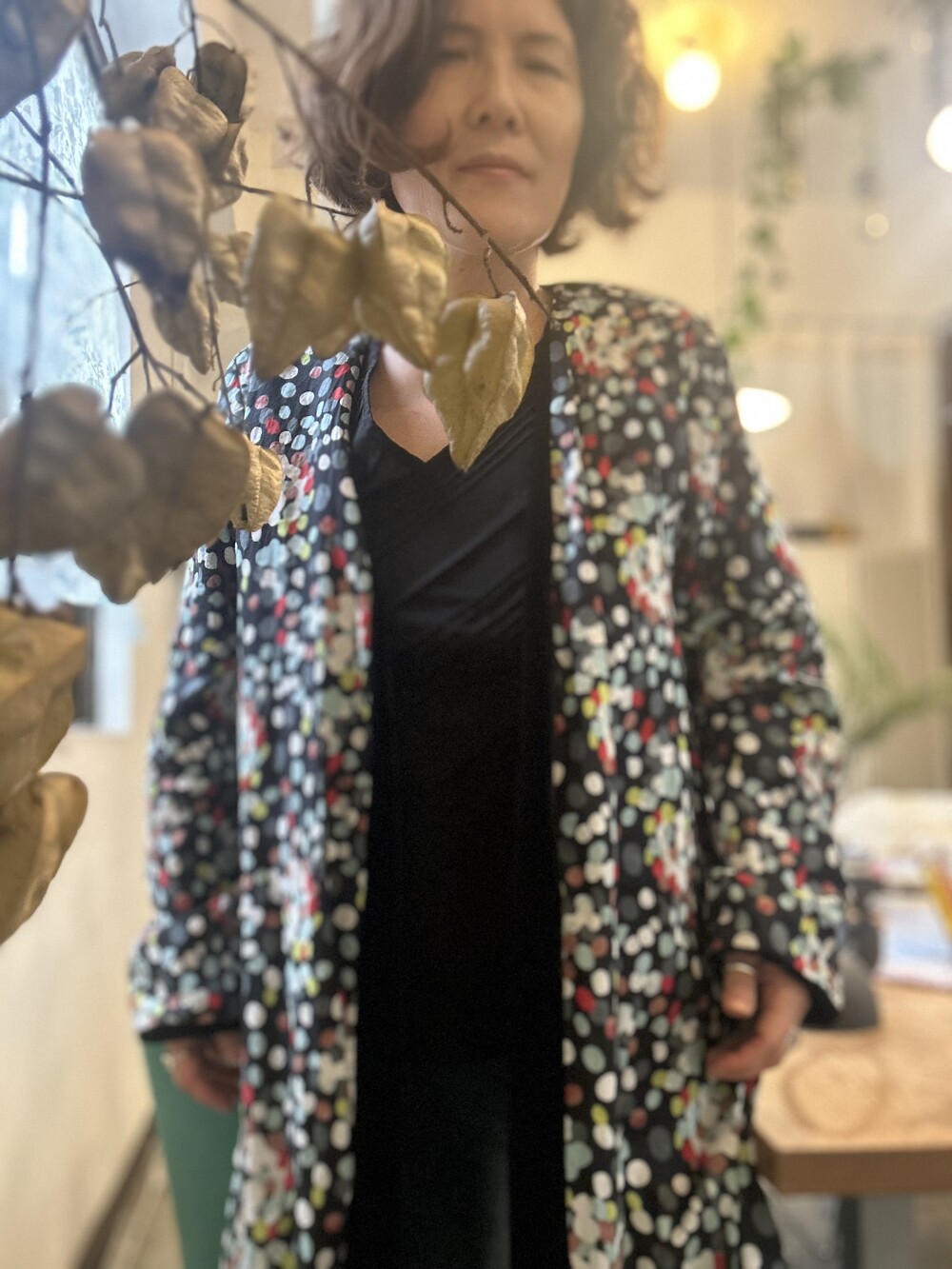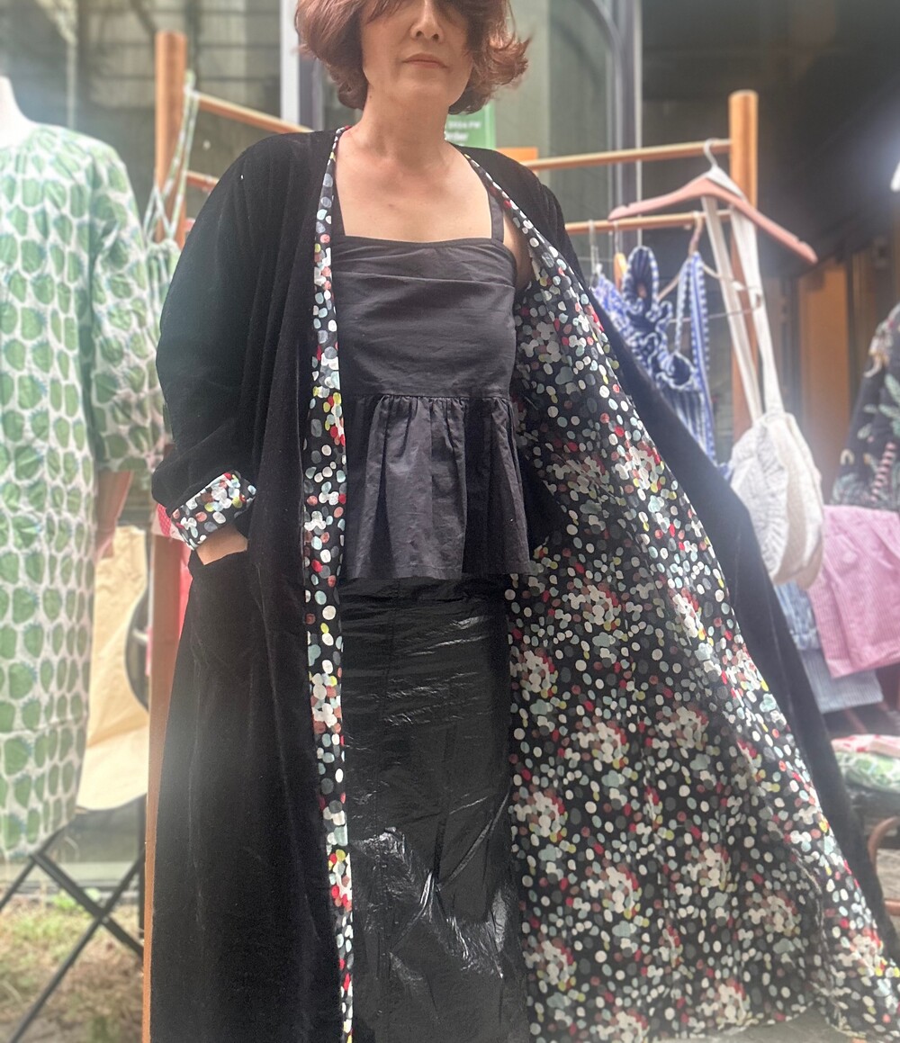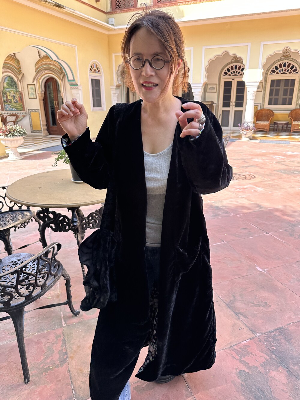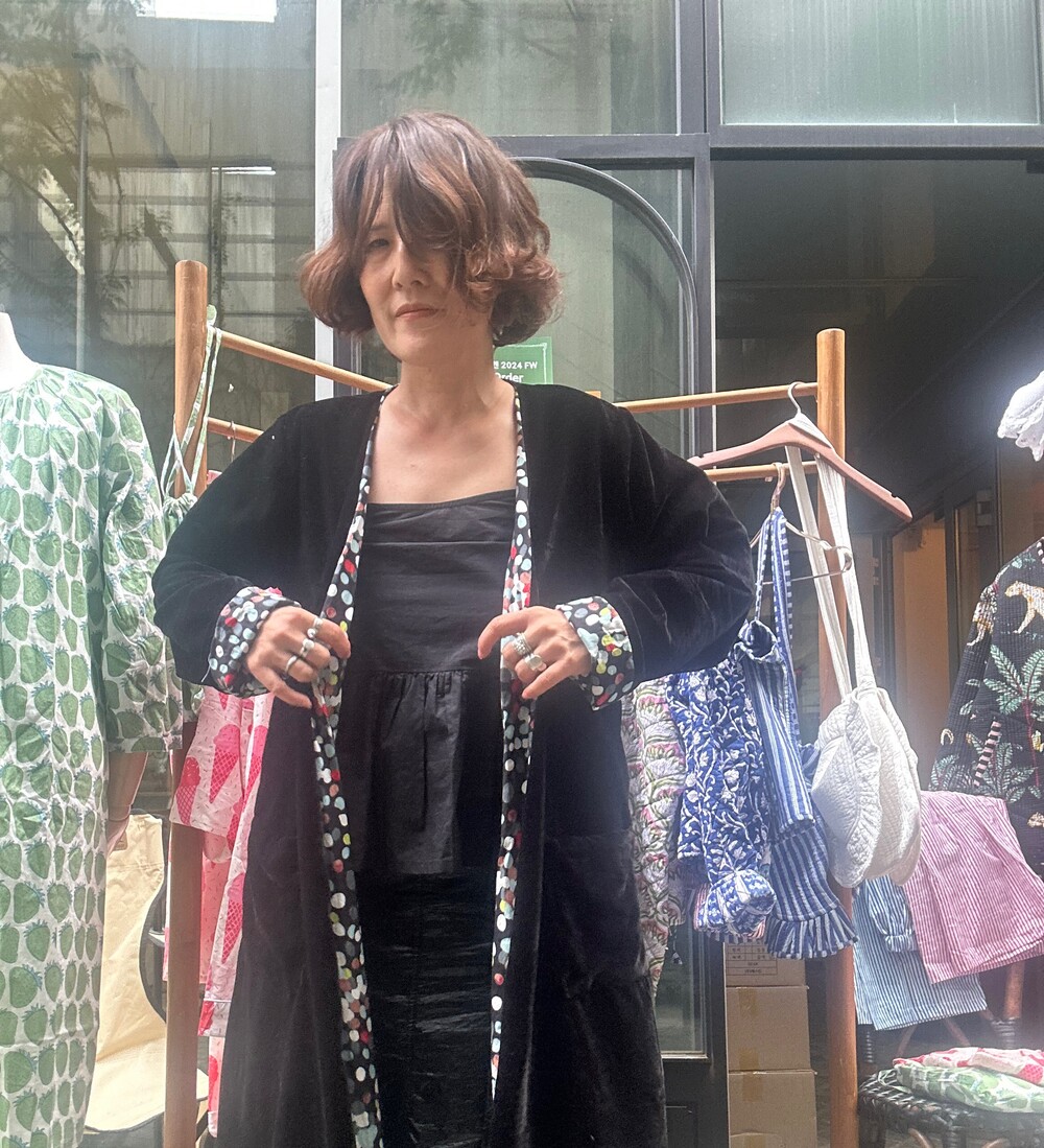 숏기장은 73 가슴둘레 66 소매기장은 17-18이고 긴기장은 가슴둘레 63이고 기장 109센티에요.소매둘레는 21이에요.가디건 로브처럼 입으시면 되고 인도의 면벨벳이에요.10.16까지 주문해주시는분들께는 도트이너를 함께 보내드려요.정말 아름다운 원단이고 드뷔쉬의 달빛을 연상하며 만든 프린팅이에요,