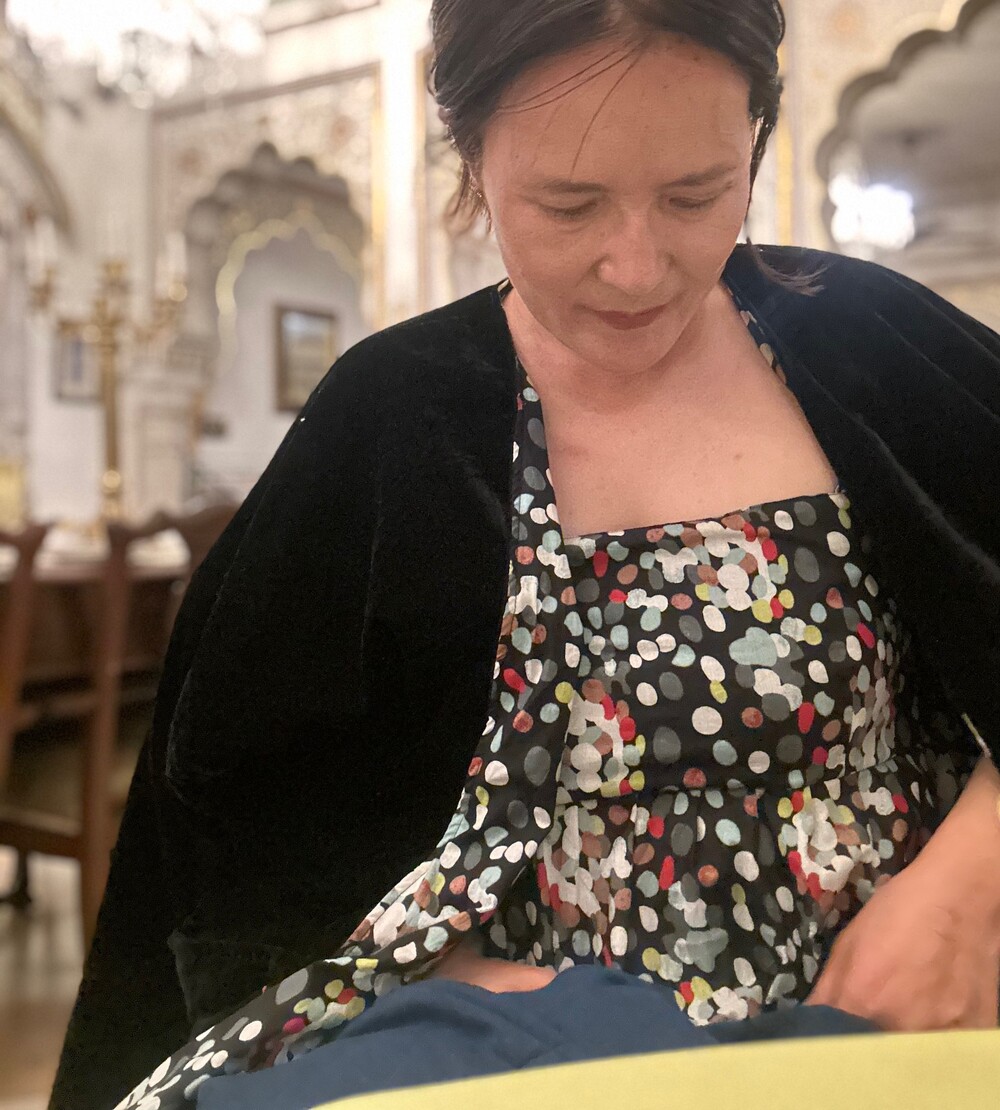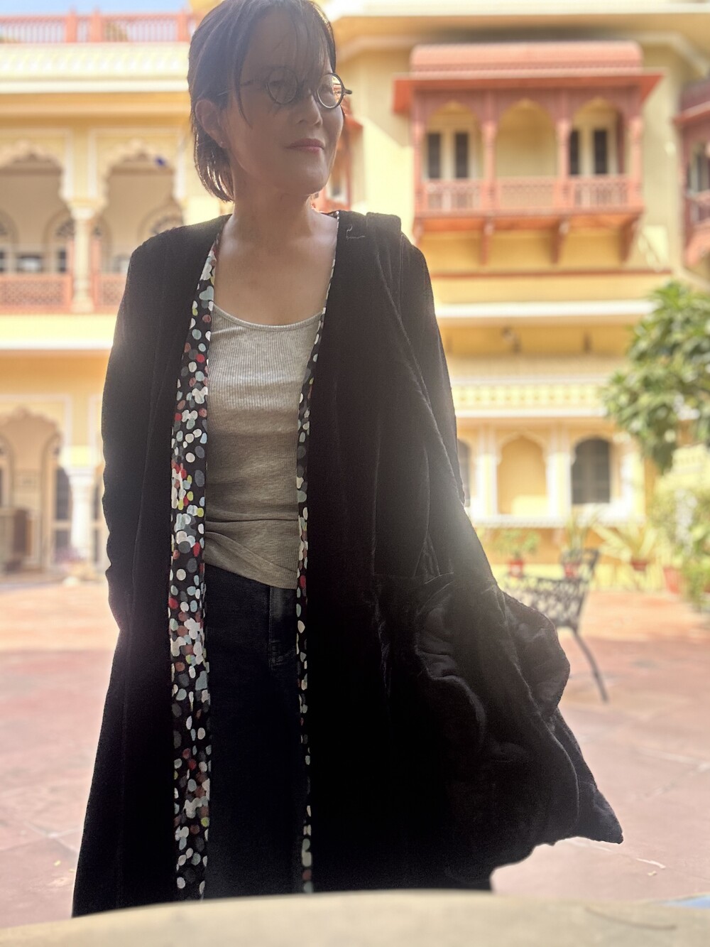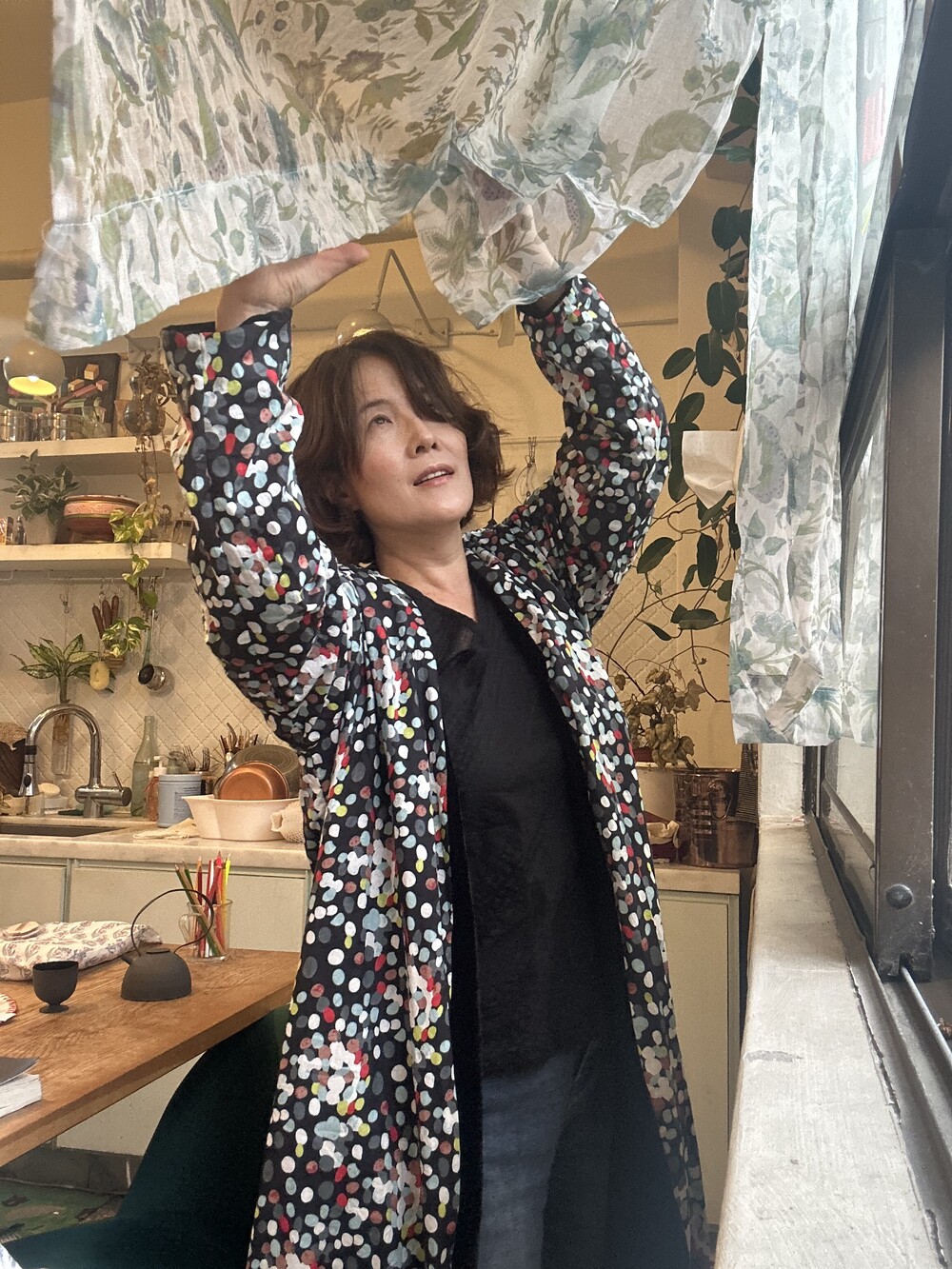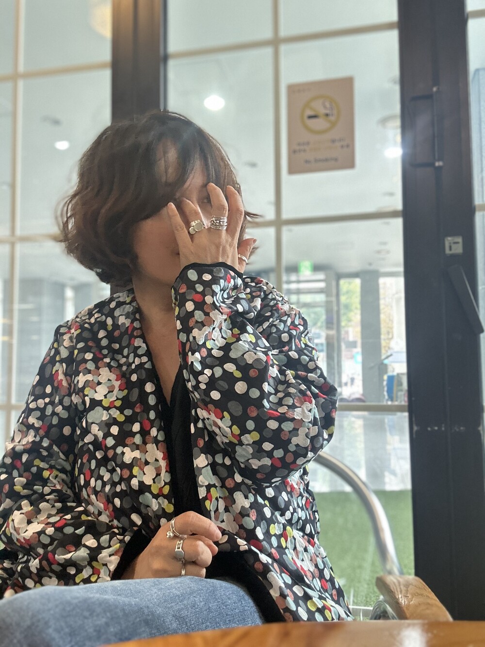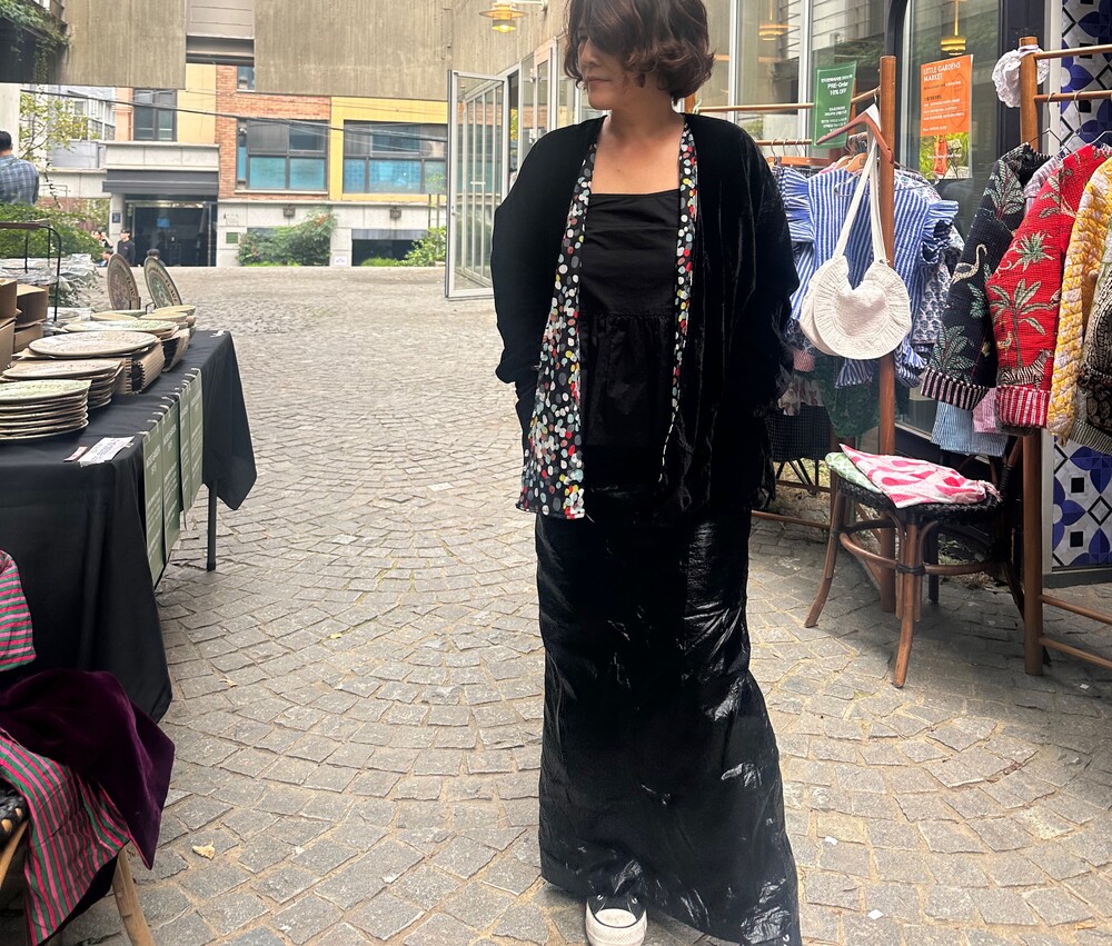 숏기장은 73 가슴둘레 66 소매기장은 17-18이고 긴기장은 가슴둘레 63이고 기장 109센티에요.소매둘레는 21이에요.가디건 로브처럼 입으시면 되고 인도의 면벨벳이에요.10.16까지 주문해주시는분들께는 도트이너를 함께 보내드려요.정말 아름다운 원단이고 드뷔쉬의 달빛을 연상하며 만든 프린팅이에요,