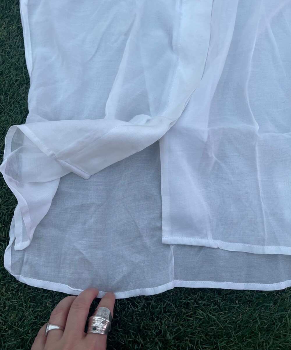 여성스럽고 아름다운 디자인이고 가슴폭은 54센티이고 기장은 앞기장 65 뒷기장 76정도이며 옆 슬릿있어요.
