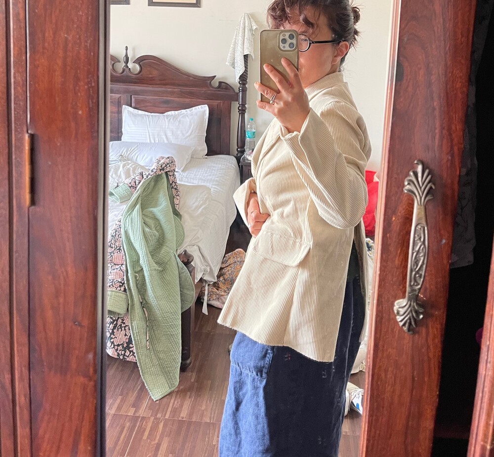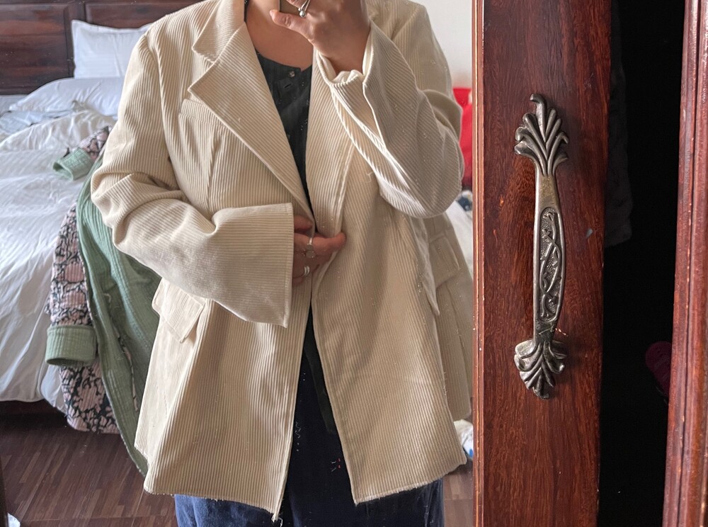 스몰,미듐으로 진행되는 면 코듀로이 자켓입니다.제가 입은게 미듐이에요.저는 키 158이고 보통 저켓은 66입어요 .넉넉하게 입으시려면 미듐을 권해요.파리의 드골정권은 물러나고 배트남전쟁은 여전히 계속되던 1969년은 그런해에요.한풀 기가꺽인 히피들에게 자신들의 문화를 새로 펼칠 기회가 필요했고 우드스탁 패스티벌이 열리죠.젊음과 자유의 상징,대규모 야외 페스티벌의 대명사로 느껴지는 그 느낌을 담아 만들었어요.2.22까지만 프리오더로 진행되고 28일 인도에서 발송됩니다.