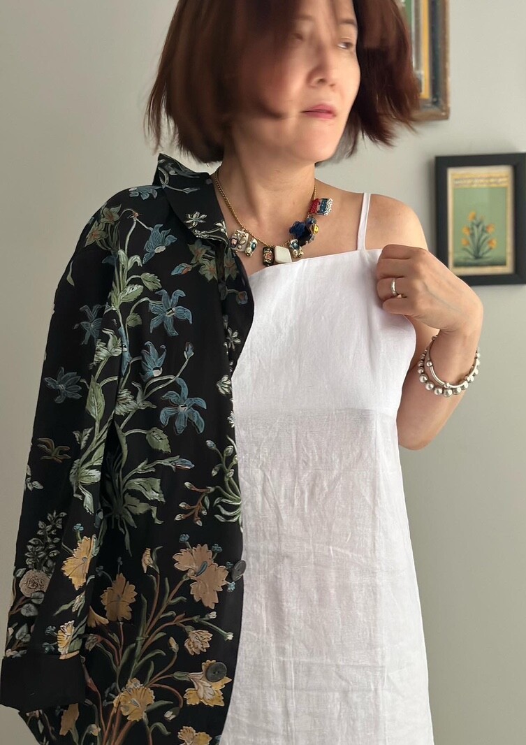 앞가슴두분에는같은 린넨 안감이 16.5센티정도 덧대이고요 더블😄