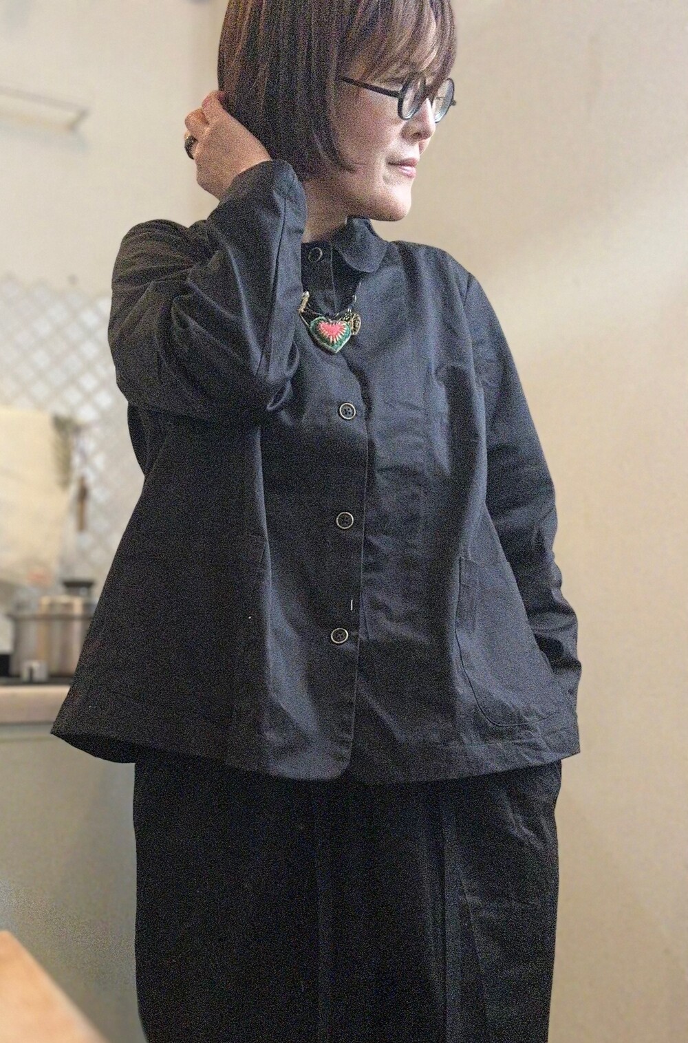 세일기간중 구매는 단순변심 교환 힘들어요.바지 기장이 88-90이고 다리 한폭이 37센티인 넉넉한 고무줄바지이지만 엄청 스탈리쉬하고 소재는 신축성있는 면 타프타에요. 고시감도 있고 편하고 반듯한 소재에요.상의도 박시하게 그러나 스탈리쉬하게 주머니도 있고요 바지도여! 상의는 가슴돌레 60이고 기장은 63이고 진동선으로 맞춰 다트를 두어서 가슴부분도 아르다워요.겨울에는 터틀넥을 입으시고 입기도 좋고 셔츠로 입으시기도 좋아요.이주반에서 삼주 소요되고 주문제작으로 단순변심 교환 힘들어요.