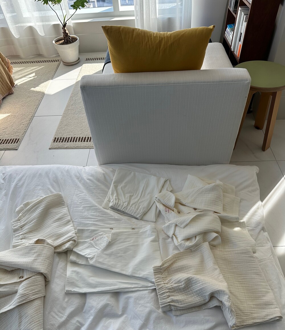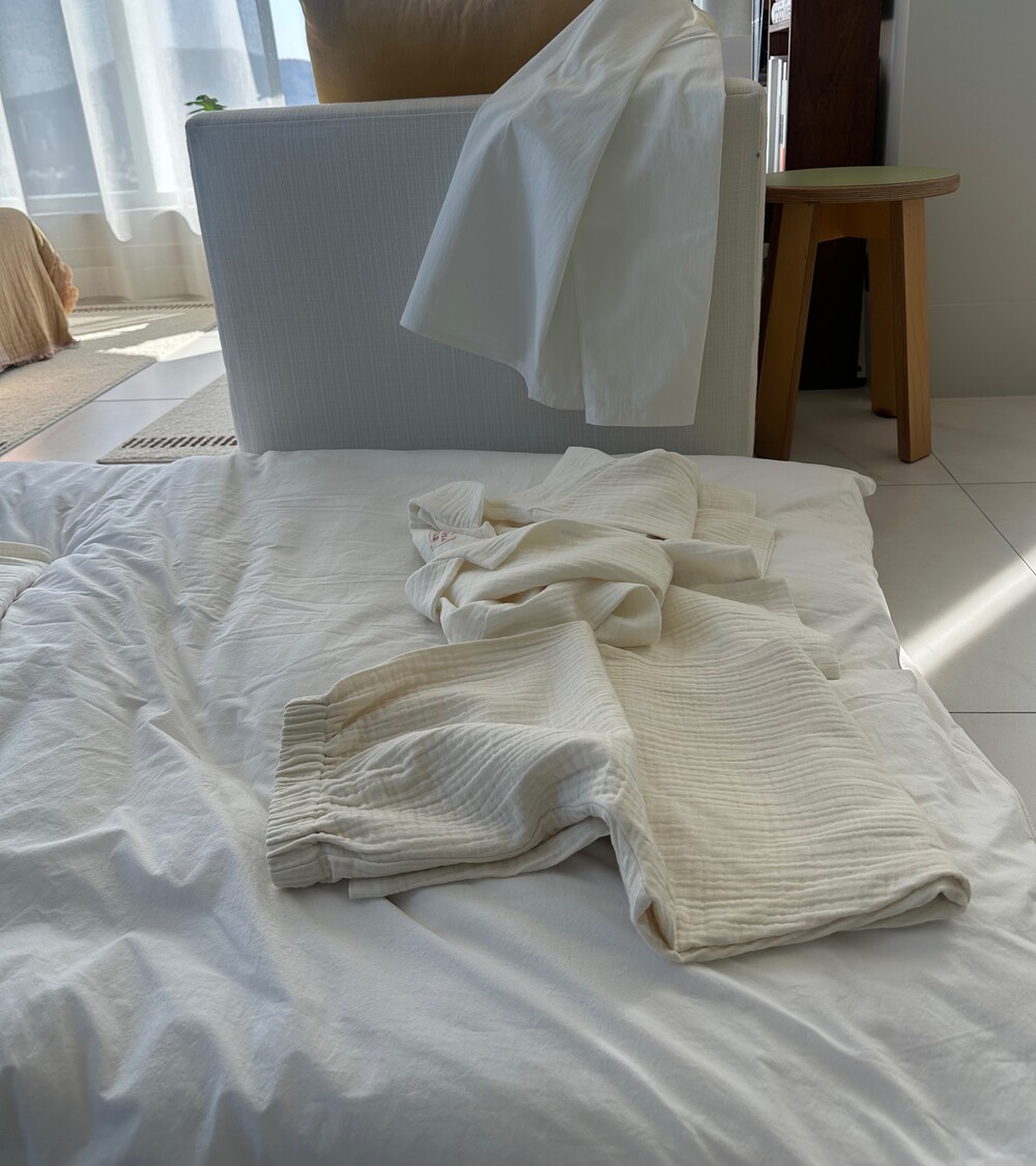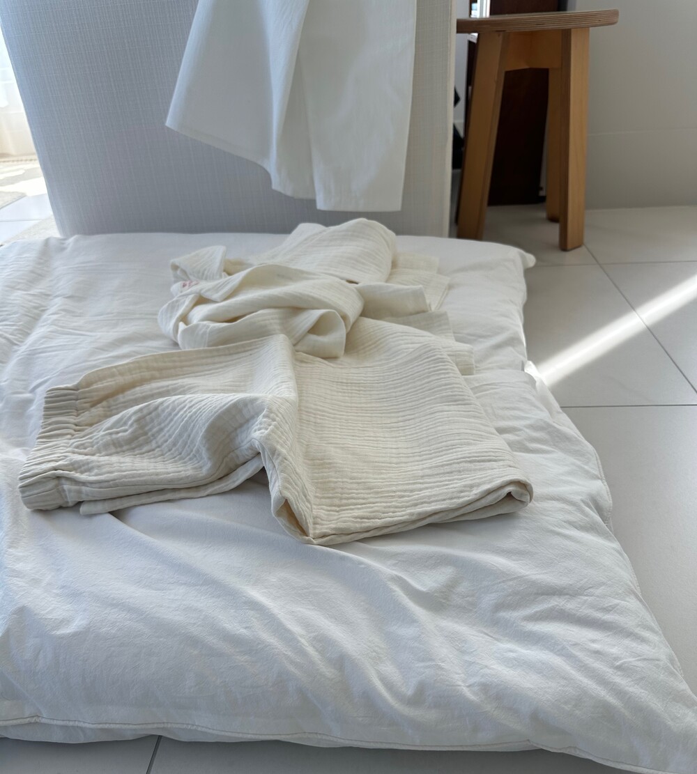 거즈 소재는 세탁시 약간의 수축이 있고 그래서 넉넉하게 제작되었습니다. 1차주문은 오늘부터 11.10까지 주문이 가능합니다. 화이트 제품이니 단순변심 교환 힘들고 공지사항을 읽지않은 내용에 대해서는 책임지지않습니다.